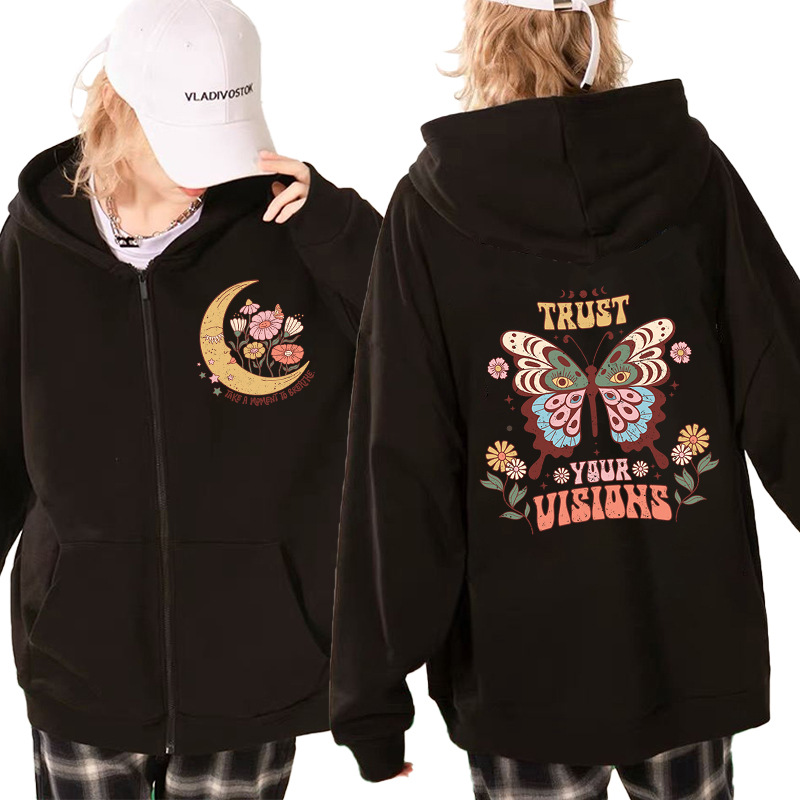남성과 여성을위한 크로스 보더 핫 나비 프린트 지퍼 스웨터 봄과 가을 캐주얼 긴 소매 모든 매치 재킷 까마귀 애니메이션스토어 가기