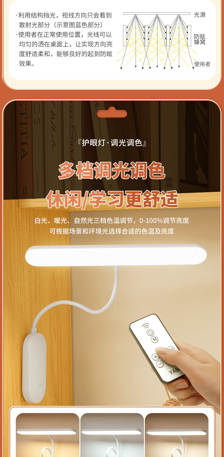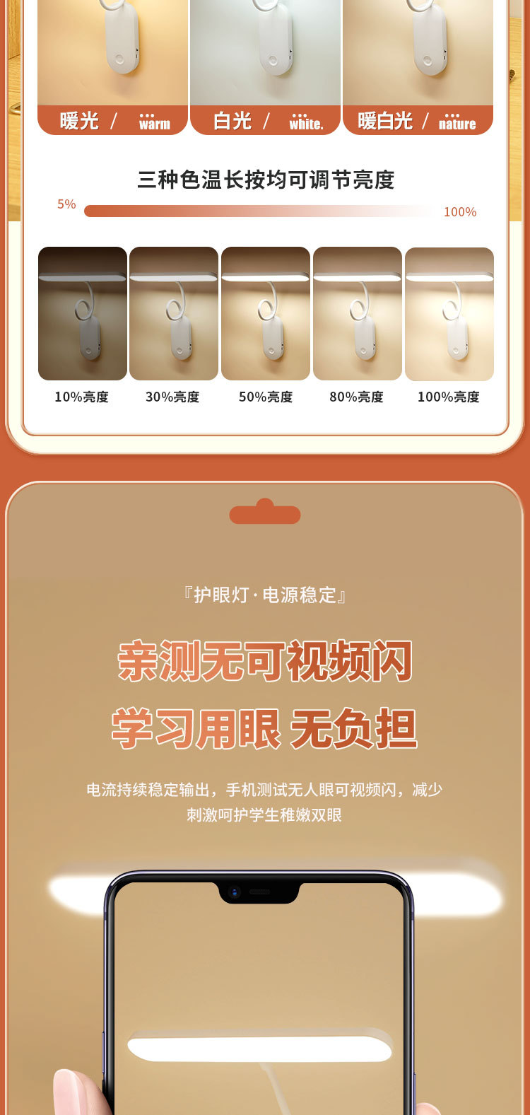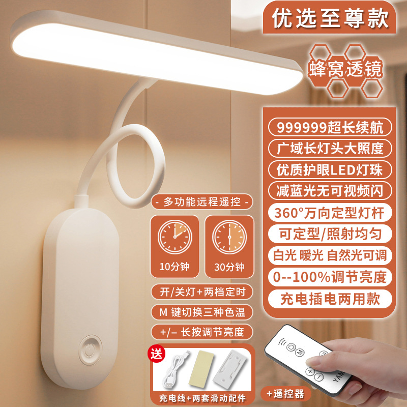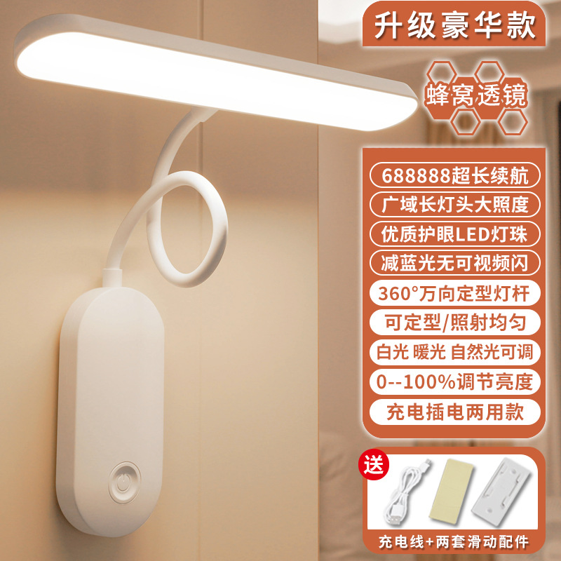 LED 벽등, 충전식, 눈 보호 기능이 있는 테이블 램프, 책상 학습용, 침실 침대 옆 램프, 밝기 조절 가능