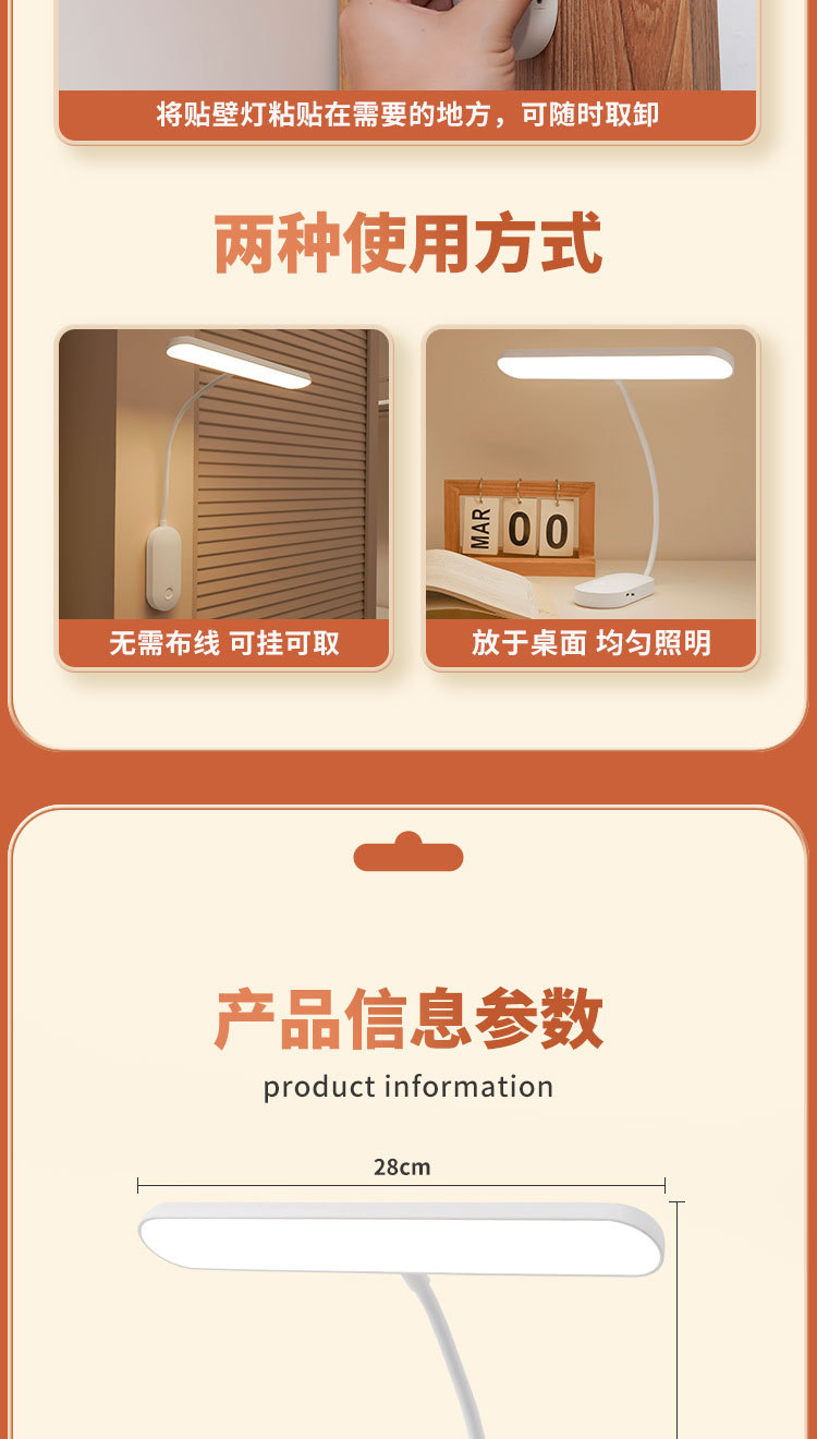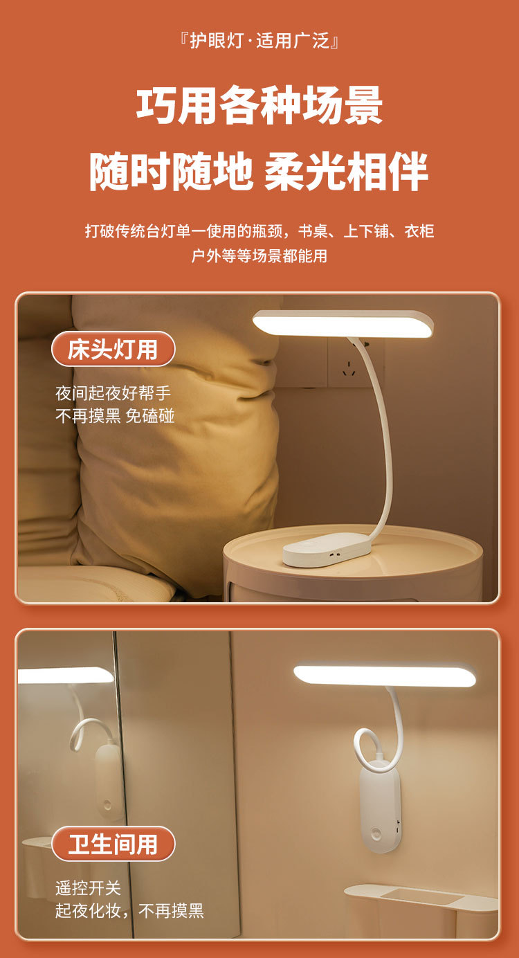 LED 벽등, 충전식, 눈 보호 기능이 있는 테이블 램프, 책상 학습용, 침실 침대 옆 램프, 밝기 조절 가능스토어 가기