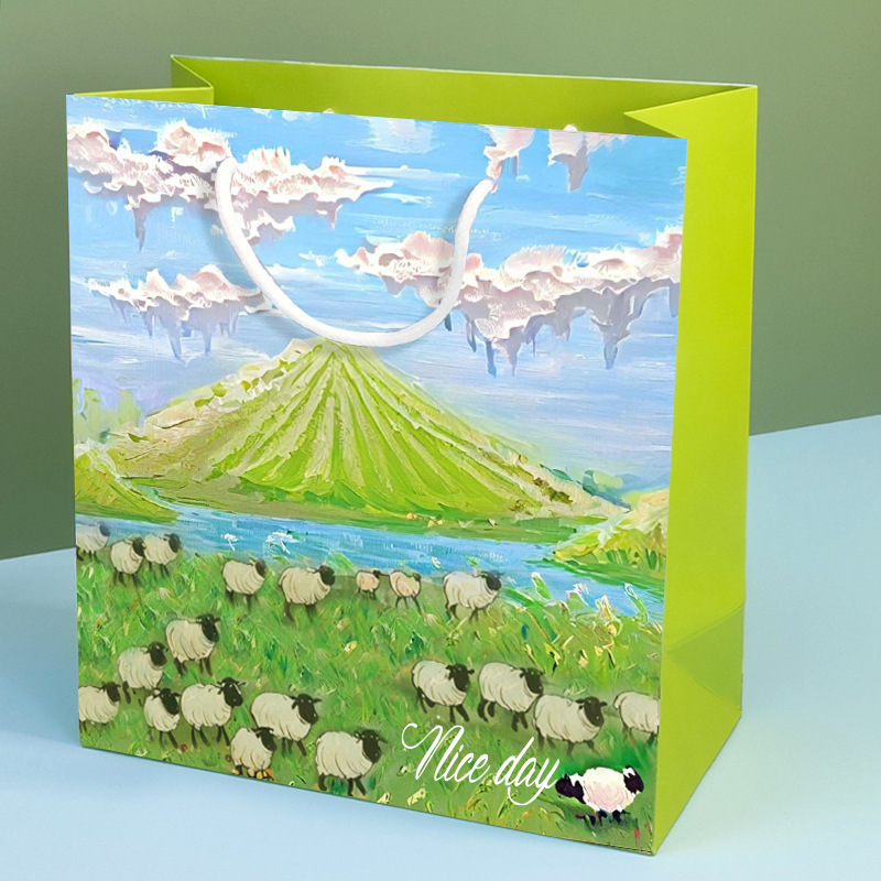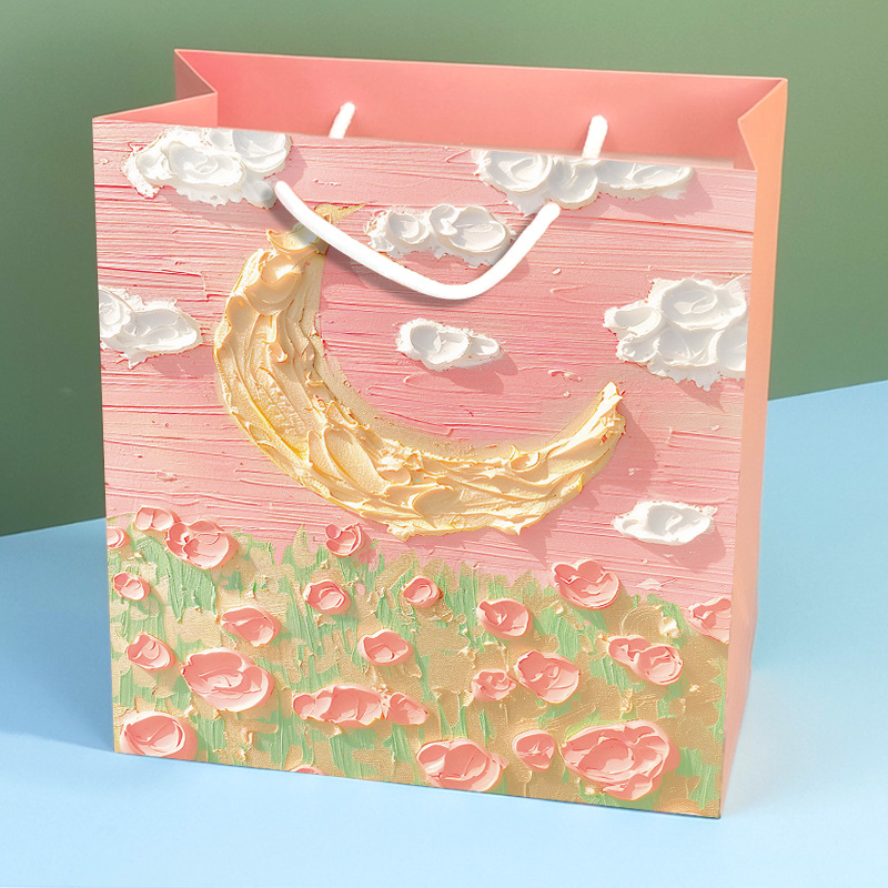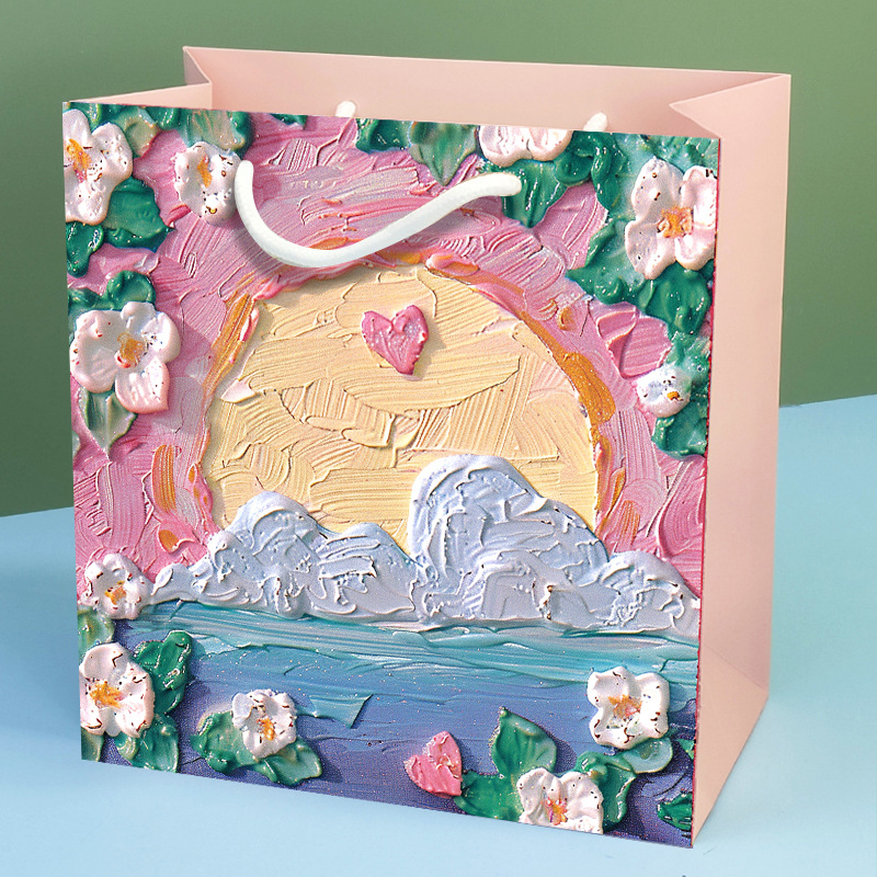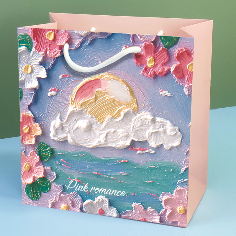 창조적 인 유화 선물 가방 예술적 토트 백 축제 남성과 여성을위한 절묘한 생일 꽃 패키지 선물 종이 가방