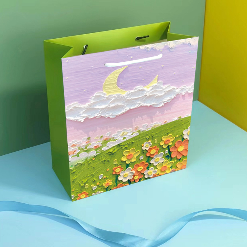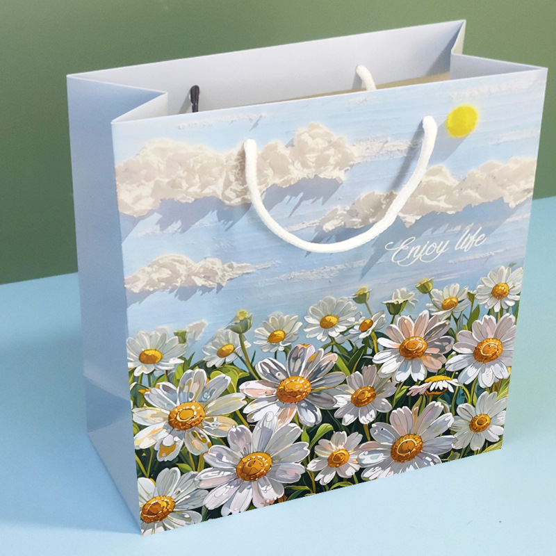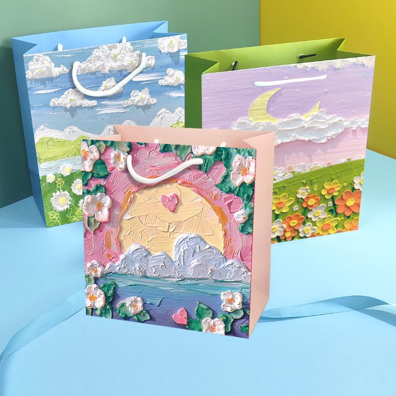 창조적 인 유화 선물 가방 예술적 토트 백 축제 남성과 여성을위한 절묘한 생일 꽃 패키지 선물 종이 가방스토어 가기