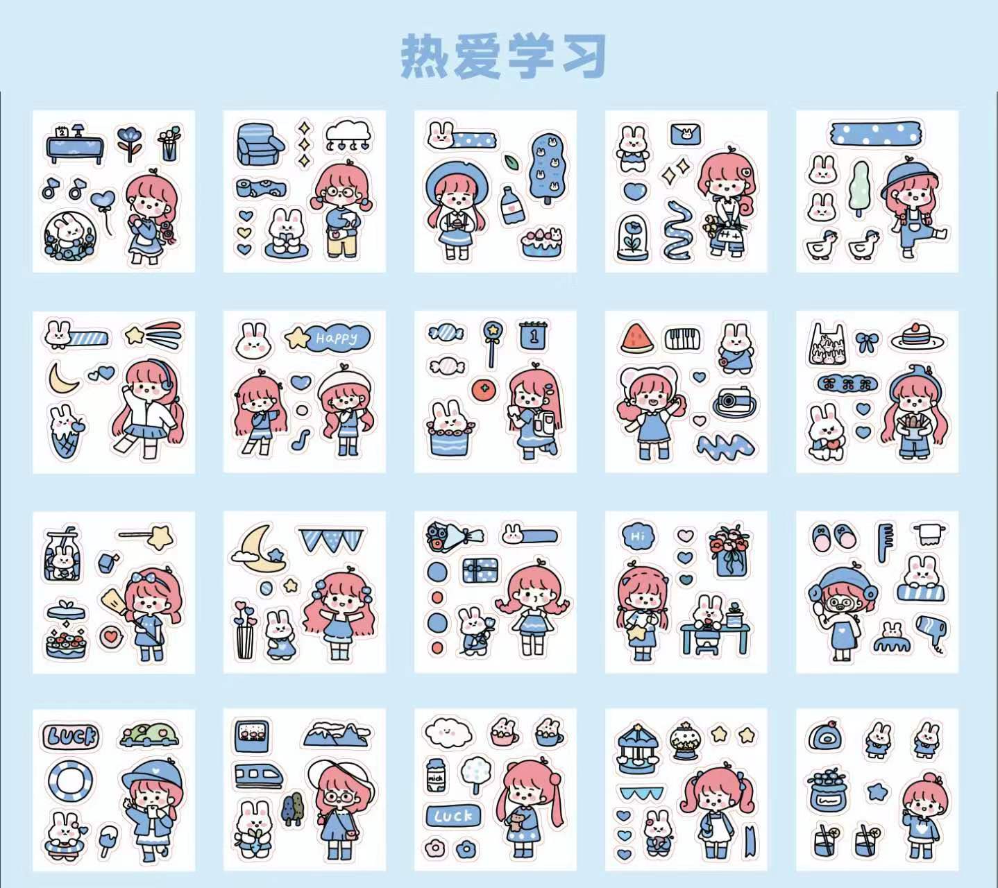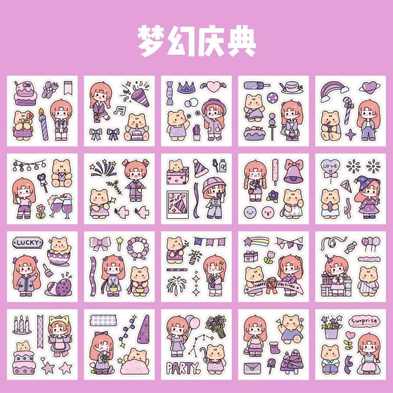200 8 * 8pet 만화 귀여운 손 계정 스티커 그물 빨간 소녀 심장 DIY 손 계정 장식 재료 종이 스티커스토어 가기