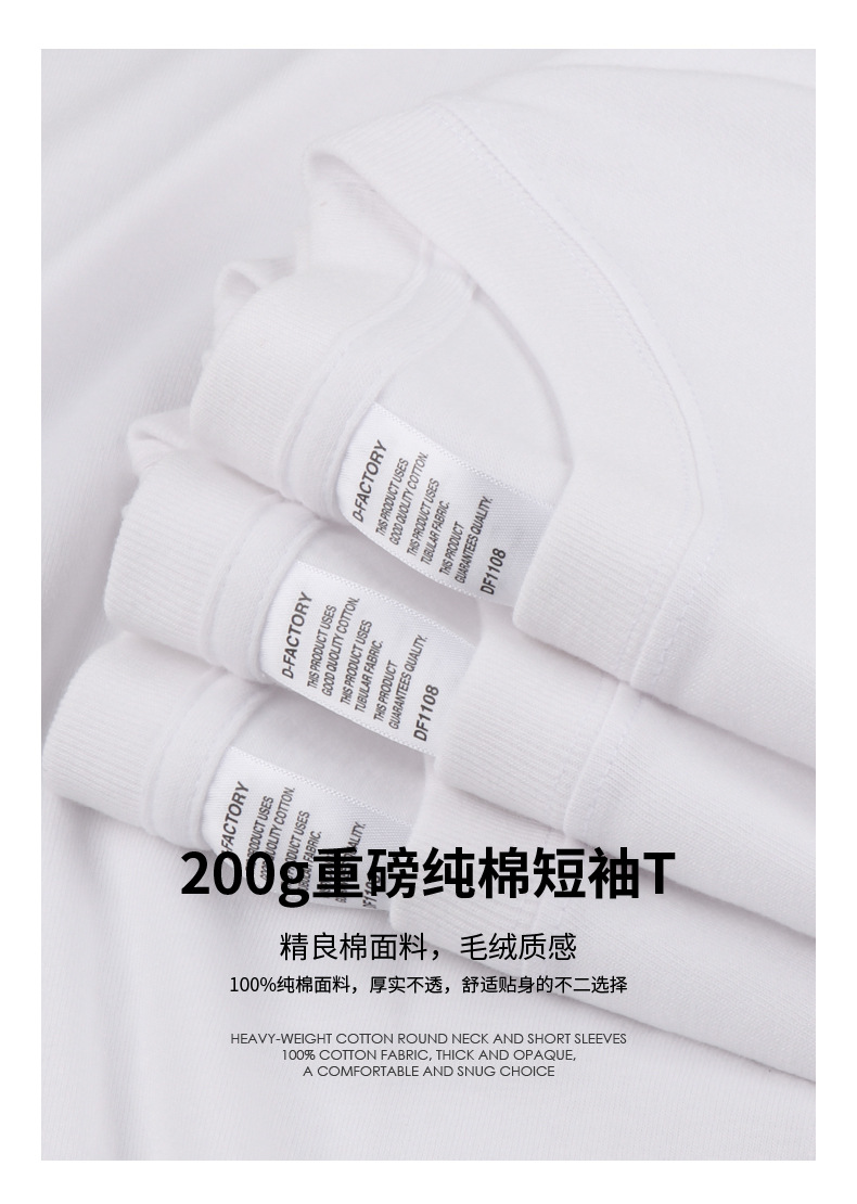 미국 210g 헤비급 신장 코튼 흰색 반팔 남성과 여성 티셔츠 작은 목선 밑바닥 셔츠 간단한 여름스토어 가기