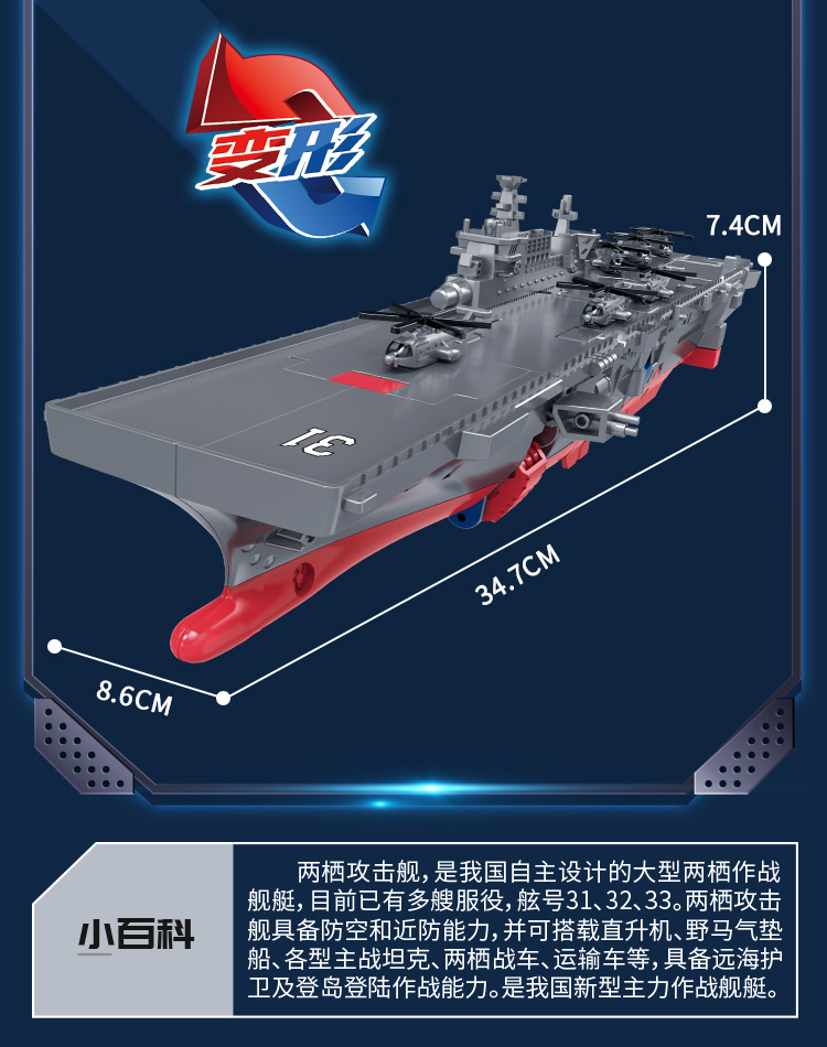 Xinexin 하이난 선박 항해 변형 로봇 유형 075 수륙 양용 폭행 선박 모델 소년 어린이 장난감