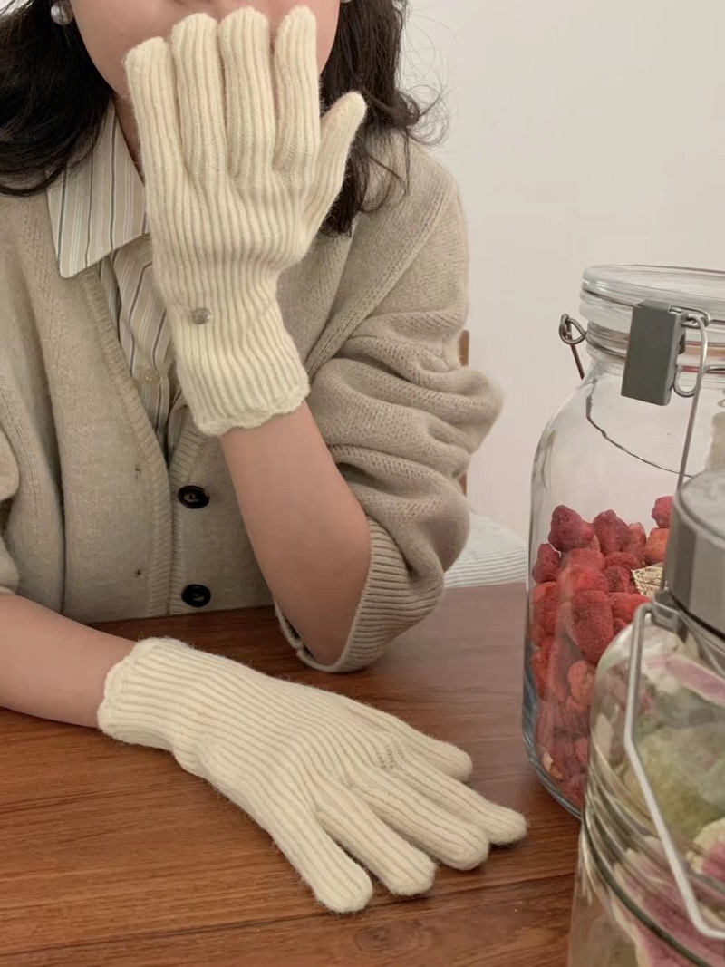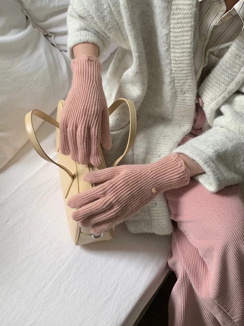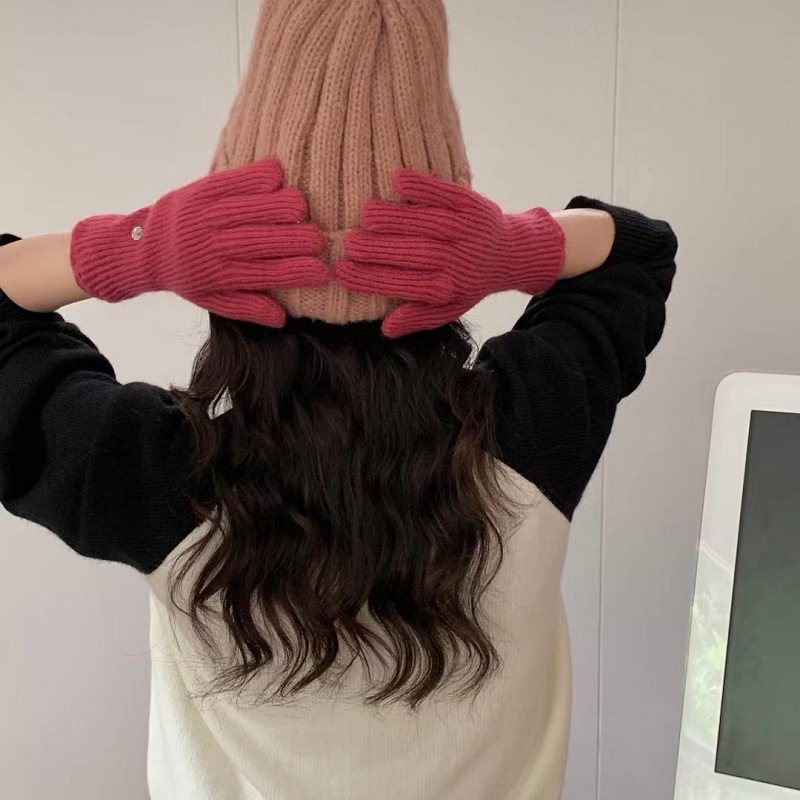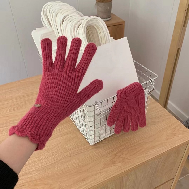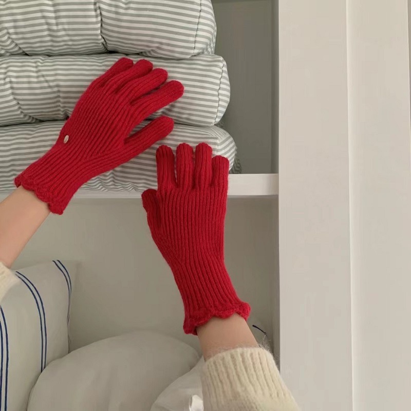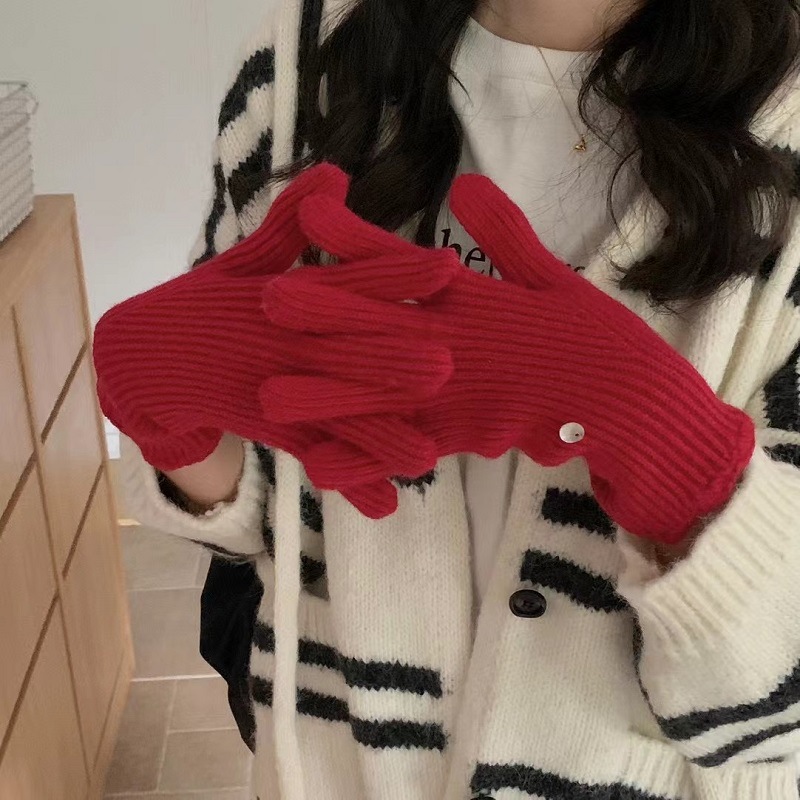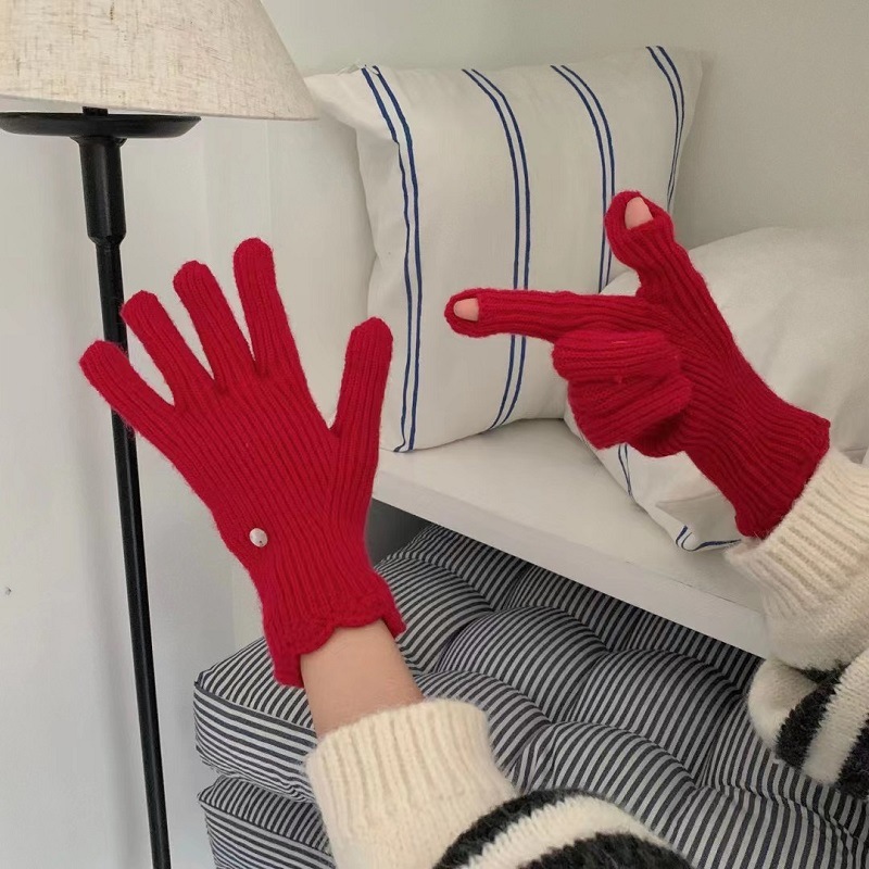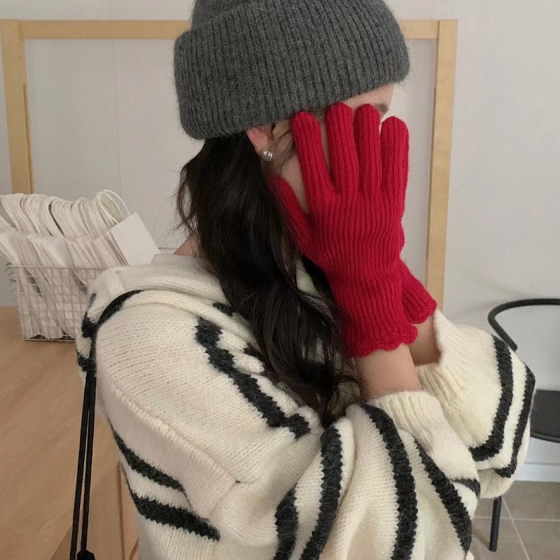 단색 니트 겨울 여성용 터치 스크린 방풍 두꺼운 따뜻한 방한 울 장갑 여성용 손가락 겨울 빨간 장갑