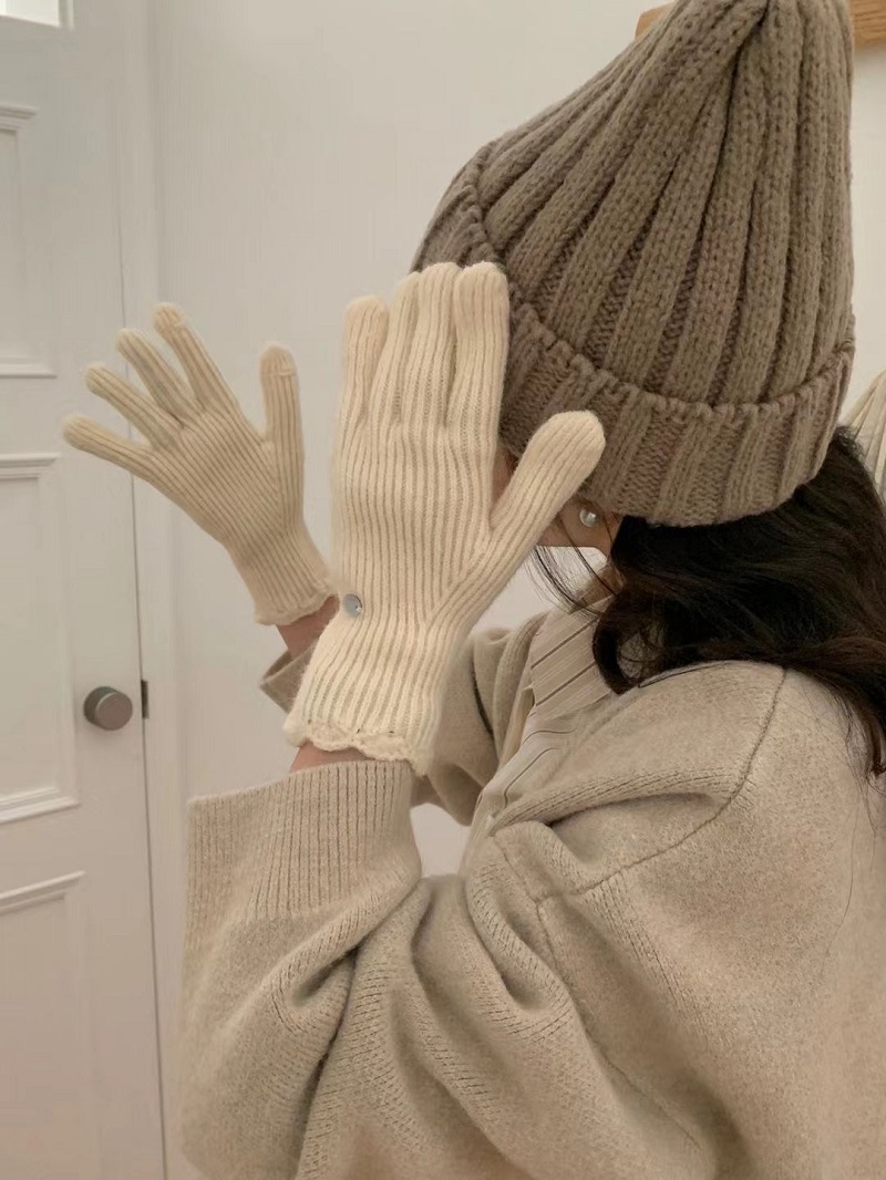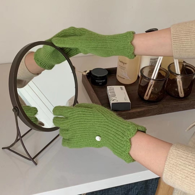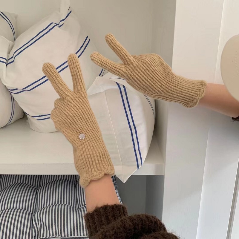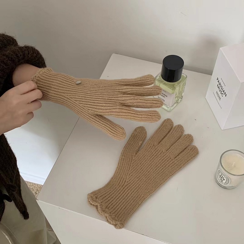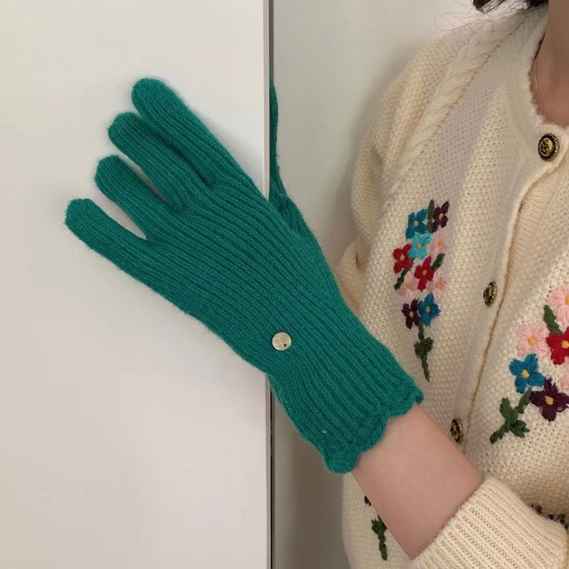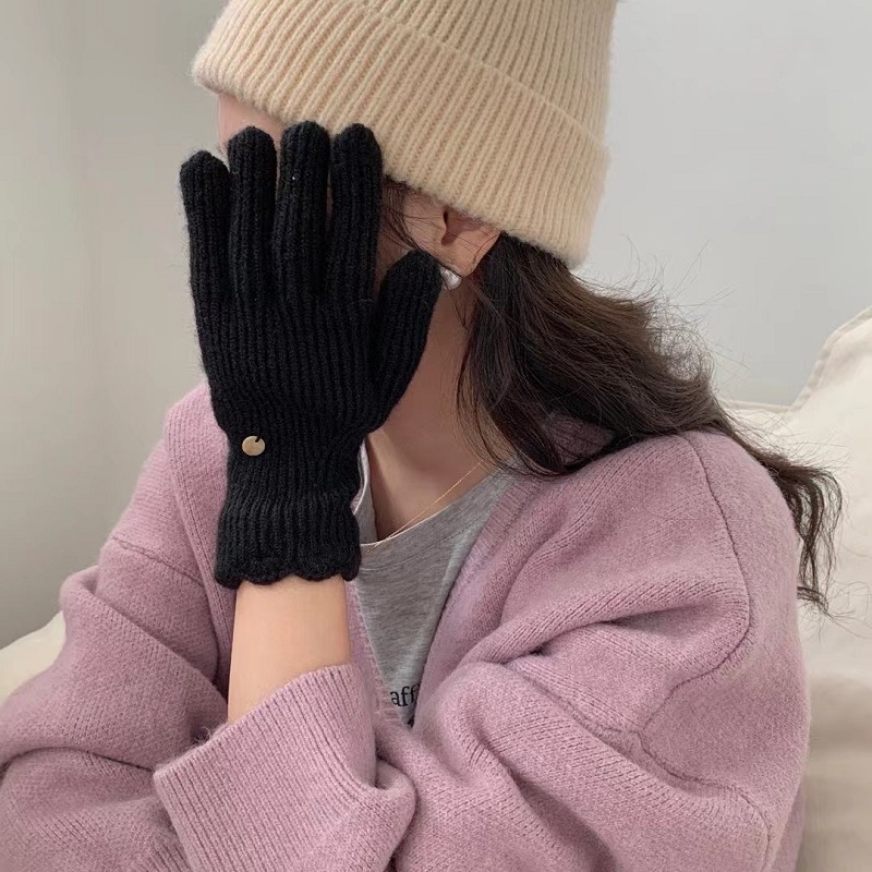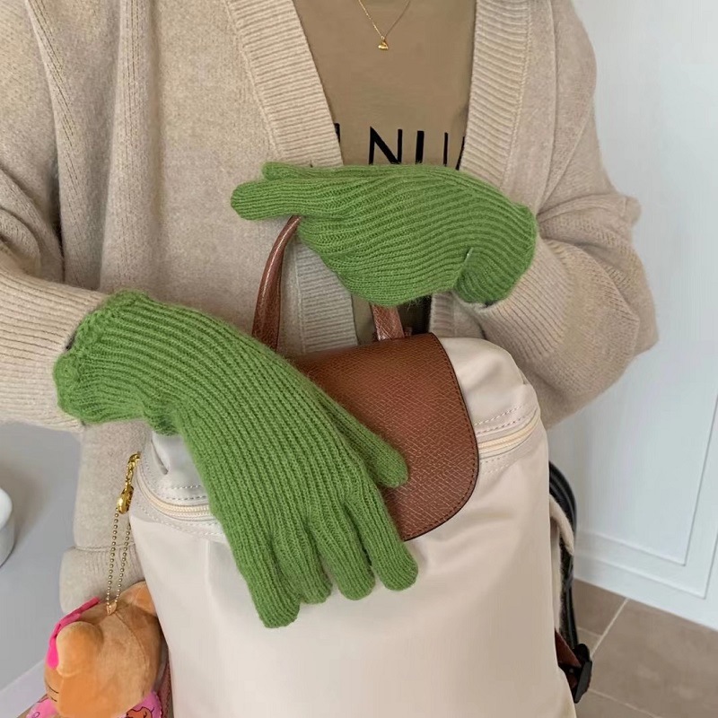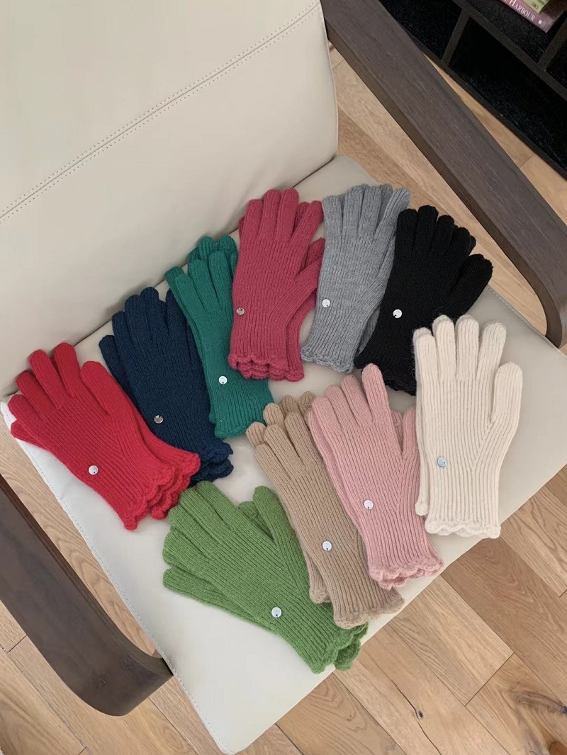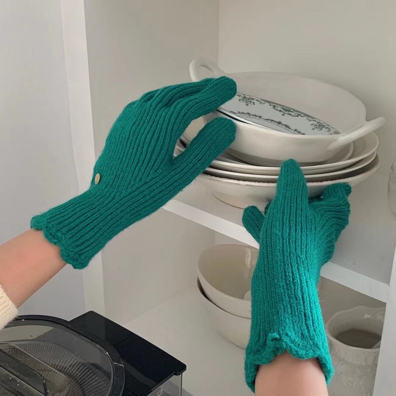 단색 니트 겨울 여성용 터치 스크린 방풍 두꺼운 따뜻한 방한 울 장갑 여성용 손가락 겨울 빨간 장갑