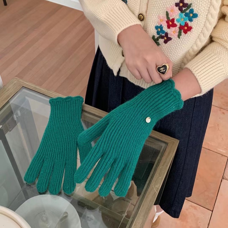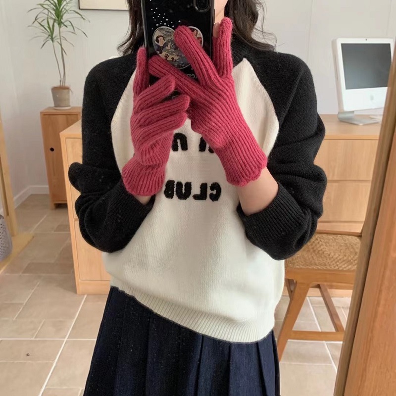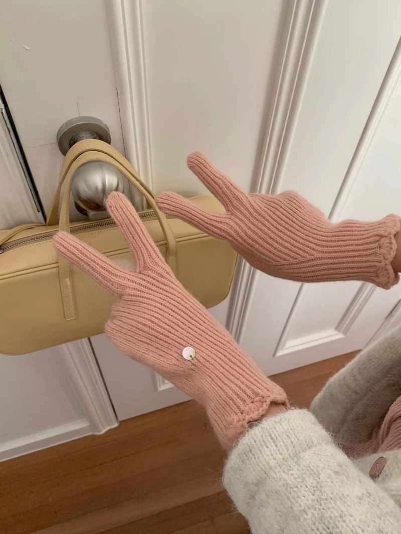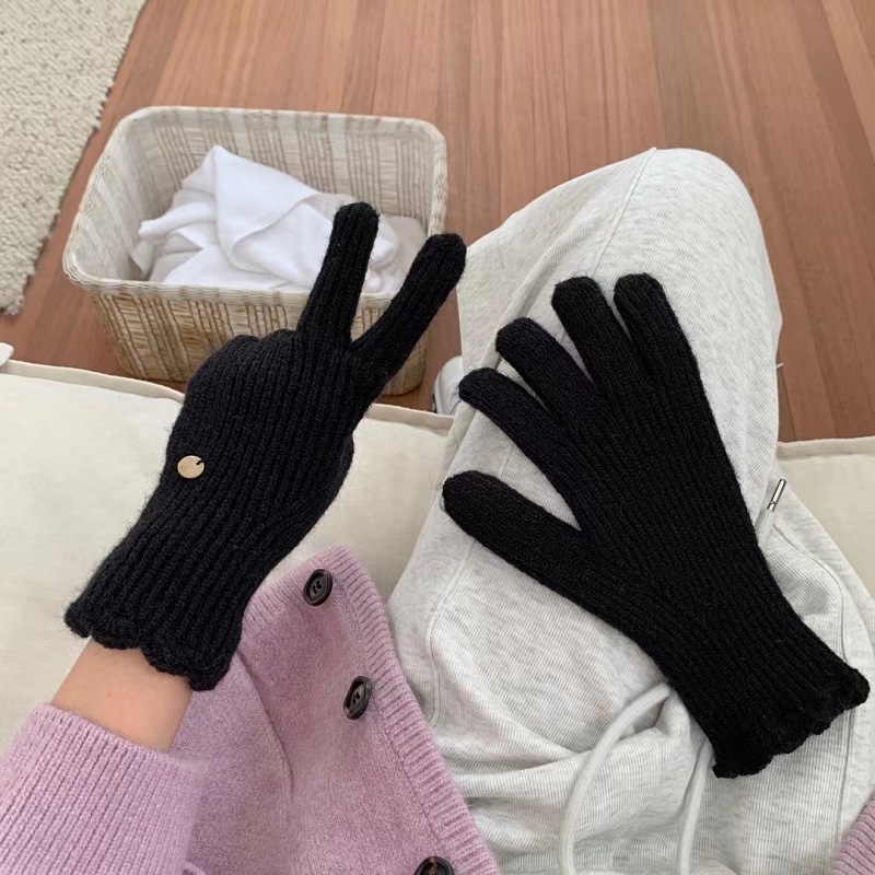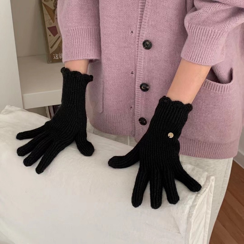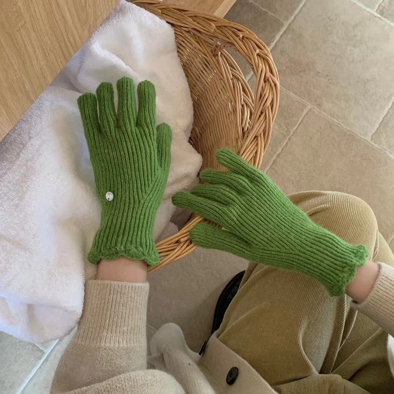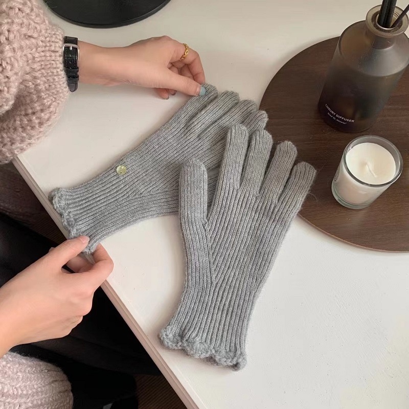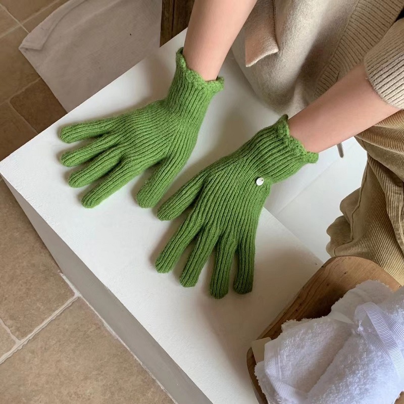 단색 니트 겨울 여성용 터치 스크린 방풍 두꺼운 따뜻한 방한 울 장갑 여성용 손가락 겨울 빨간 장갑