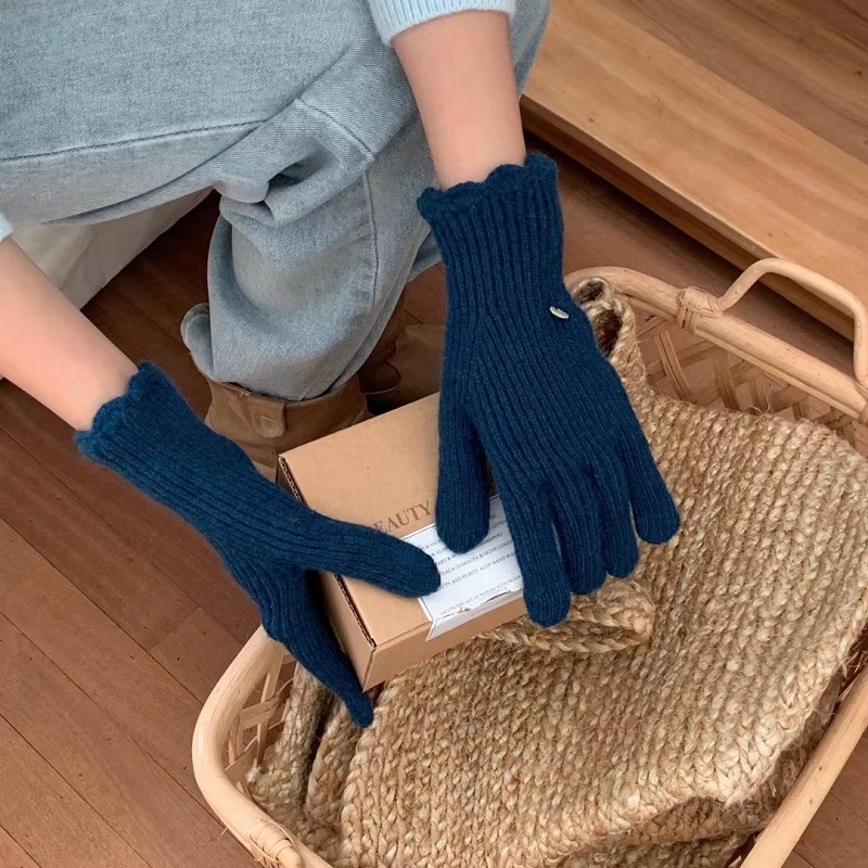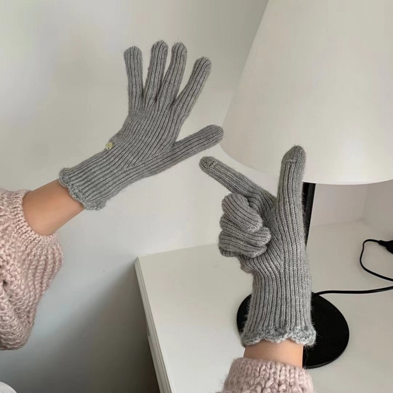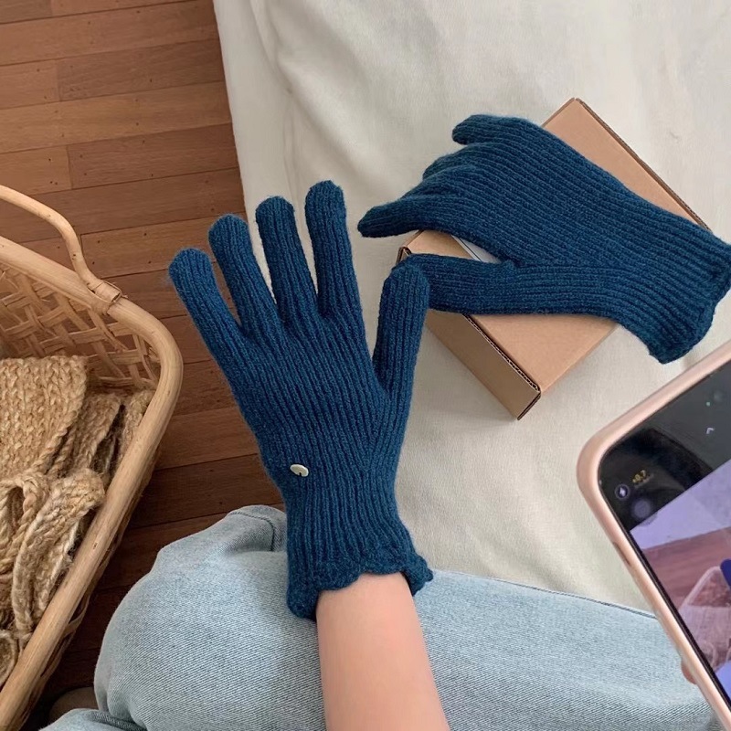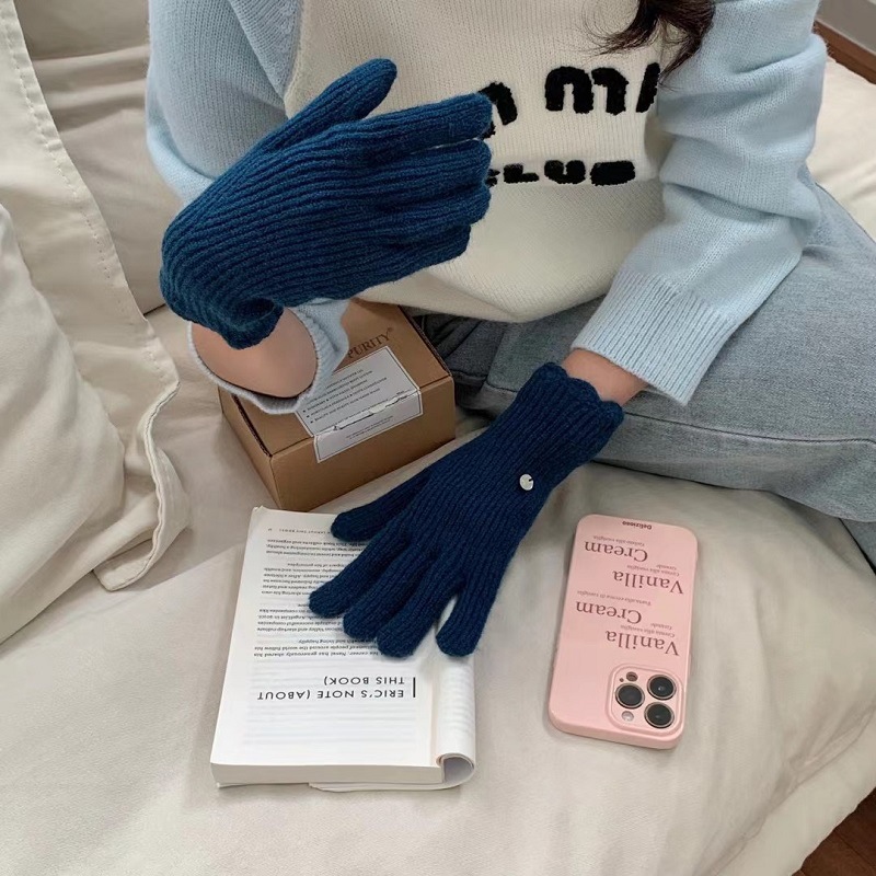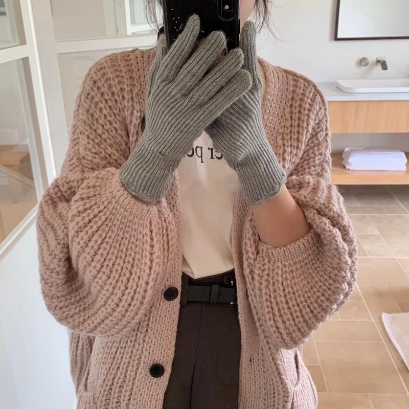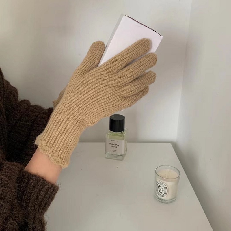 단색 니트 겨울 여성용 터치 스크린 방풍 두꺼운 따뜻한 방한 울 장갑 여성용 손가락 겨울 빨간 장갑스토어 가기