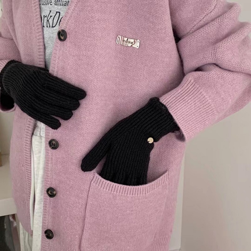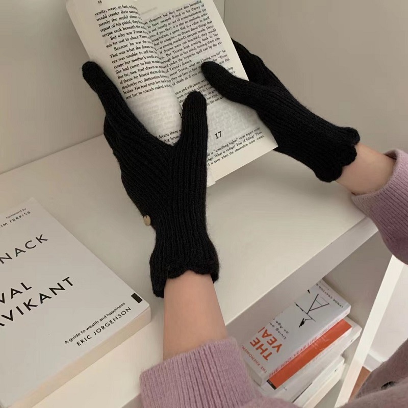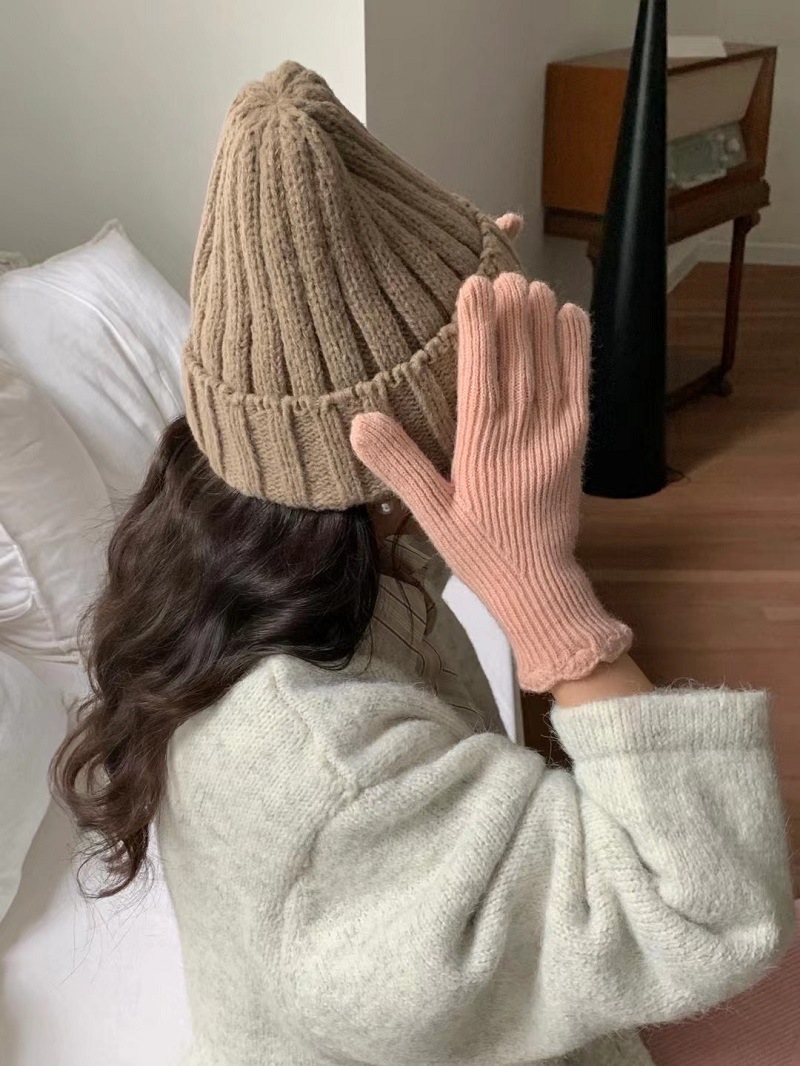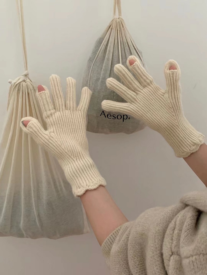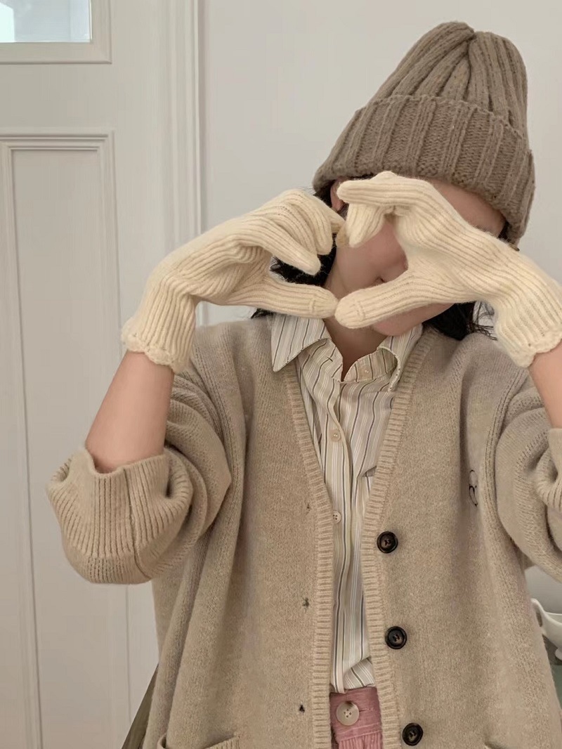 단색 니트 겨울 여성용 터치 스크린 방풍 두꺼운 따뜻한 방한 울 장갑 여성용 손가락 겨울 빨간 장갑스토어 가기