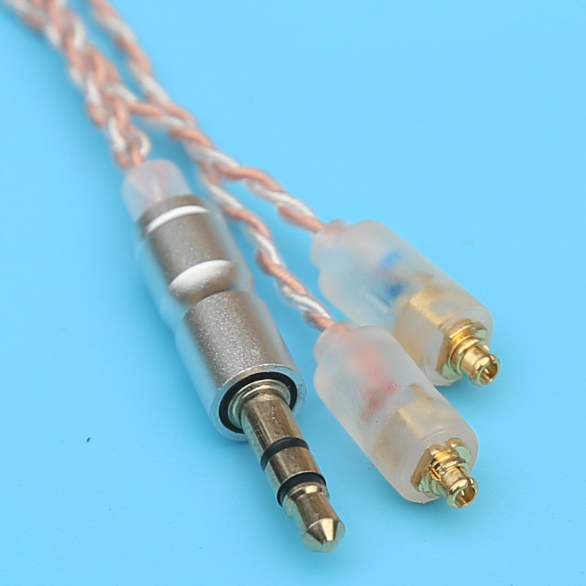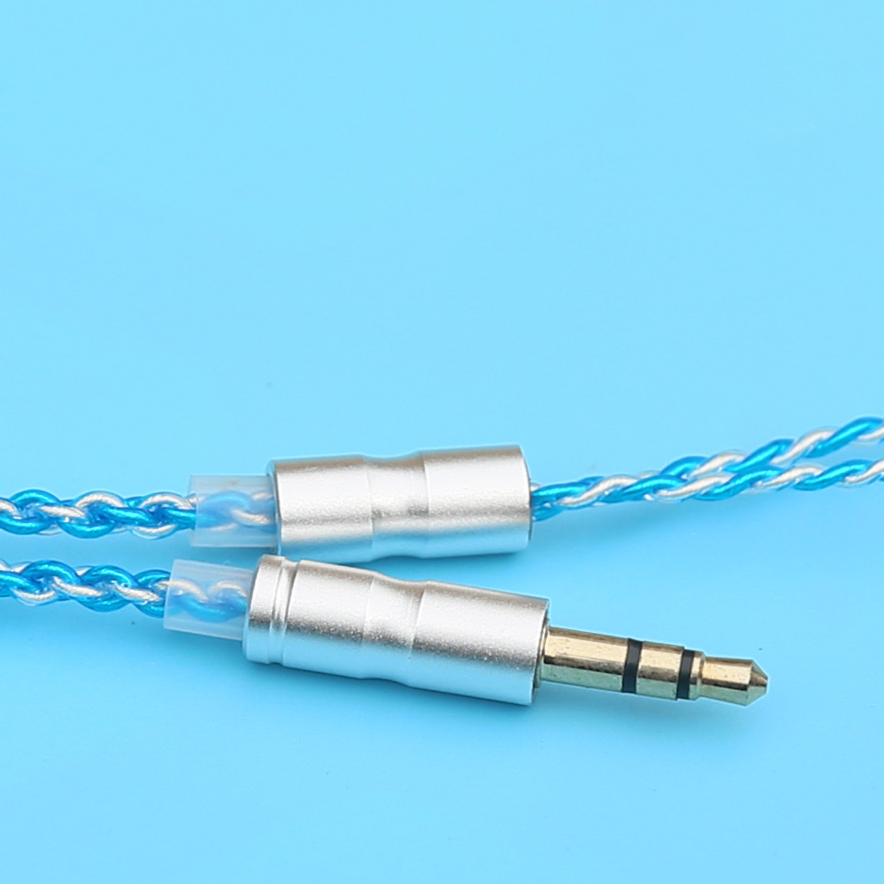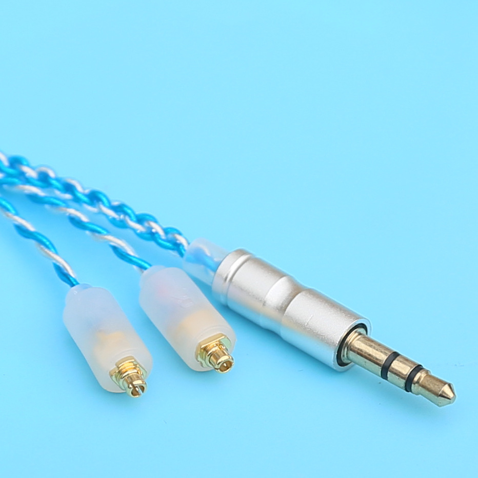 四款颜色线材,MMCX插口,3.5mm插头,兼容所有3.5mm插孔的安卓水果手机以及mp3,无麦。插头和中档都是金属,水蓝色线材是无氧铜线,其它三款为镀银线。线身柔软,线材外皮环保无毒,冬天不发硬,无听诊器效应。真材实料,线材默认1.2米,如需其它长度可联系店家订做