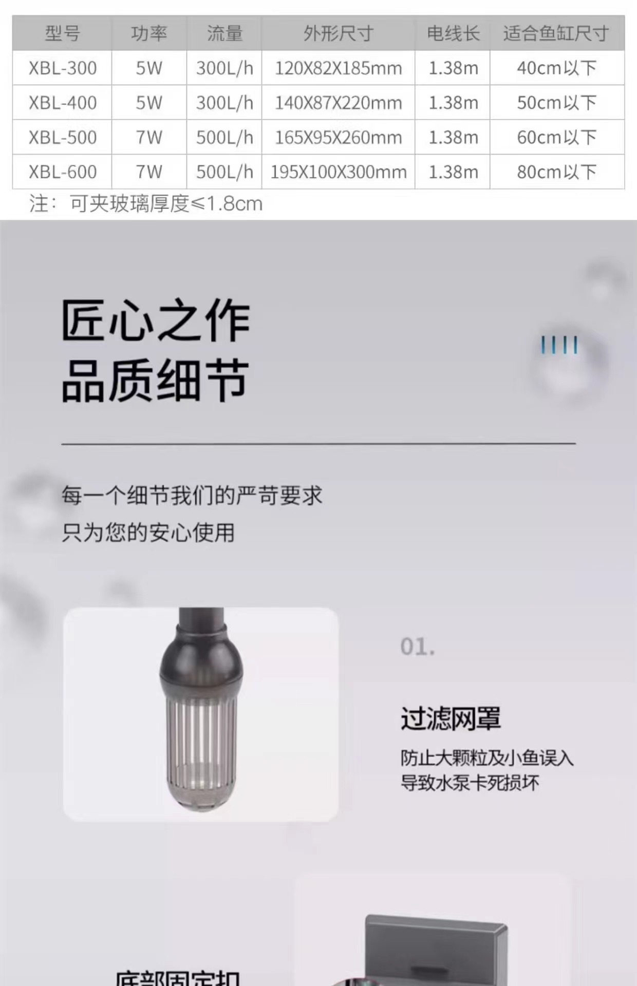 XBL 어항 필터 벽에 장착 된 필터 배럴 조용한 폭포 비 외부 작은 정수 순환 필터