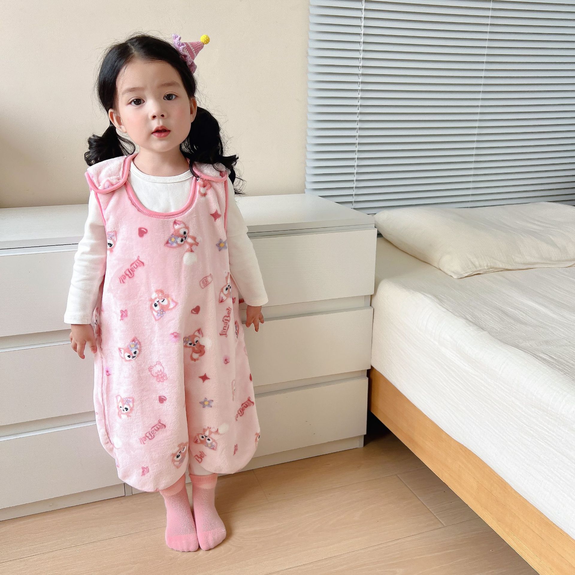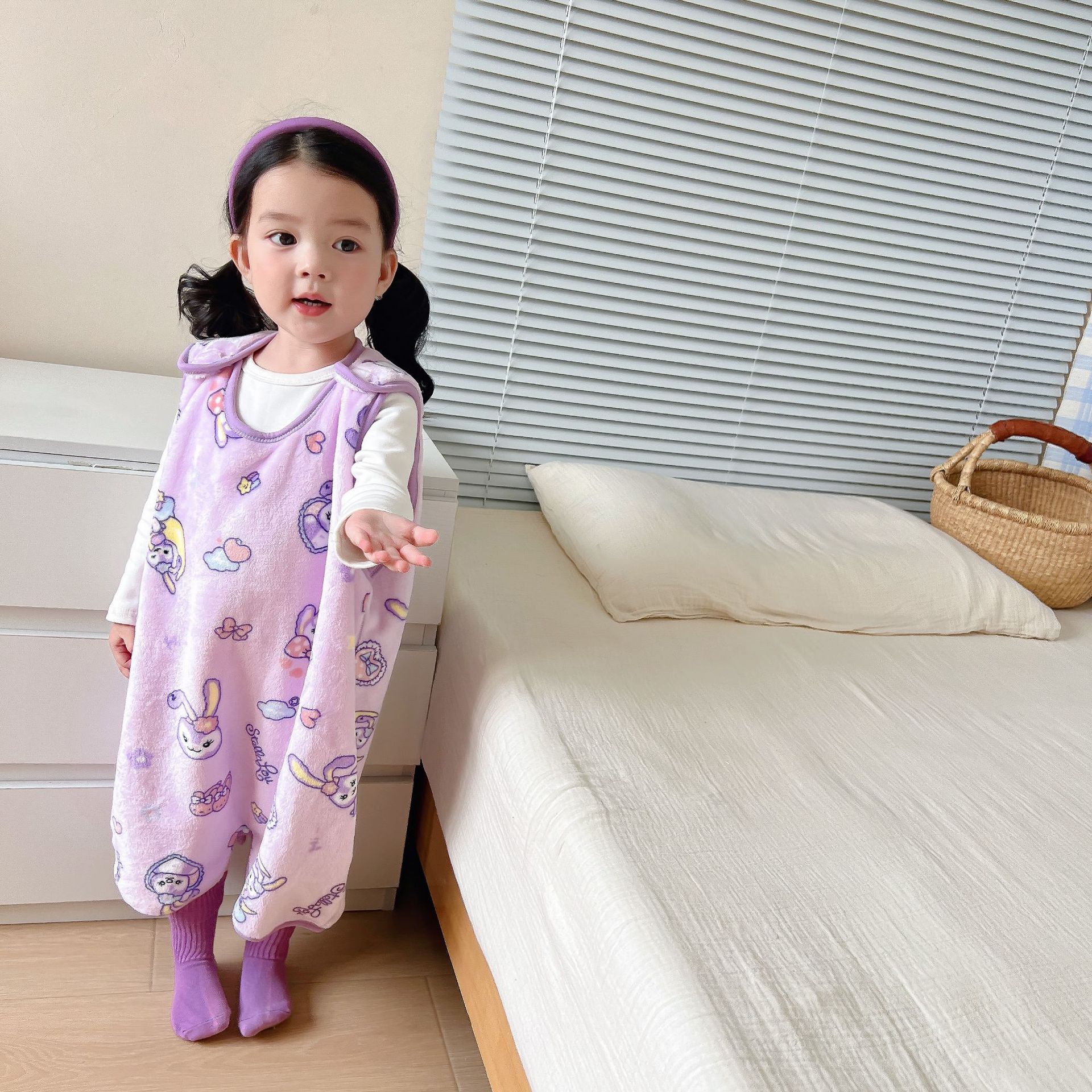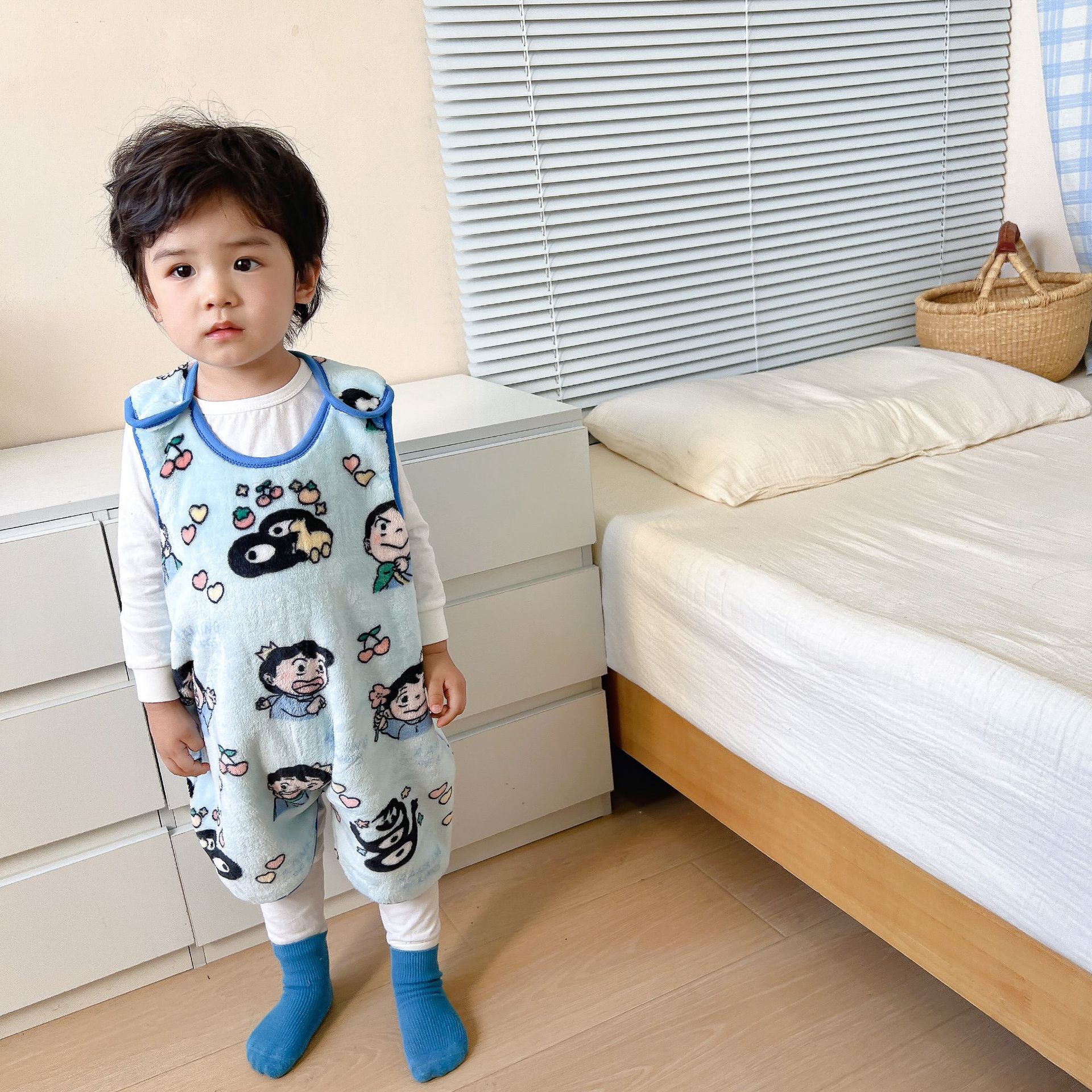 가을과 겨울 신형 아동용 패딩 플란넬 조끼 침낭 점프 슈트 킥 방지 이불 (헤어 세대)스토어 가기