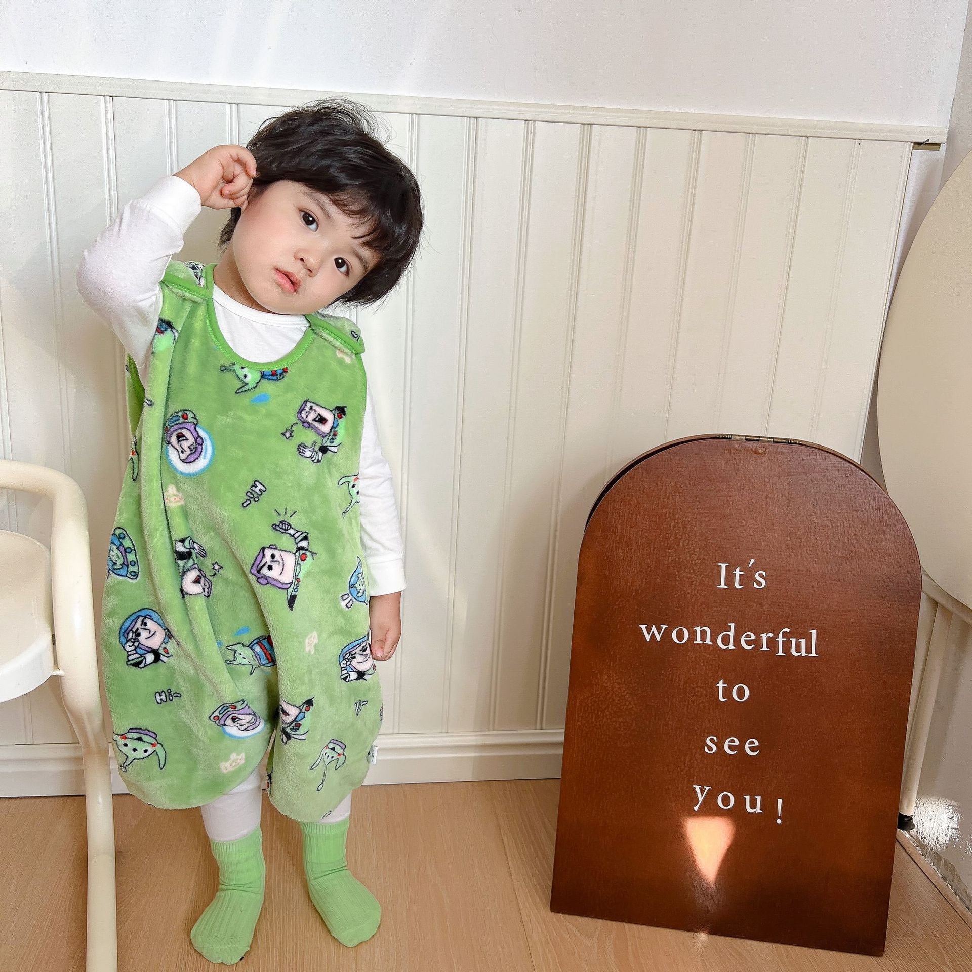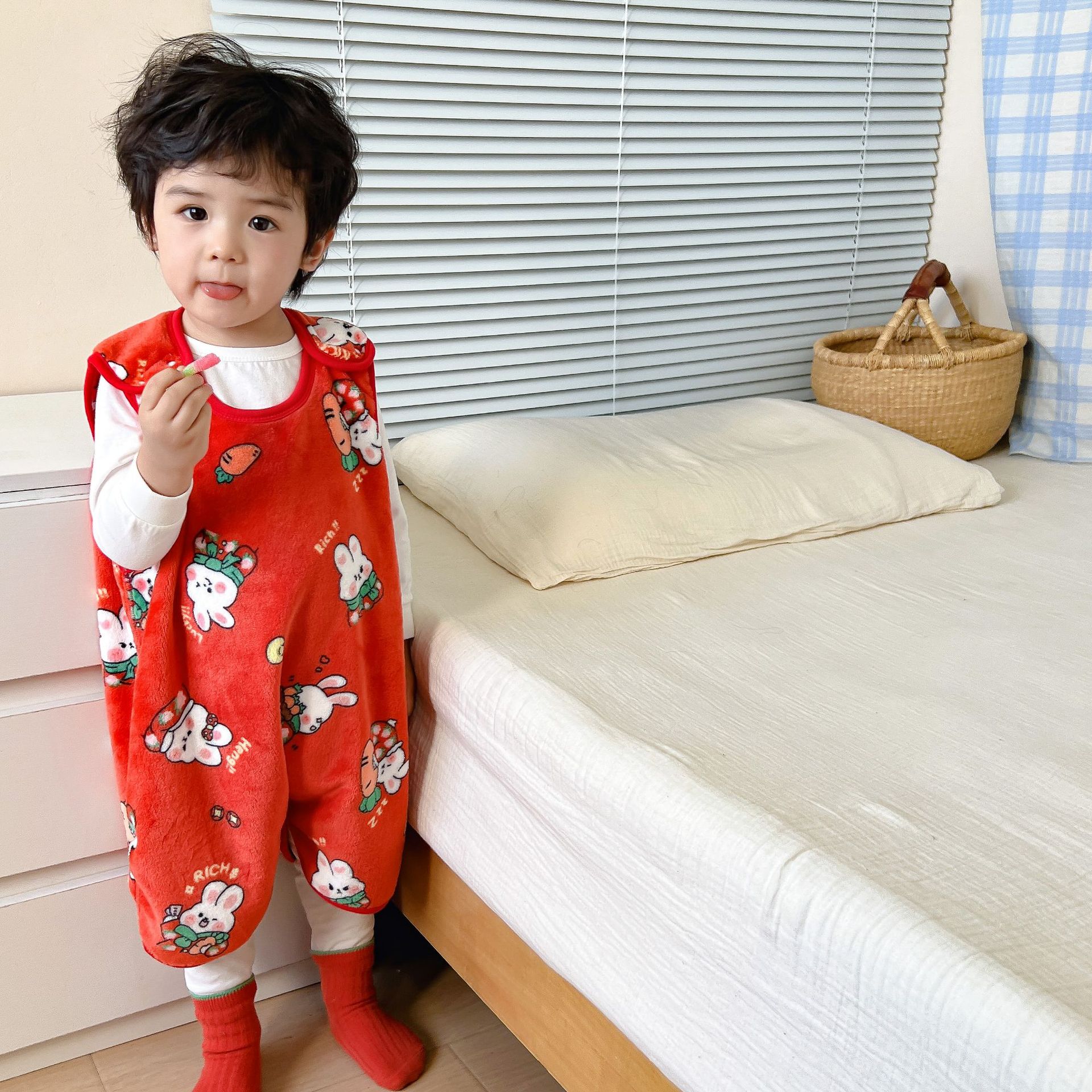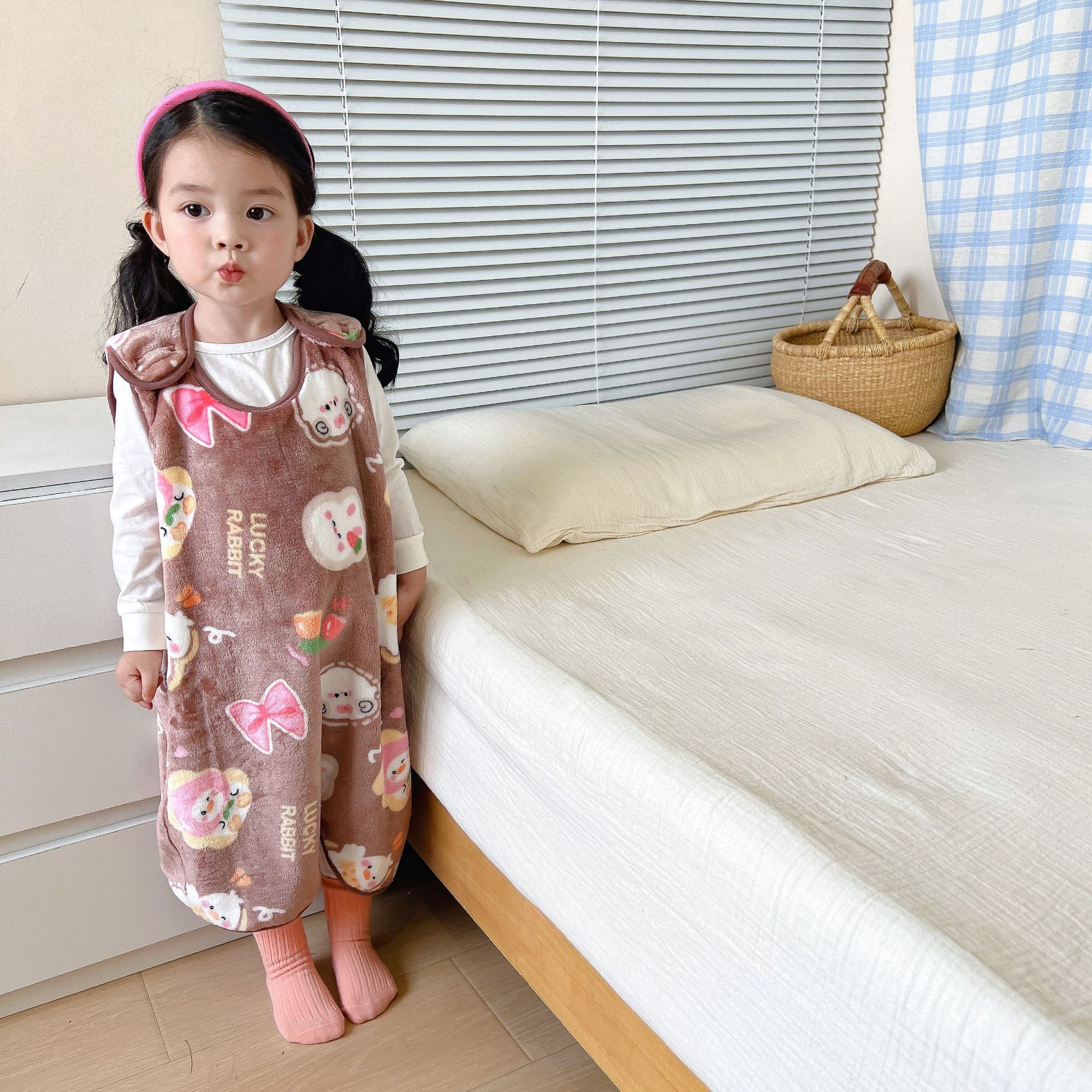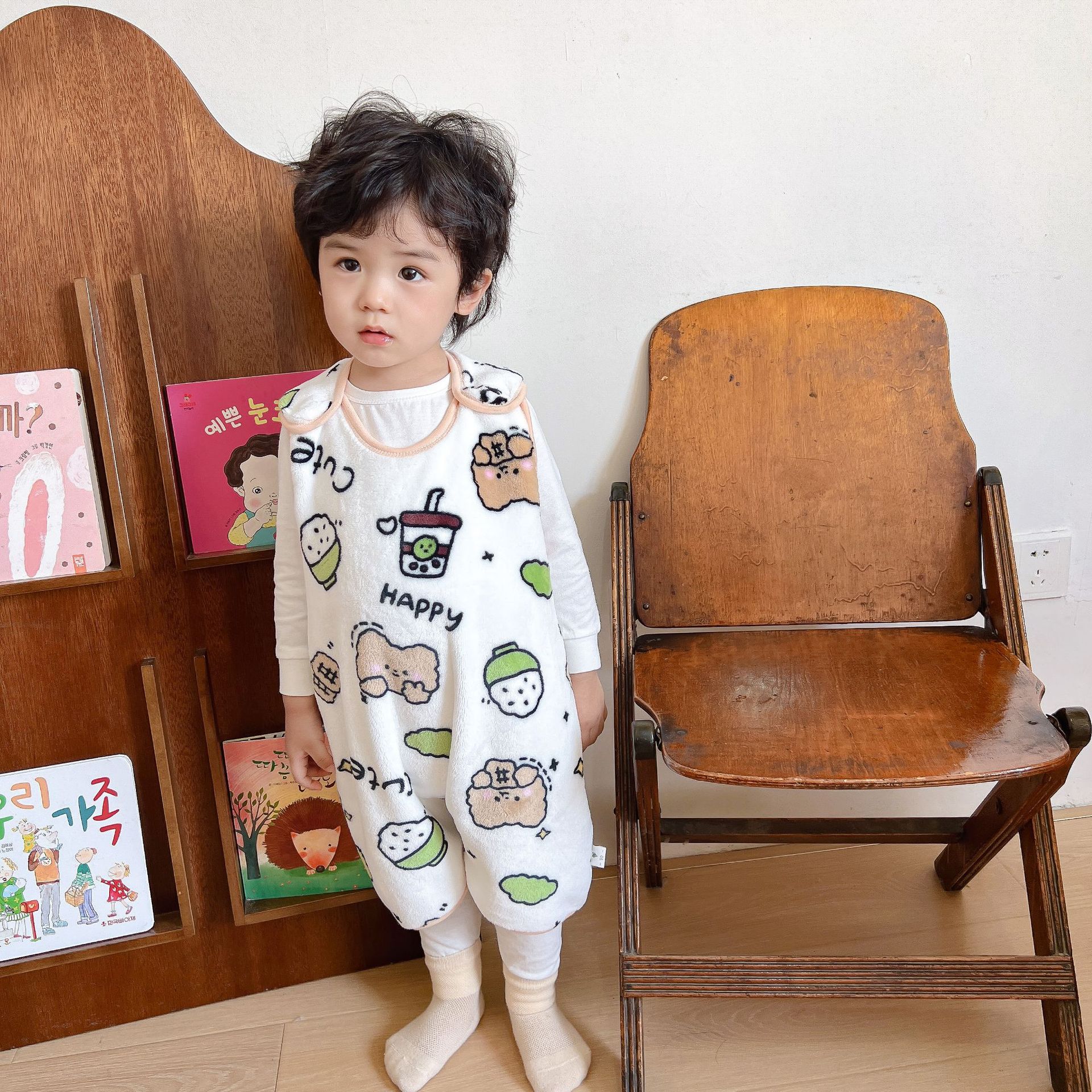 가을과 겨울 신형 아동용 패딩 플란넬 조끼 침낭 점프 슈트 킥 방지 이불 (헤어 세대)스토어 가기