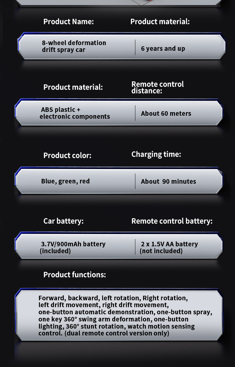 • 878A 8 륜 음악 스프레이 스턴트 카 블루