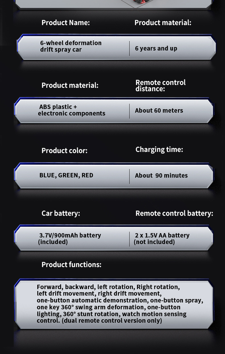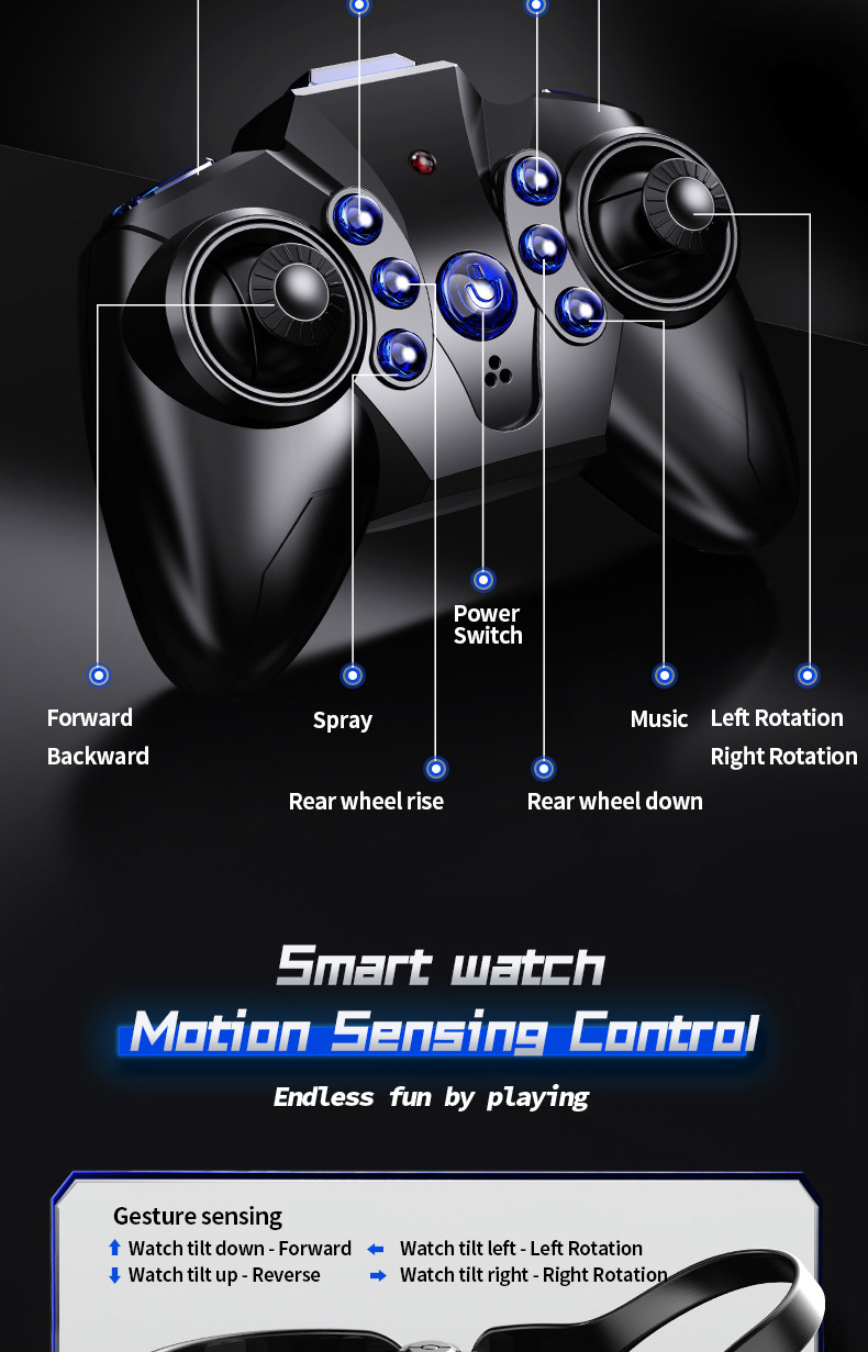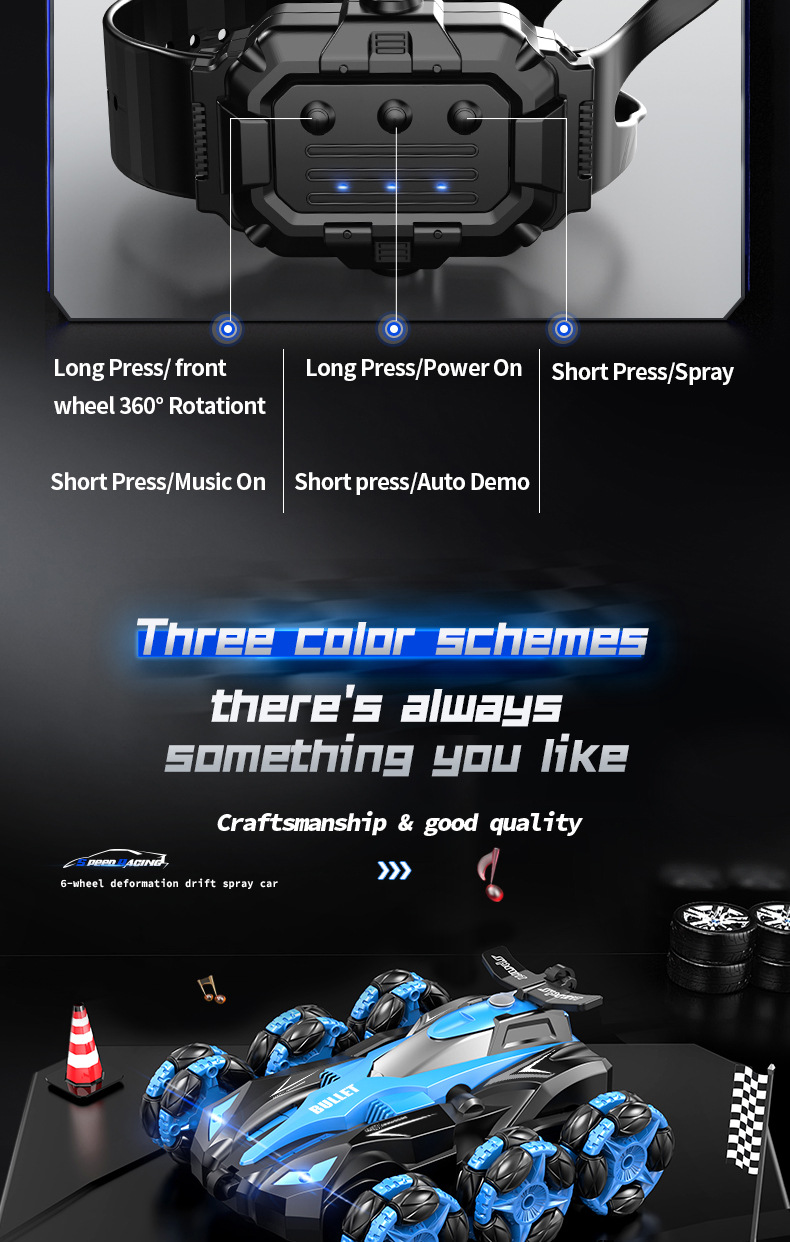 • 878B-1 6 륜 음악 스프레이 스턴트 자동차 블루 밴드 제스처