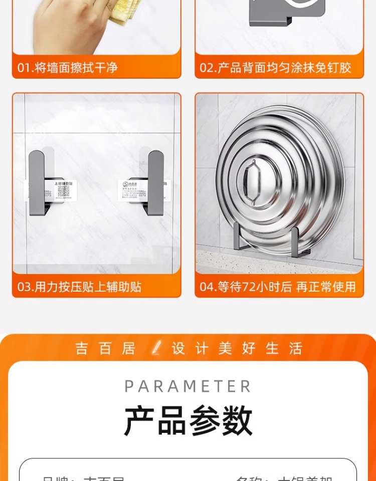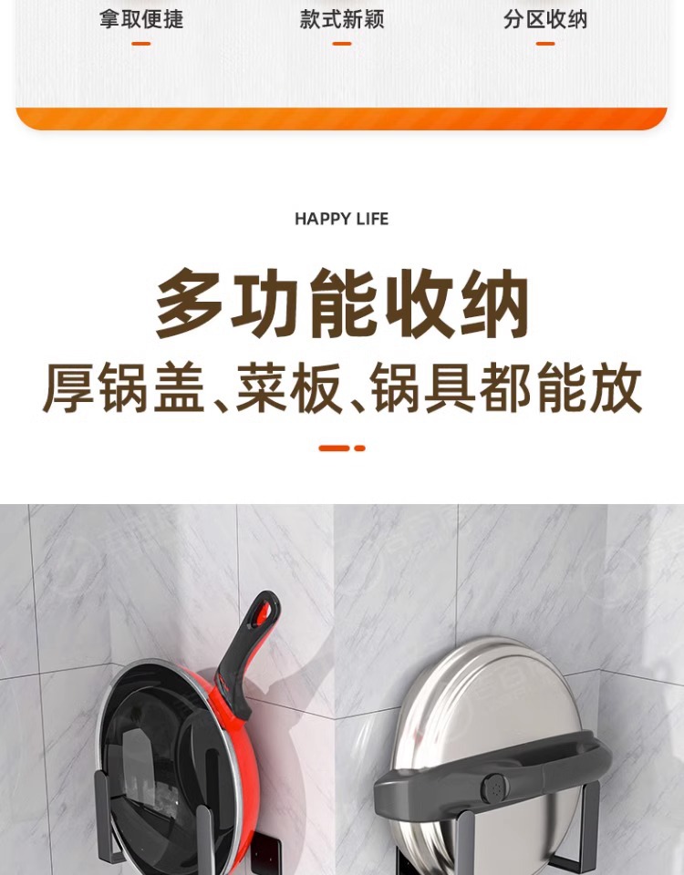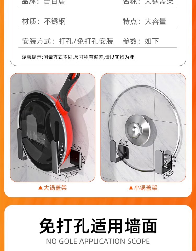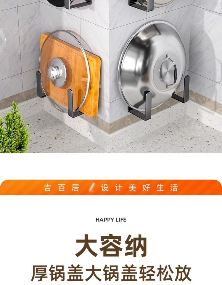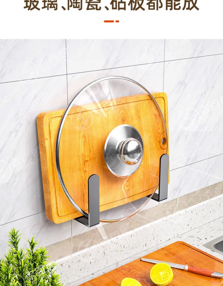 대형 냄비 뚜껑 랙 유물 벽걸이 형 펀치 프리 주방 도마 도마 수납 선반스토어 가기