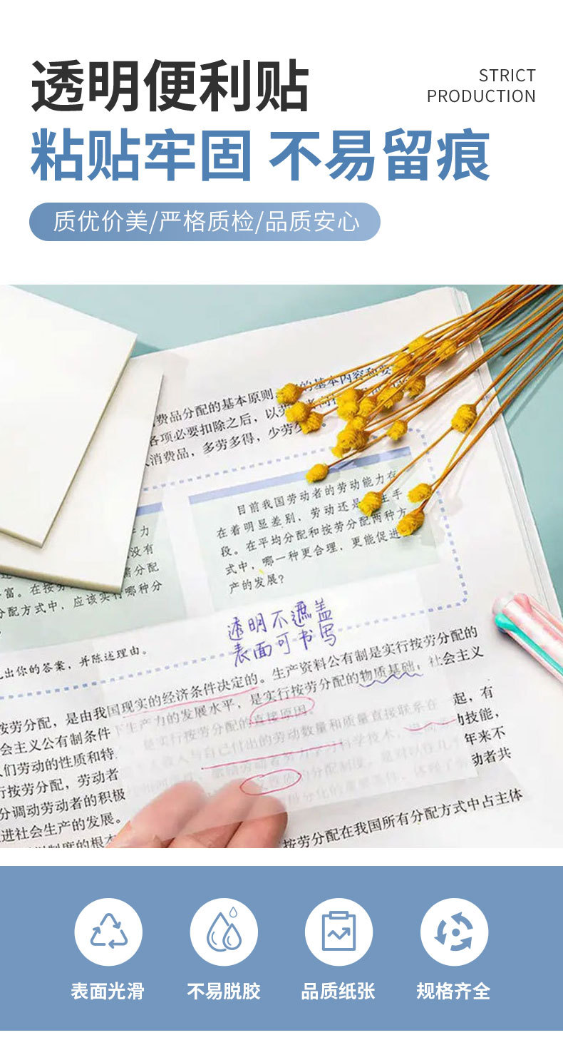 투명 스티커 메모 모란디 컬러 n회 스티커 사무실 학습 메모지 색인 스티커 애완 동물 컬러 스티커 메모 찢을 수 있음스토어 가기