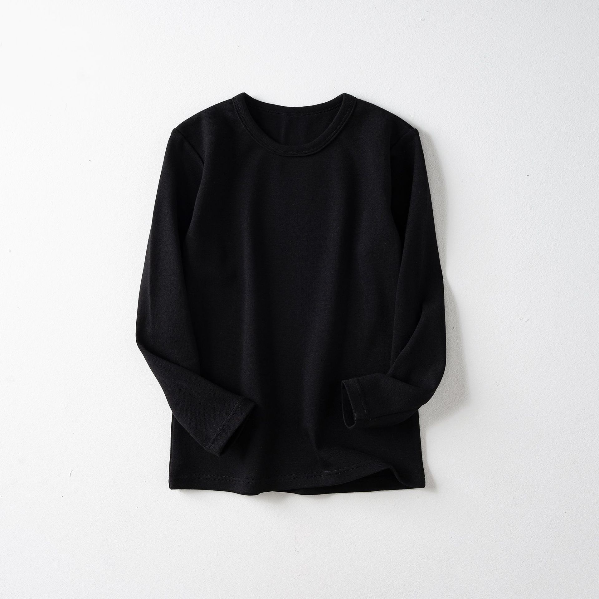 가을과 겨울 아동베이스 셔츠 두꺼운 따뜻한 샌딩 가을 옷 한국 단색 라운드 넥 여아 남성용 아기 긴 소매 탑