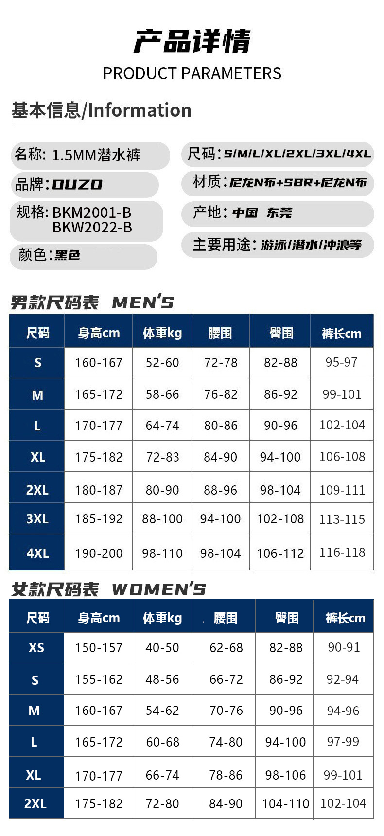 1.5mm 다이빙 바지 OUZO 수영 트렁크 남성과 여성을위한 차가운 태양 보호 따뜻한 겨울 수영 바지 분할 서핑 다이빙 바지스토어 가기