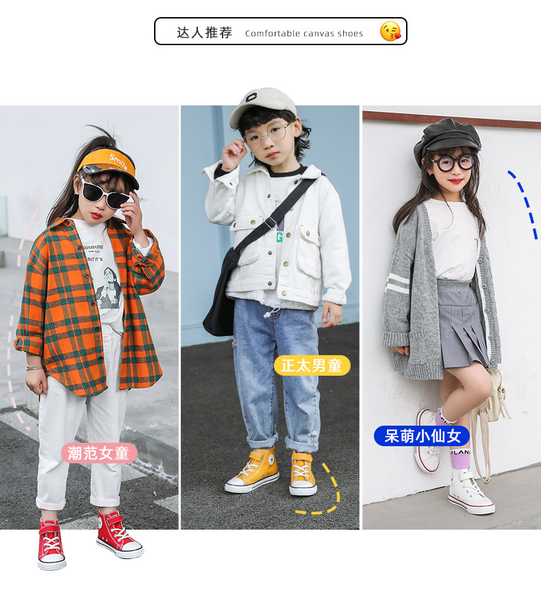 어린이 하이탑 캔버스 신발 탄성 밴드 학생 큰 소년 소녀 한국 캐주얼 캔버스 신발 봄과 가을 단층 신발 조수스토어 가기