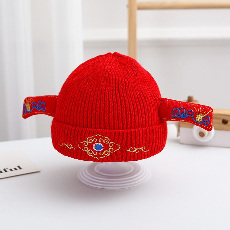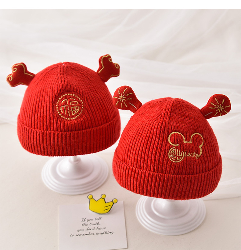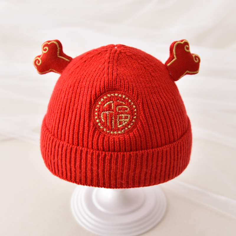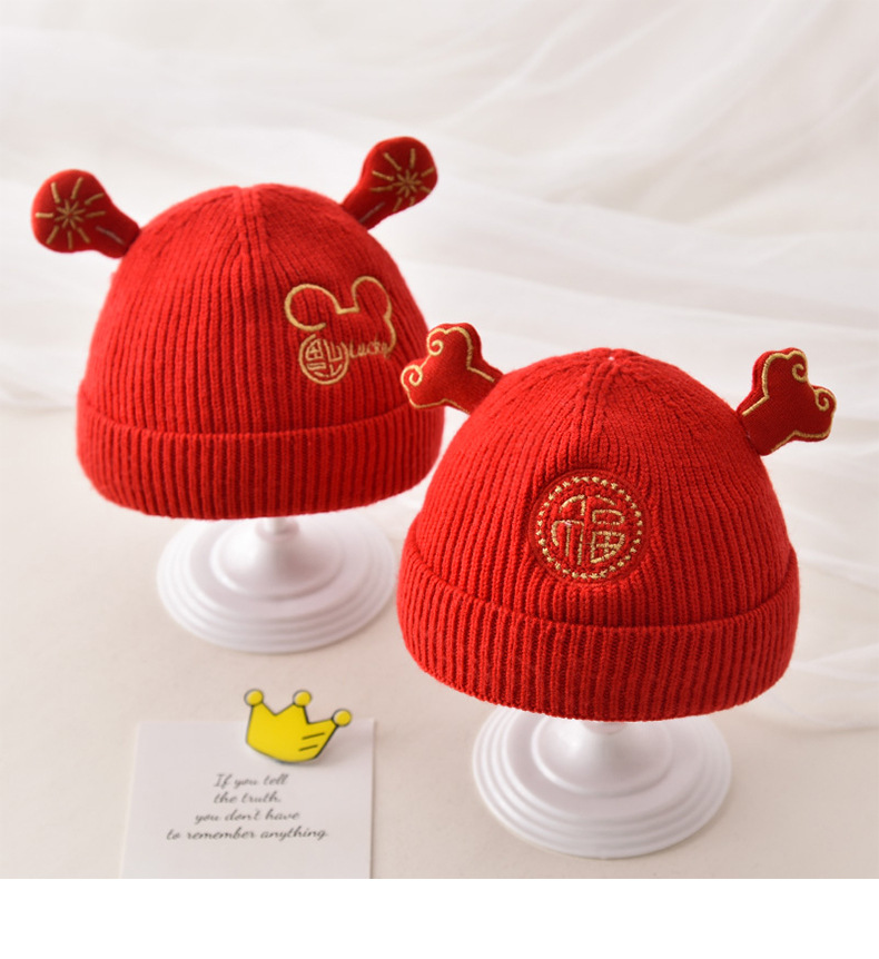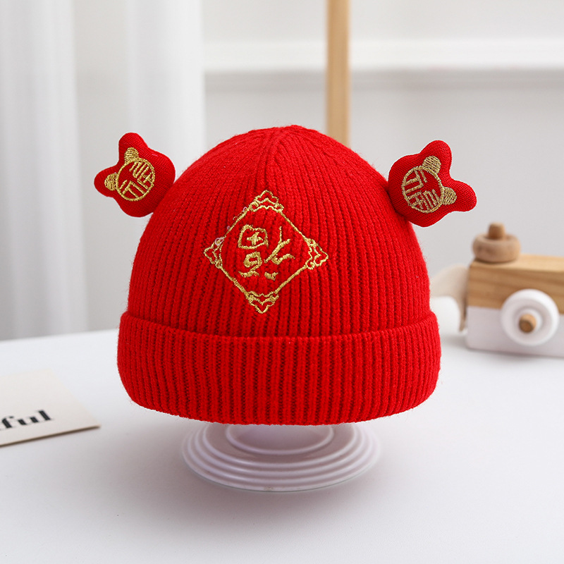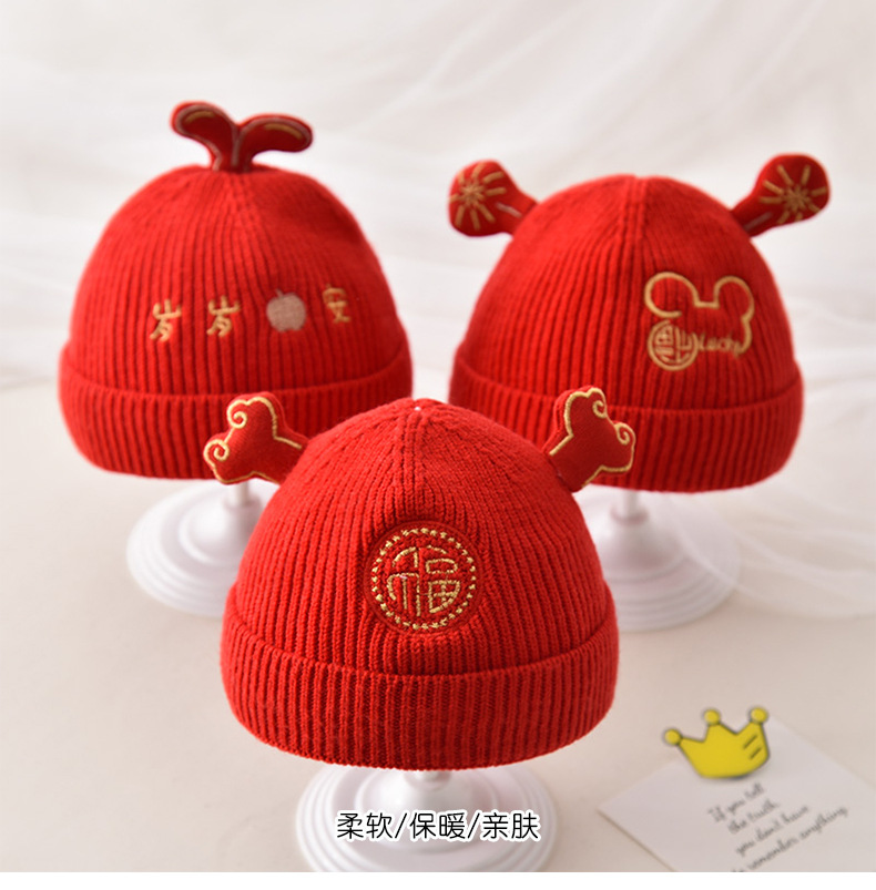 신생아 가을과 겨울 니트 모자 축제 중국 붉은 따뜻한 머리 보름달 모자 귀여운 호랑이 머리 울 모자