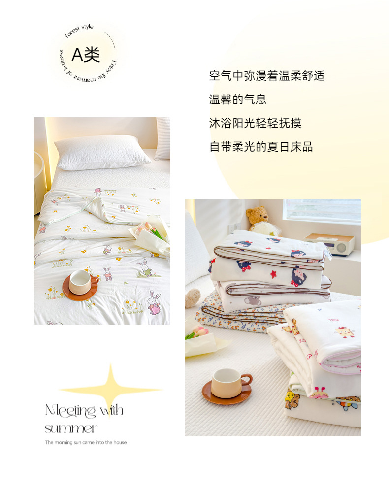 클래스 A 모성 및 유아 등급 니트 코튼 여름 이불 에어컨 이불 기계 세탁기 대두 섬유 여름 이불 싱글 및 더블 기숙사 이불스토어 가기