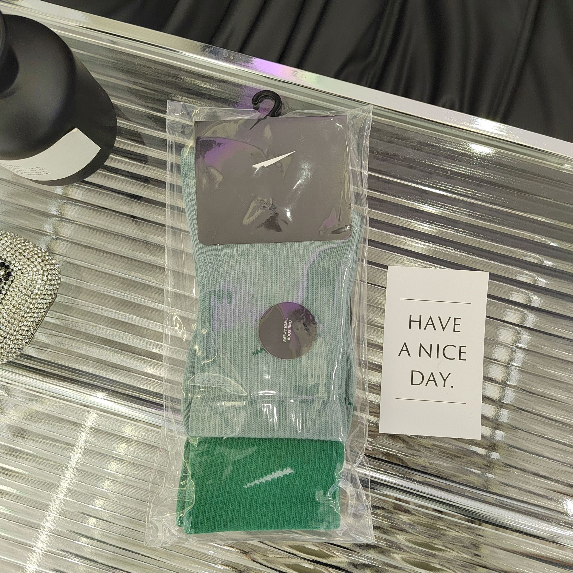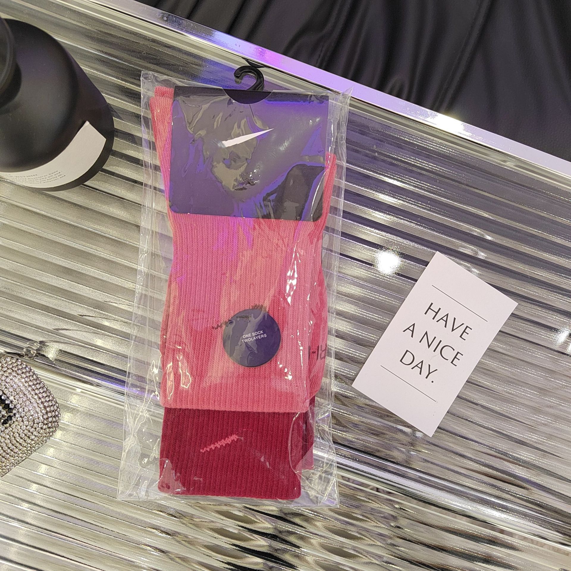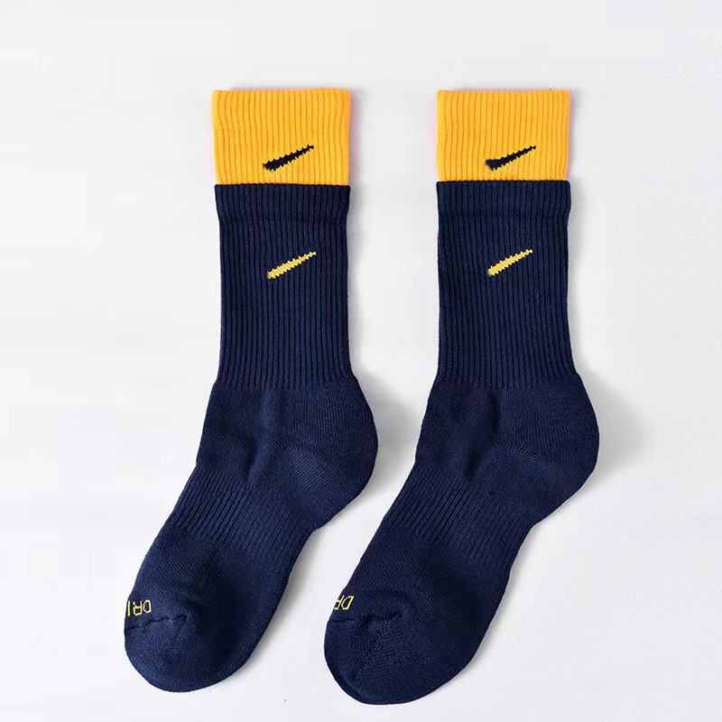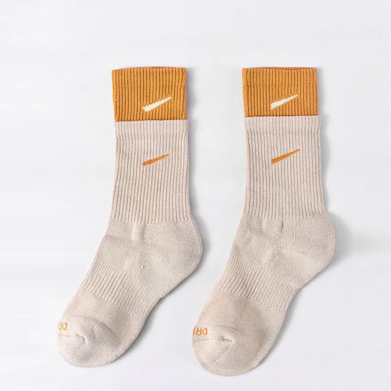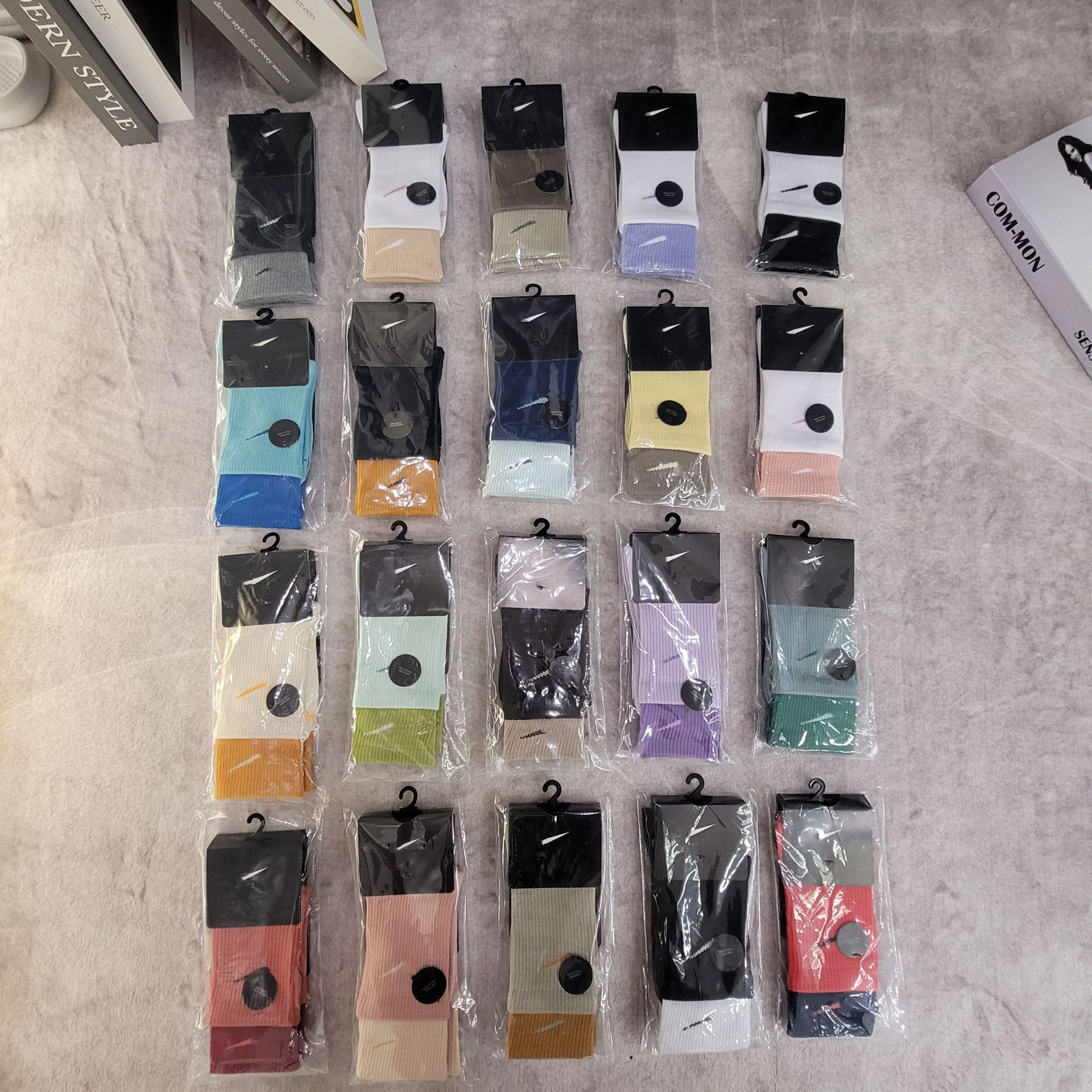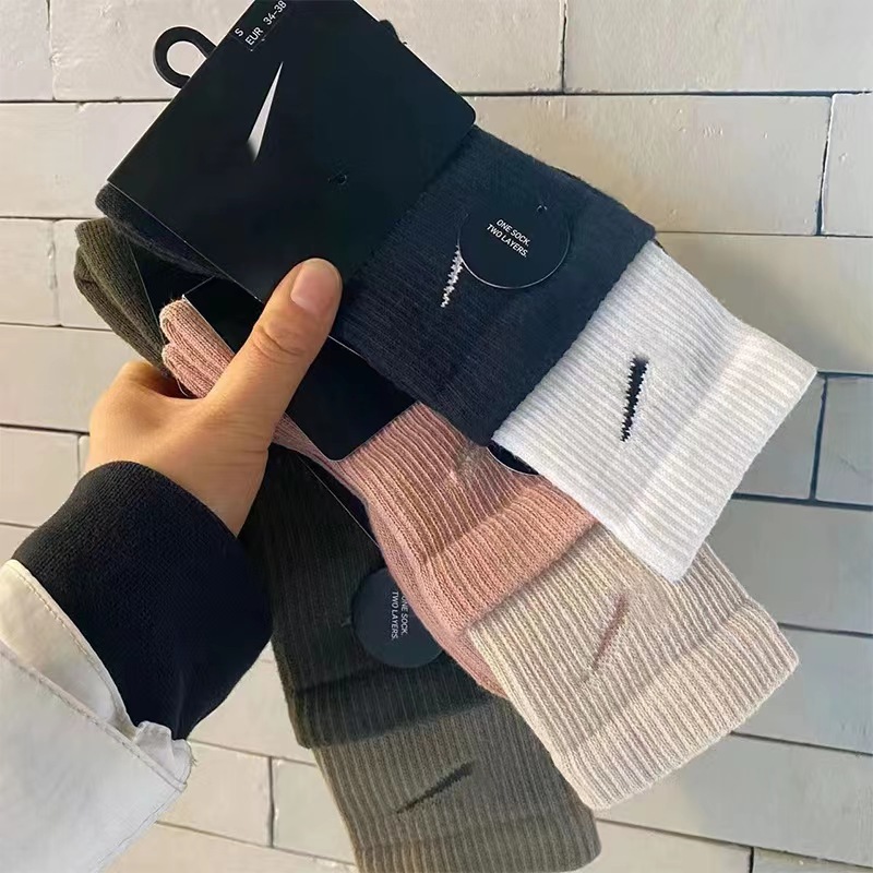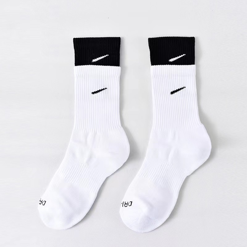 봄여름용 고급스러운 디자인의 하이탑 양말, 이중 레이어드 이중 밴딩, 페이크 투피스 캐주얼 트렌디 피트니스 스포츠 양말스토어 가기