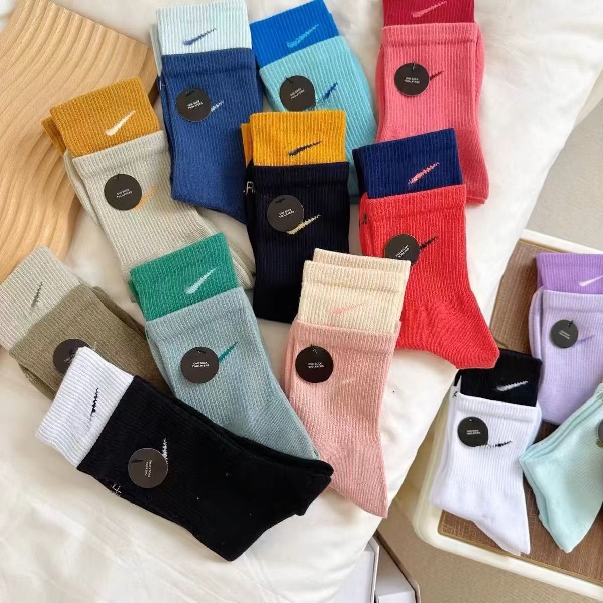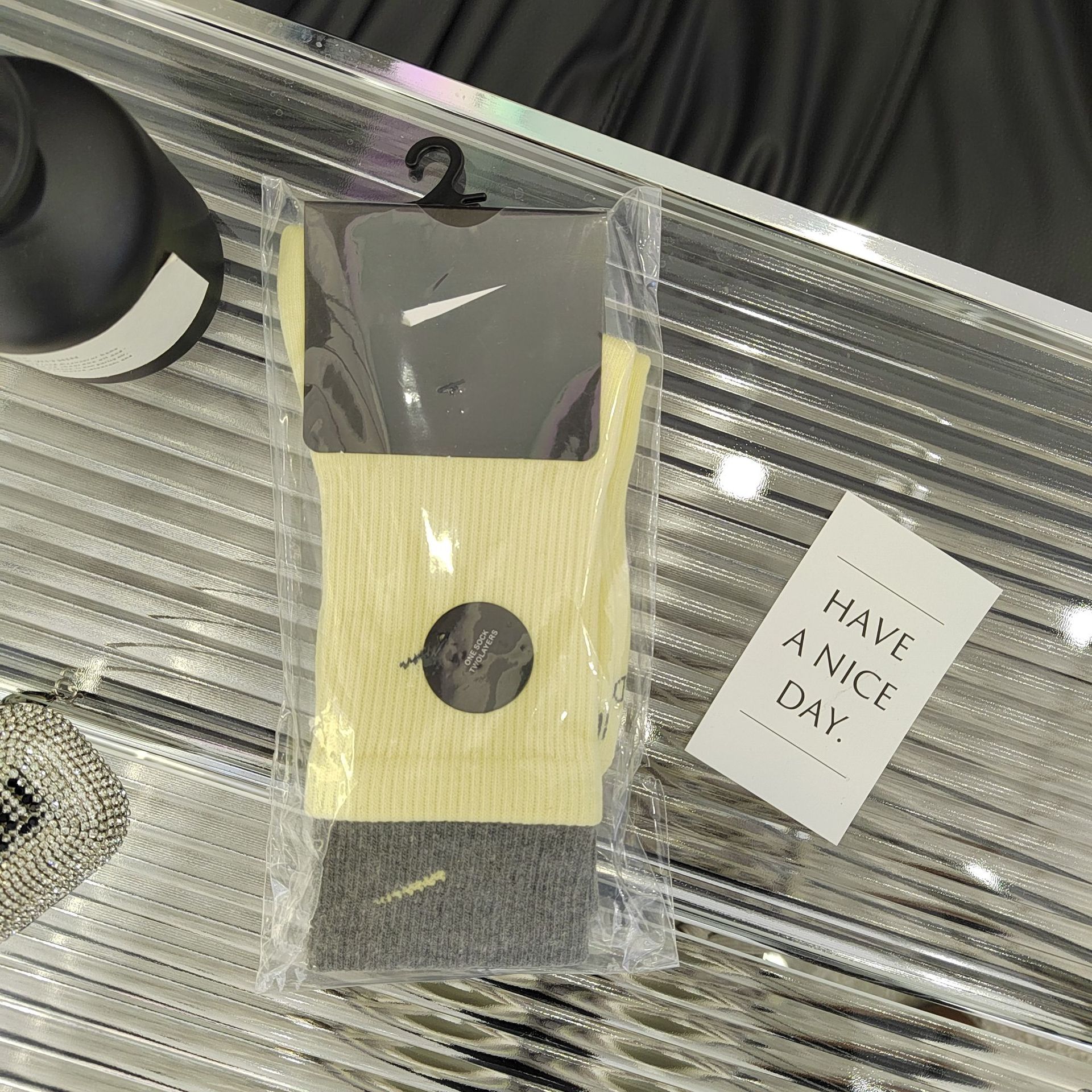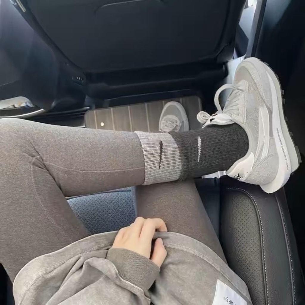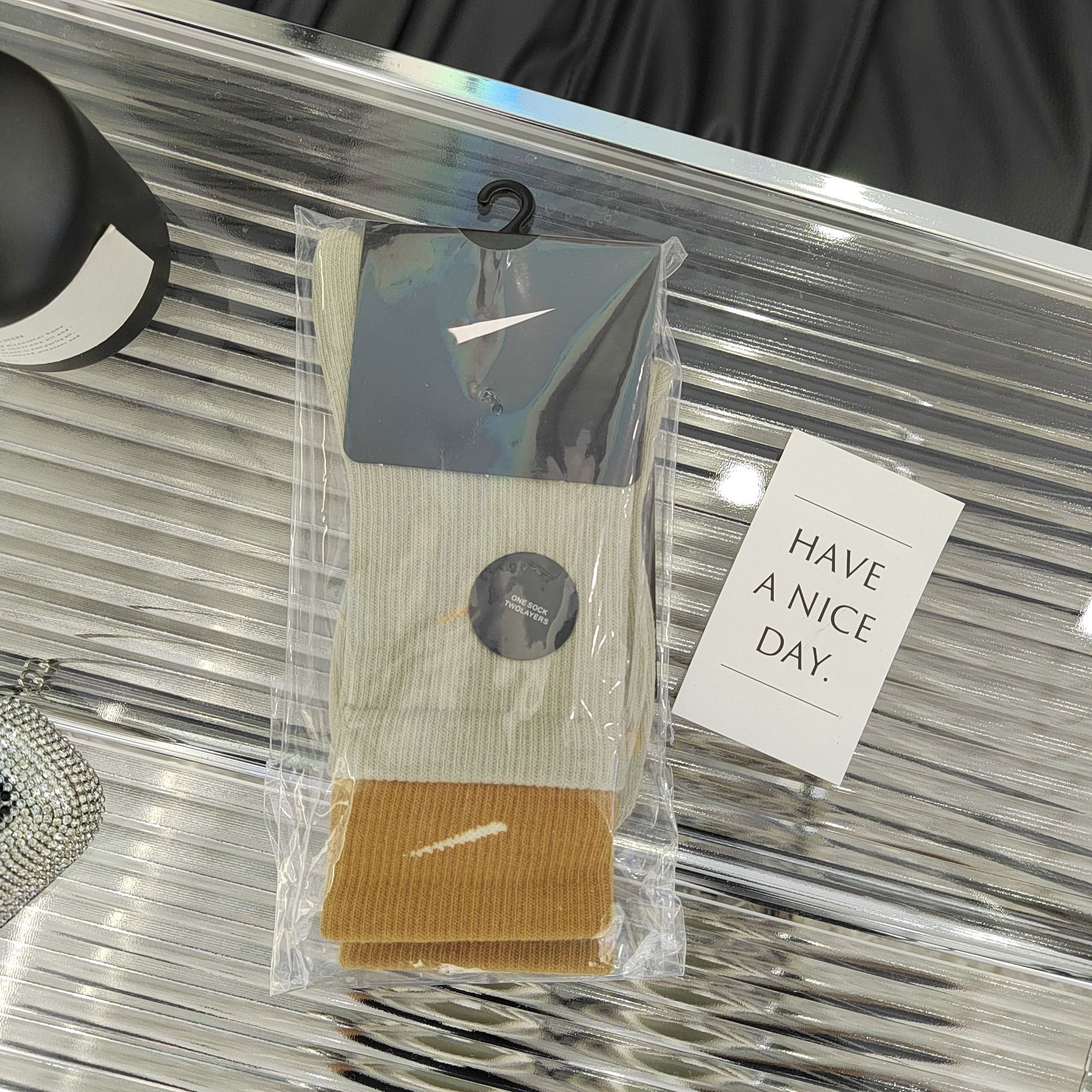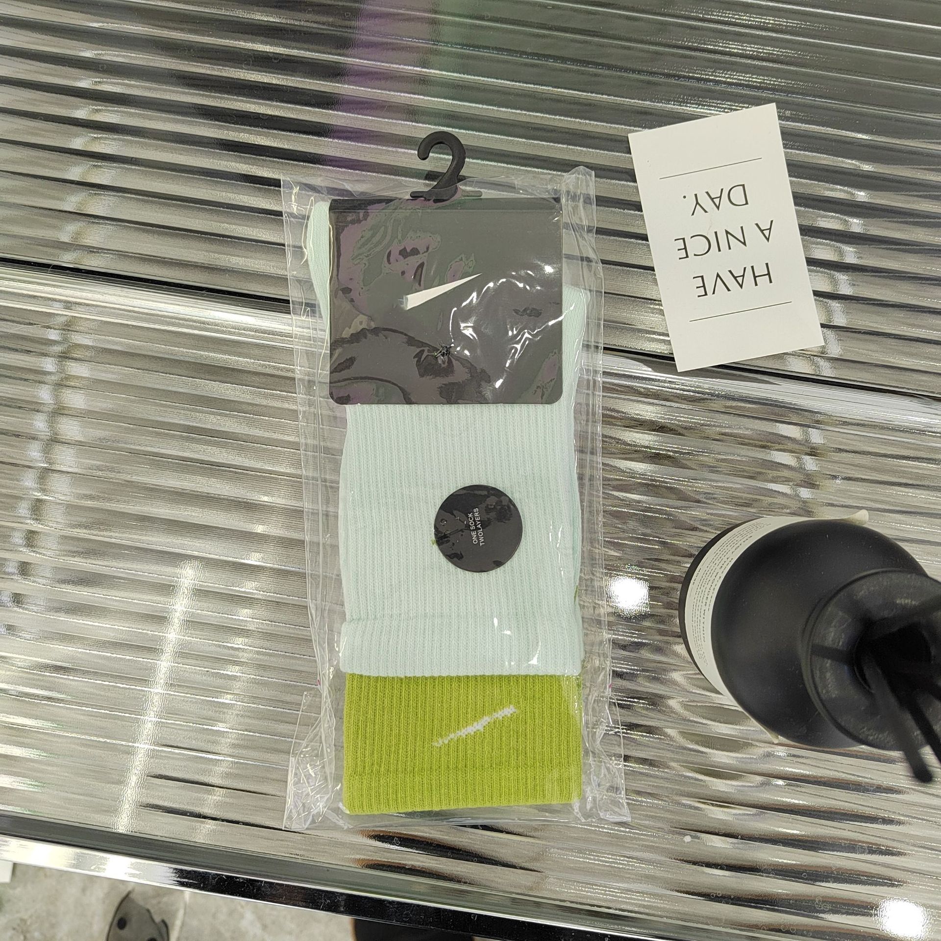 봄여름용 고급스러운 디자인의 하이탑 양말, 이중 레이어드 이중 밴딩, 페이크 투피스 캐주얼 트렌디 피트니스 스포츠 양말스토어 가기