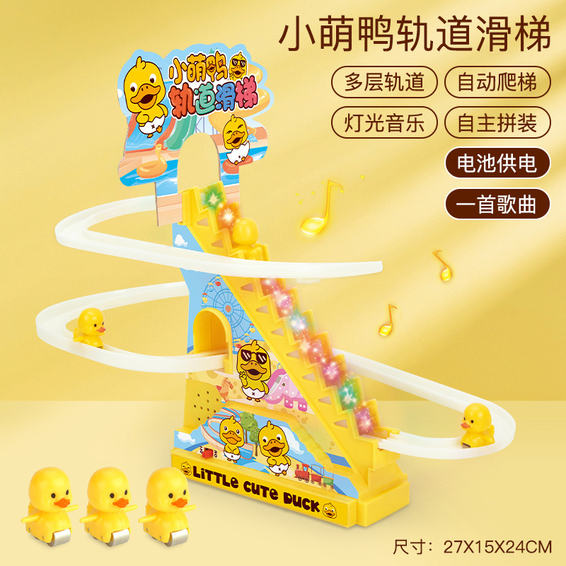 소리 그물을 흔들어 빨간 아이들의 장난감 소년 전기 사랑스러운 오리 슬라이드 레일 자동차 계단 등반 장난감 슈퍼마켓 선물 도매스토어 가기