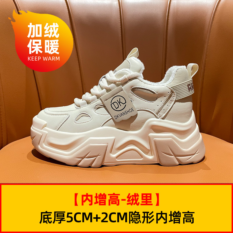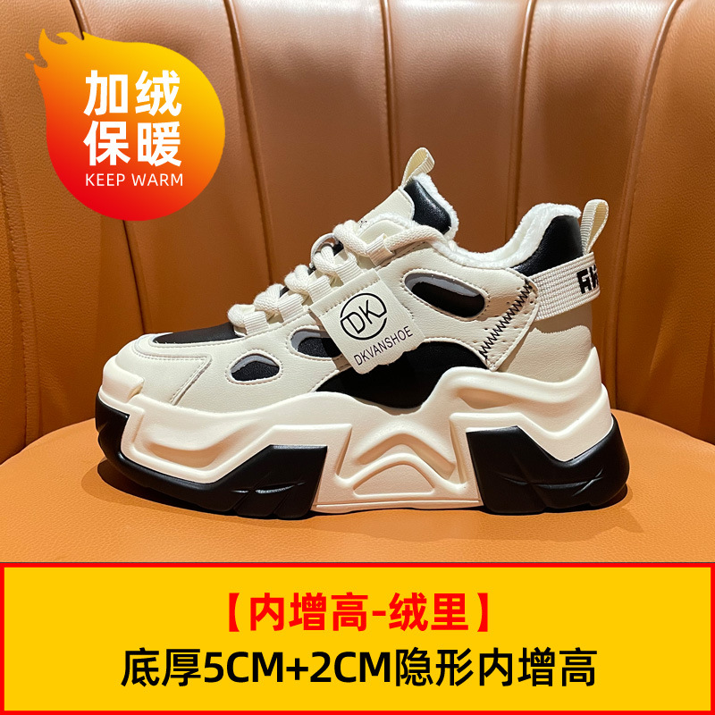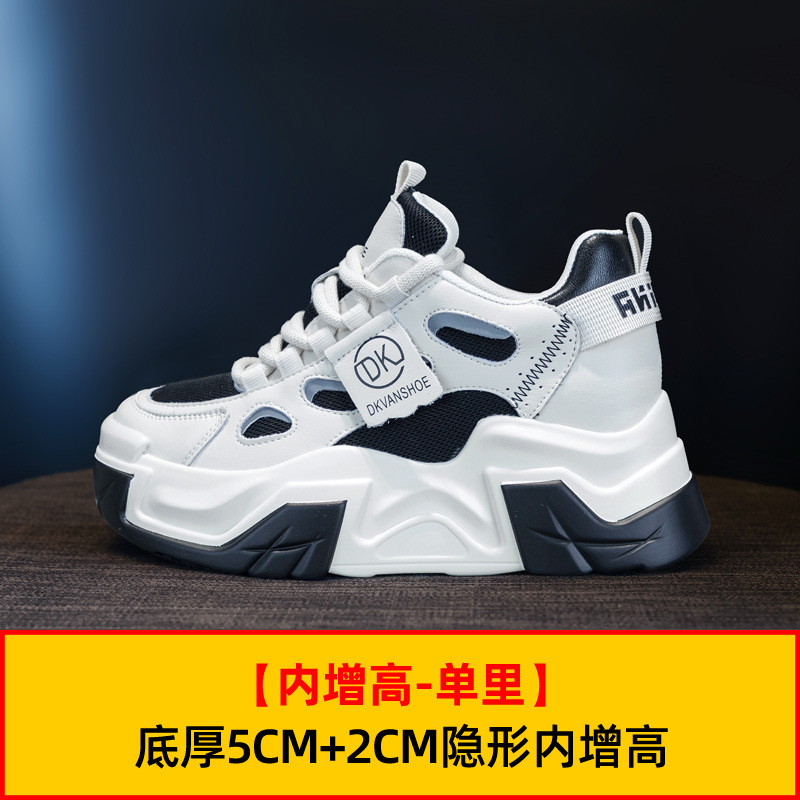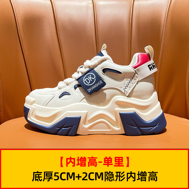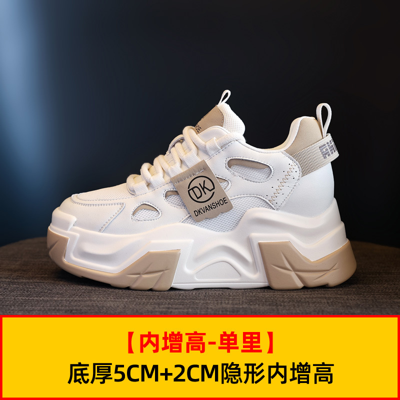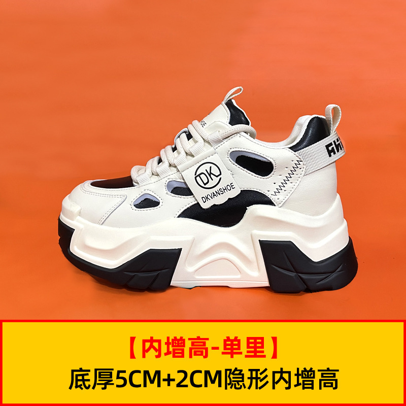 두꺼운 밑창의 가벼운 여성용 스포츠 런닝화, 발을 더 작아 보이게 하는 2026년 신상, 천연 가죽 다용도 두리안 밑창 키높이 캐주얼화스토어 가기