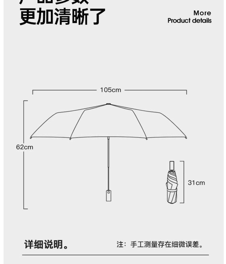 Zhiyu 단색 자동 우산 여성용 햇빛과 비 이중 목적 차광 자외선 차단 자외선 차단 자동 남성용 폭풍우 특수 우산스토어 가기