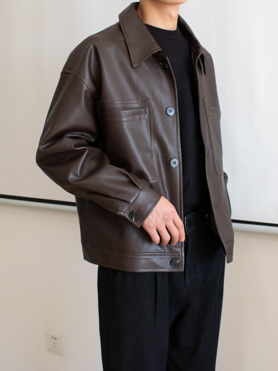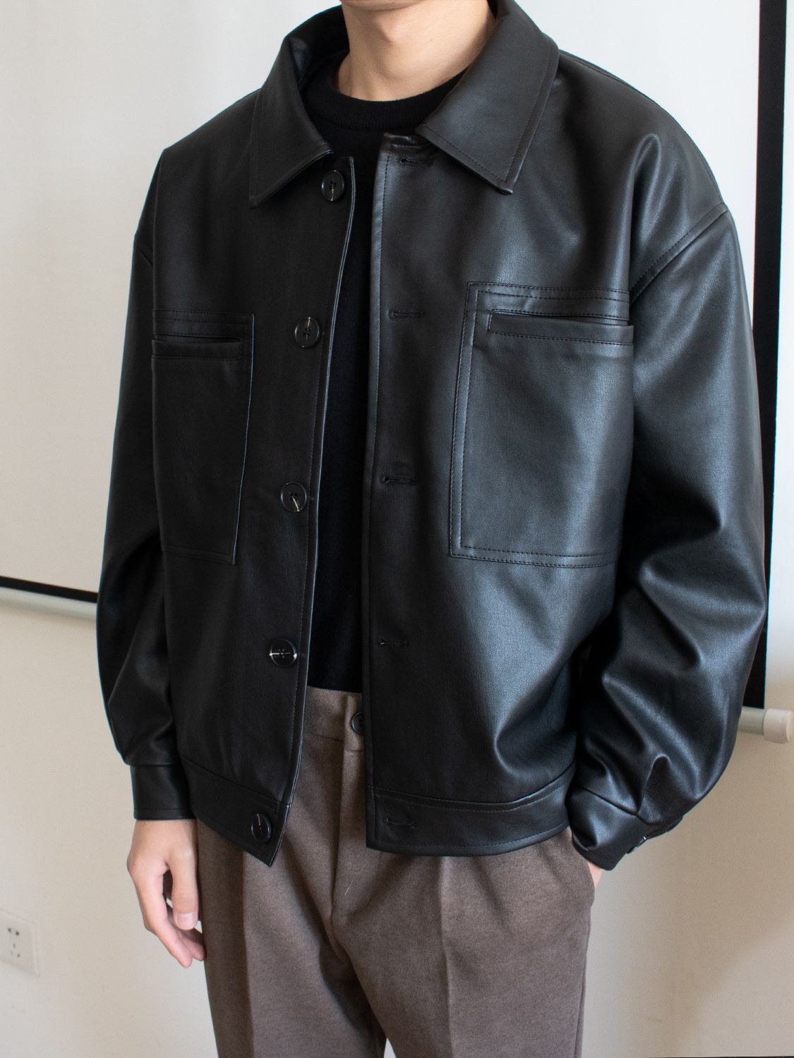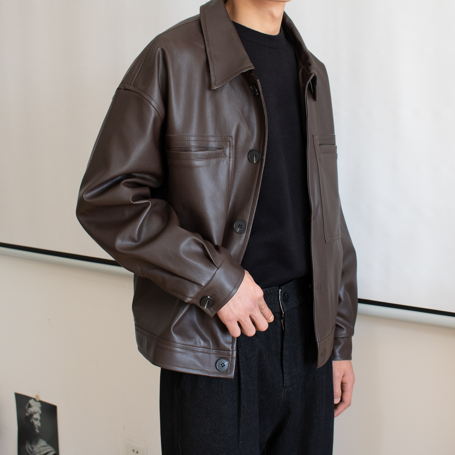 봄과 가을 한국 가죽 자켓 남성용 한국어 느슨한 오토바이 짧은 가죽 자켓 남성용 푹신한 잘 생긴 복고풍 pu 재킷스토어 가기