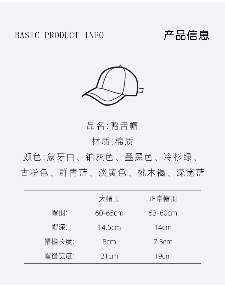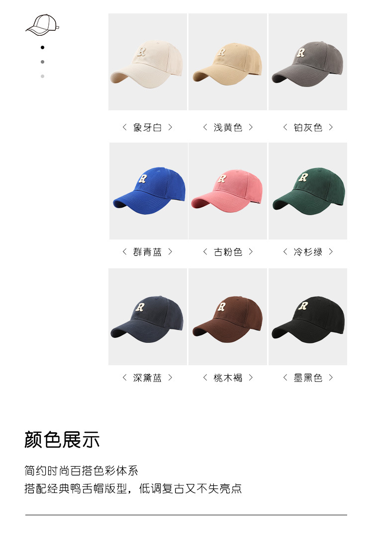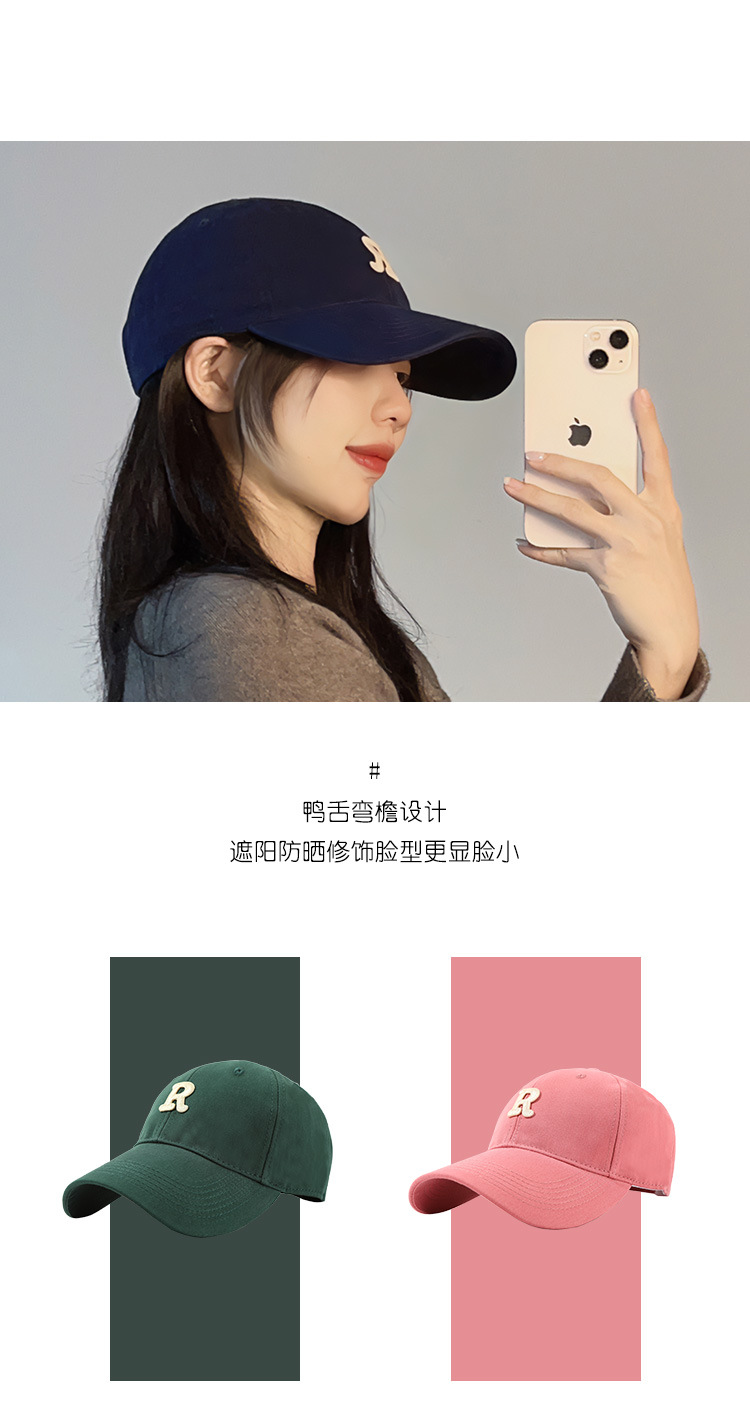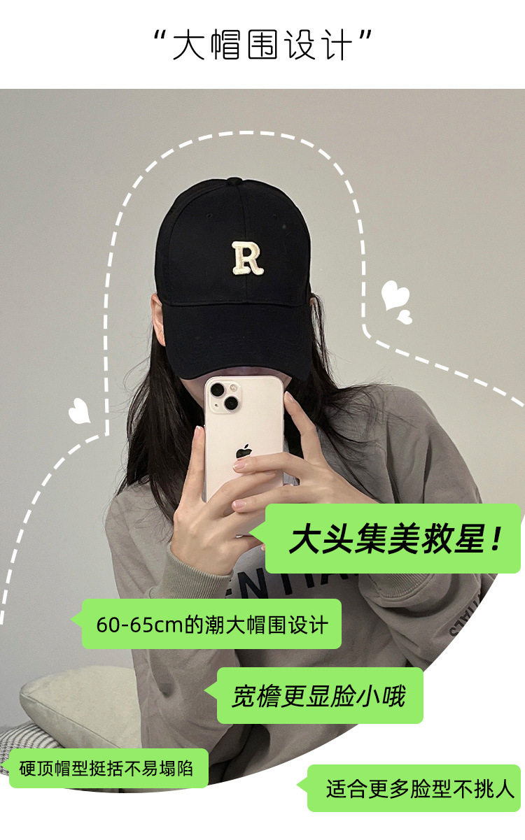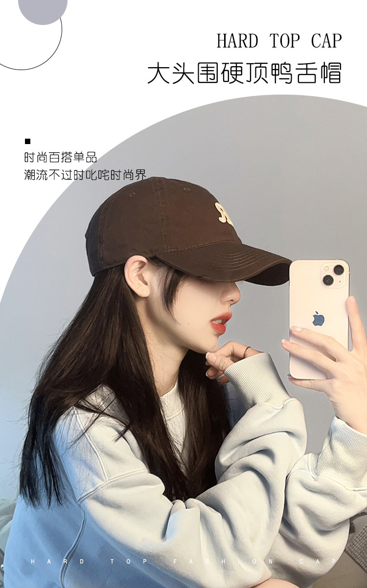 모자 여자의 봄과 가을 야구 모자 하드 탑 확대 머리 둘레 및 넓은 챙 깊은 탑 R 표시된 얼굴 작은 2023 여름 새로운스토어 가기