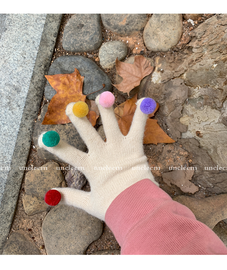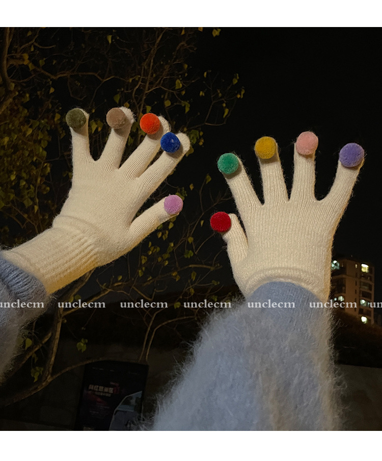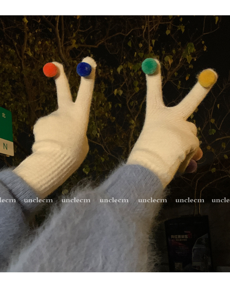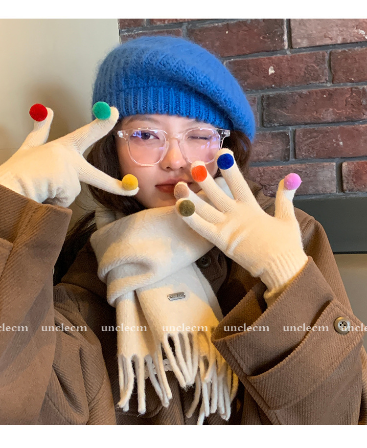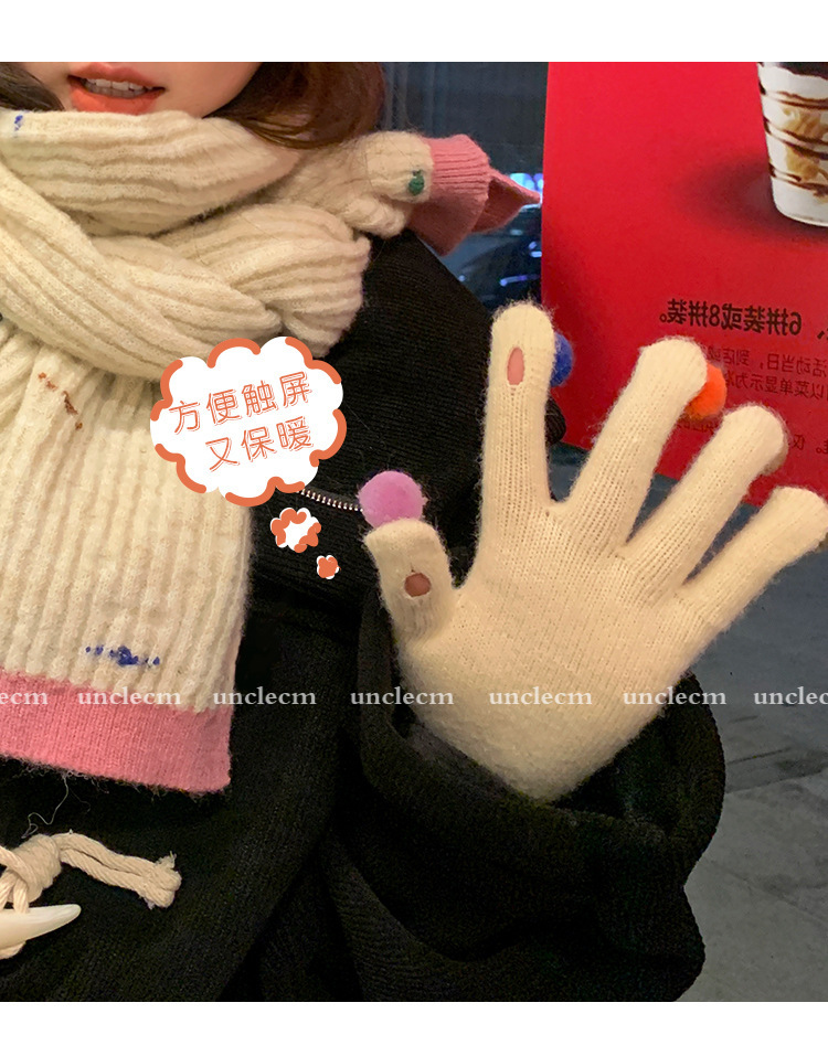 아이보리 따뜻한 장갑 여자의 겨울 터치 스크린 귀여운 니트 무지개 손가락 타고 감기 방지 기모 두꺼운 학생스토어 가기
