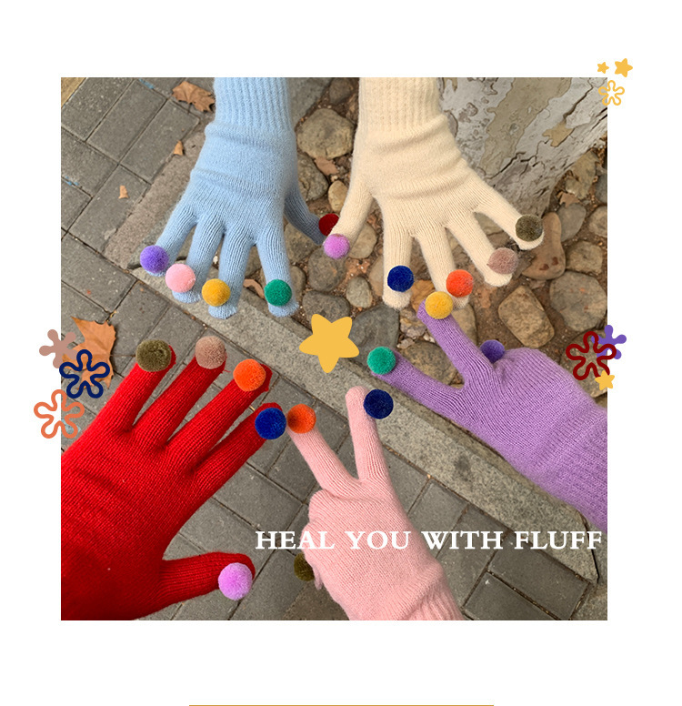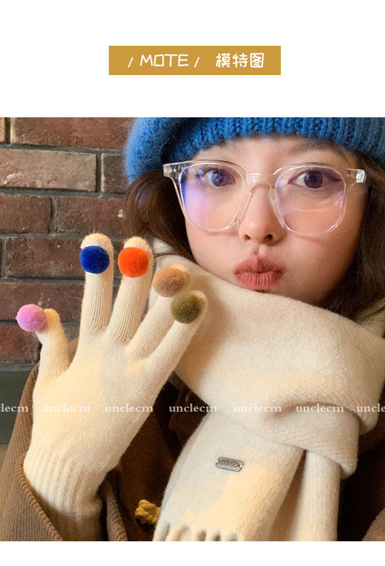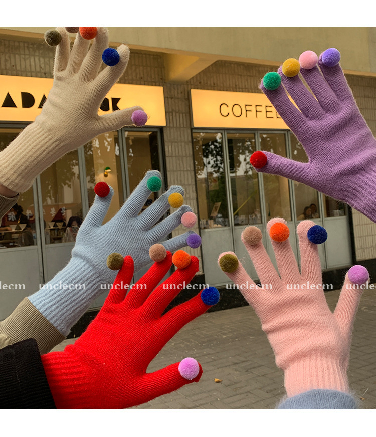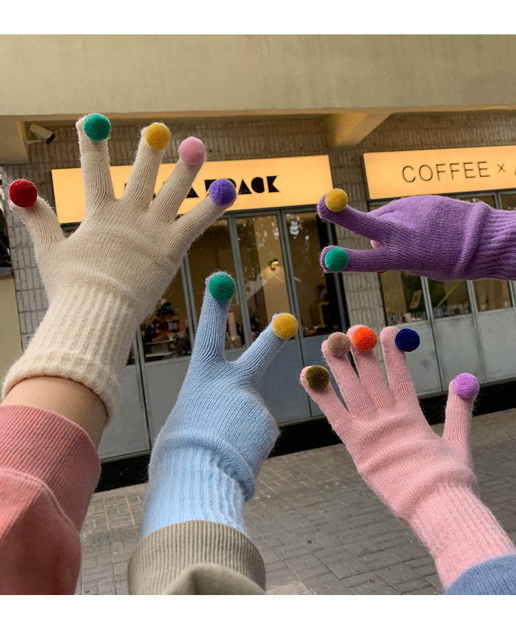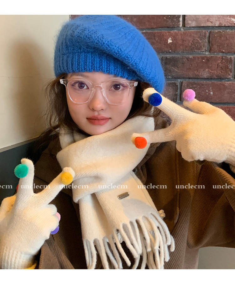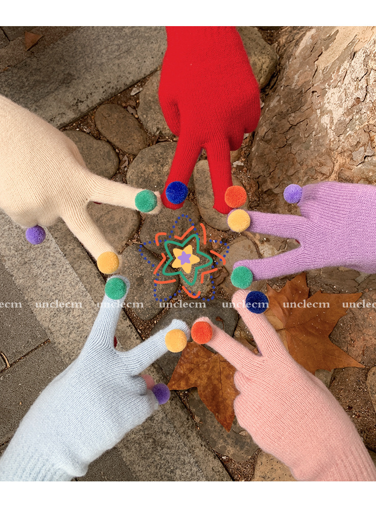 아이보리 따뜻한 장갑 여자의 겨울 터치 스크린 귀여운 니트 무지개 손가락 타고 감기 방지 기모 두꺼운 학생스토어 가기