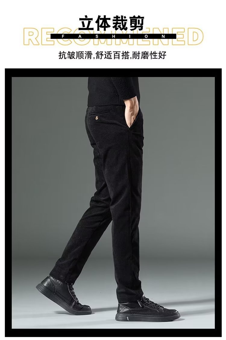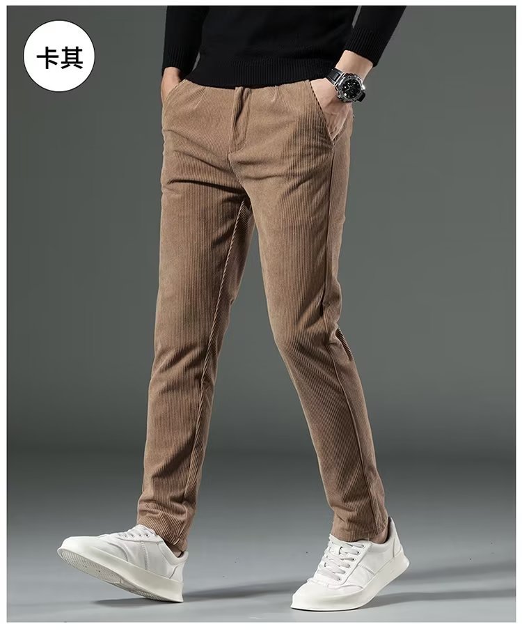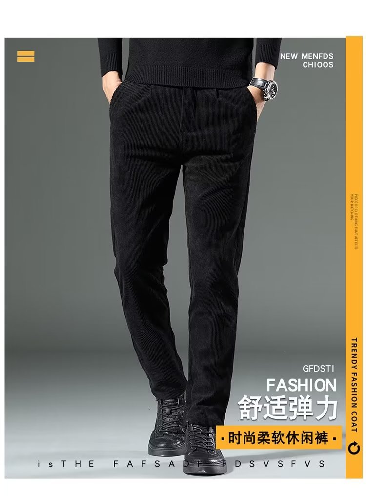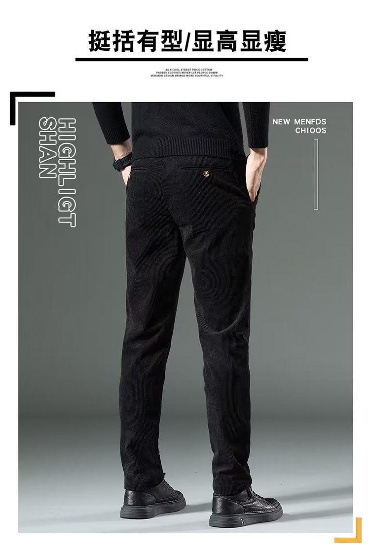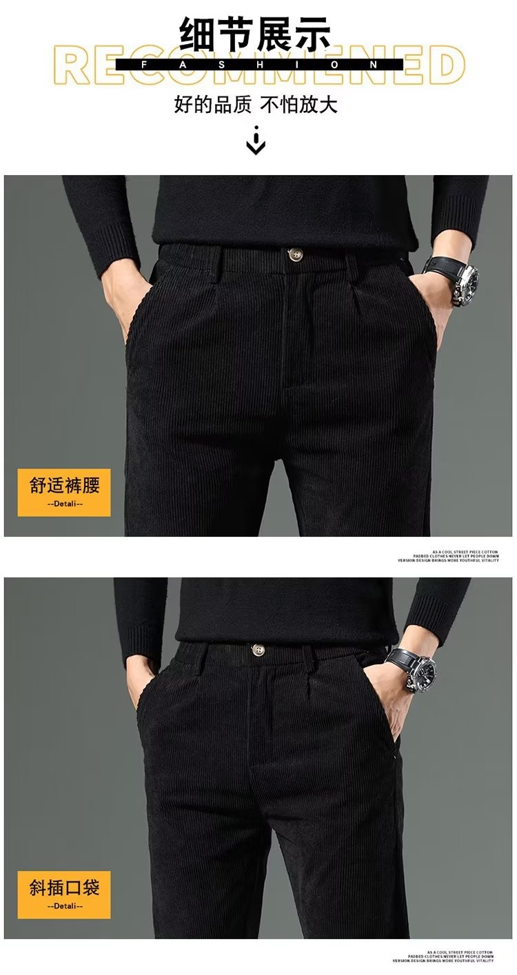코듀로이 캐주얼 바지 남성용 가을과 겨울 두꺼운 캐주얼 심플 솔리드 컬러 스트레이트 팬츠 남성용 세련된 고급 올매치 롱 팬츠스토어 가기
