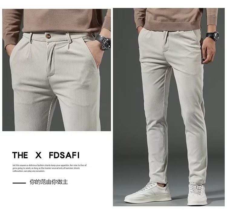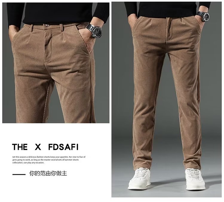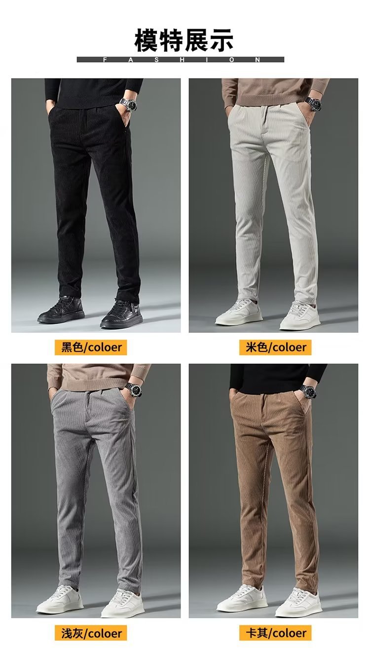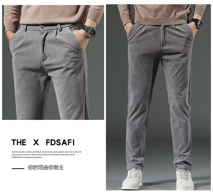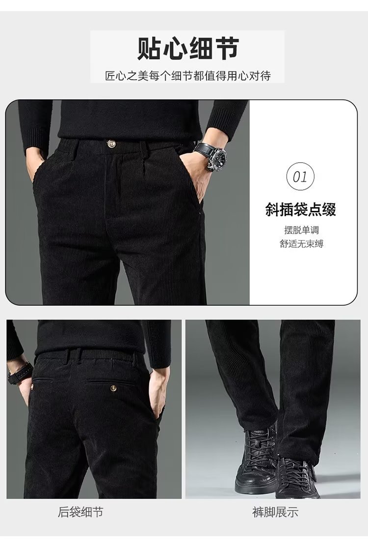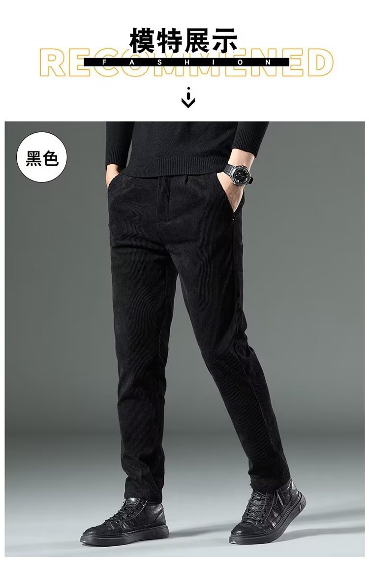 코듀로이 캐주얼 바지 남성용 가을과 겨울 두꺼운 캐주얼 심플 솔리드 컬러 스트레이트 팬츠 남성용 세련된 고급 올매치 롱 팬츠스토어 가기