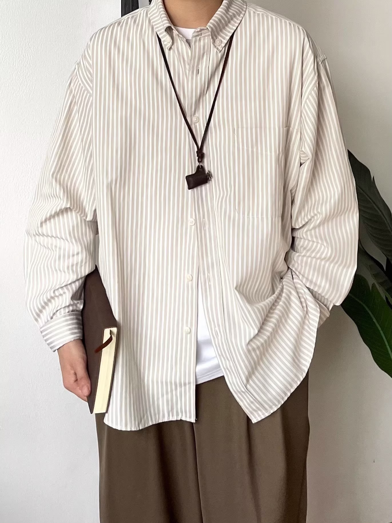 2023 스트라이프 셔츠 남성용 긴팔 가을 일본 캐주얼 패션 고급 반팔 셔츠 올매치 뉴 스타일 재킷
