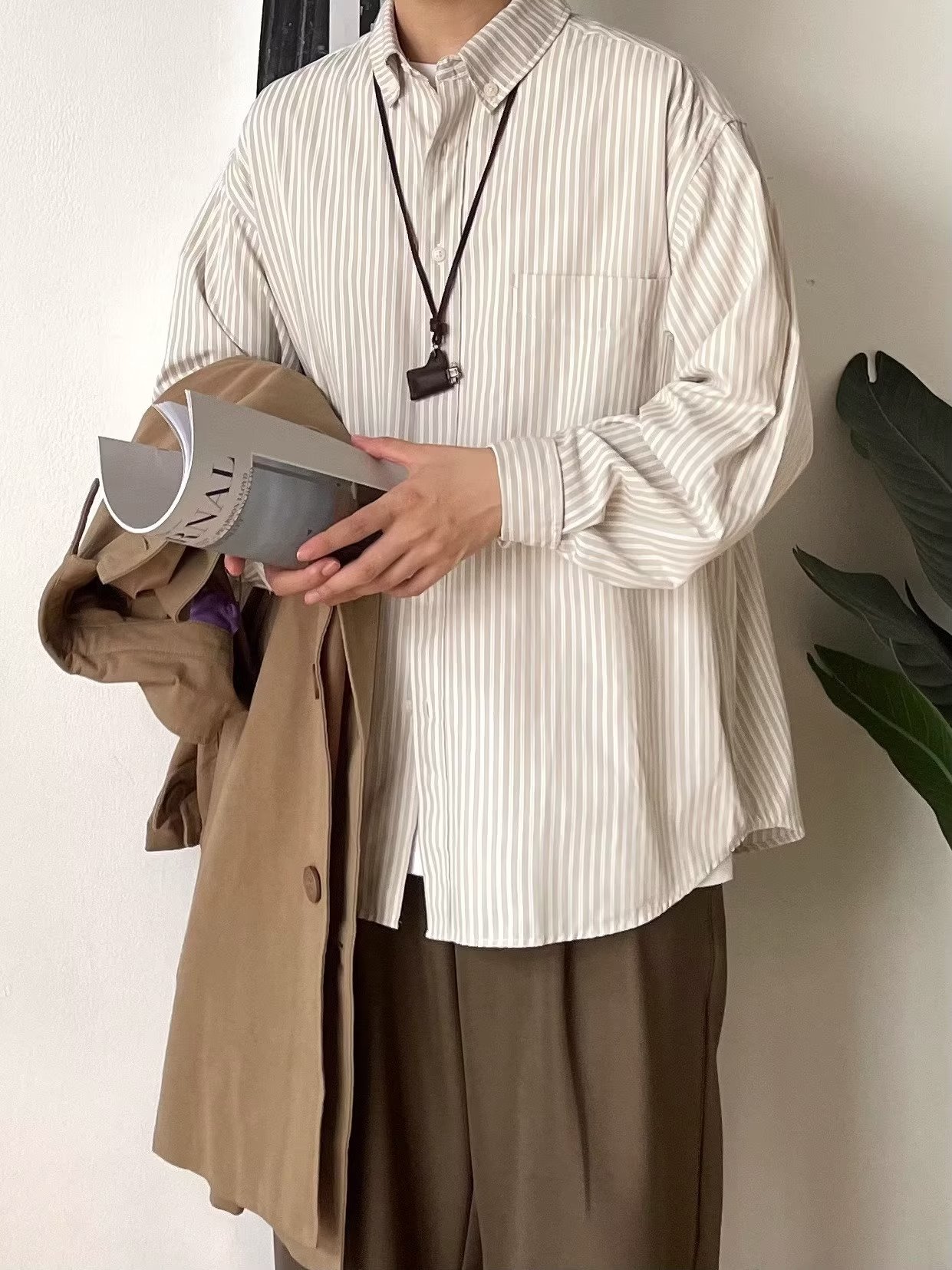 2023 스트라이프 셔츠 남성용 긴팔 가을 일본 캐주얼 패션 고급 반팔 셔츠 올매치 뉴 스타일 재킷스토어 가기