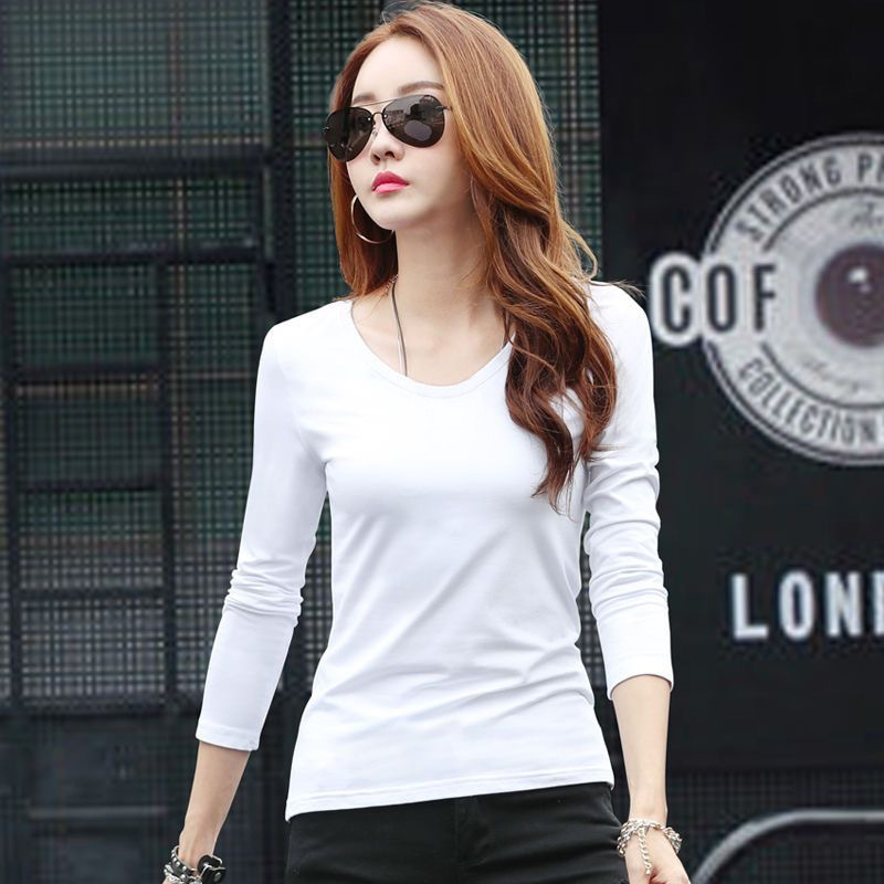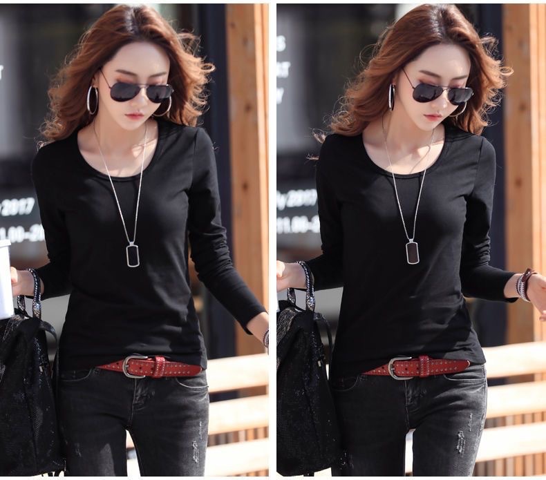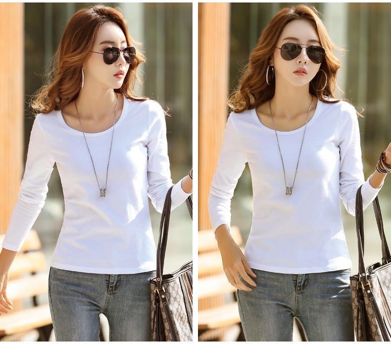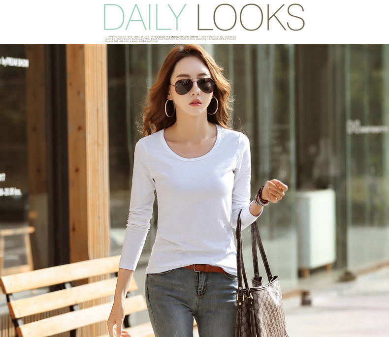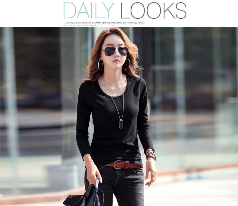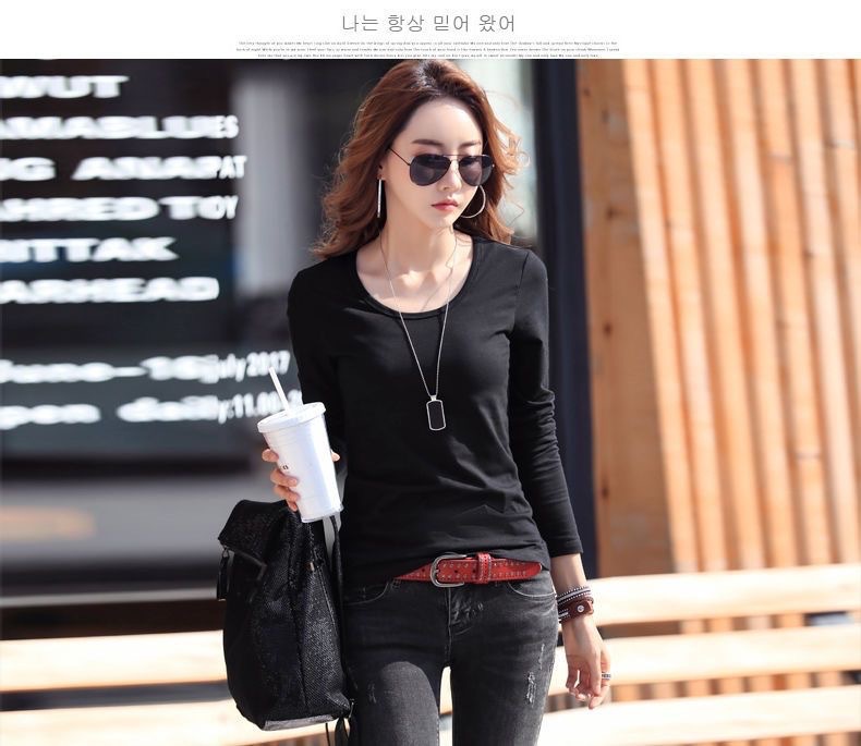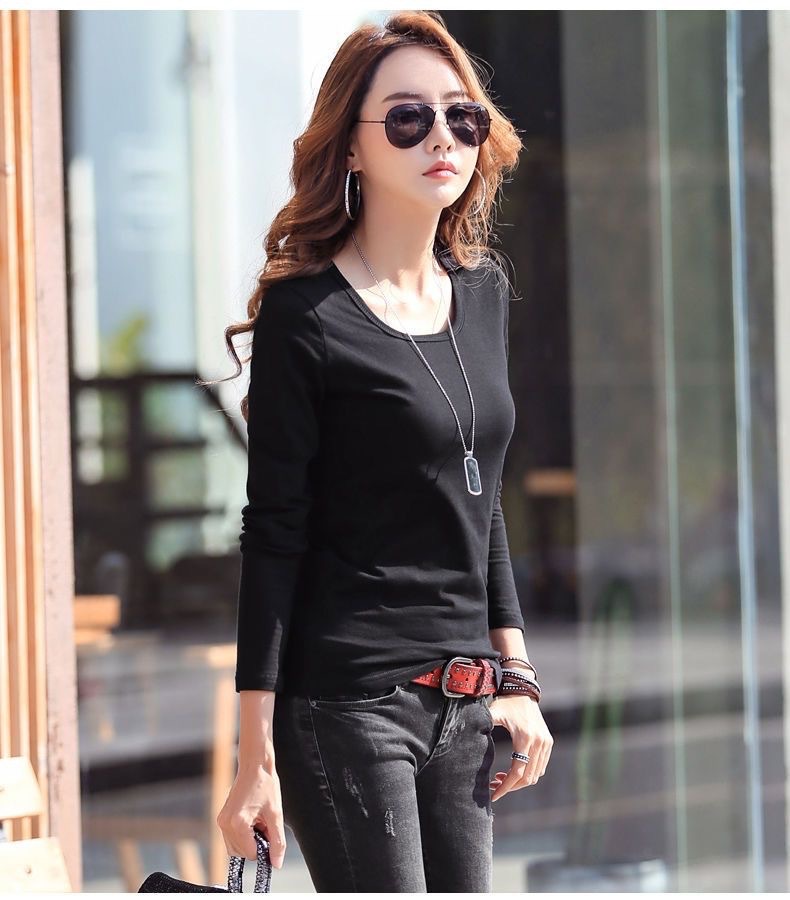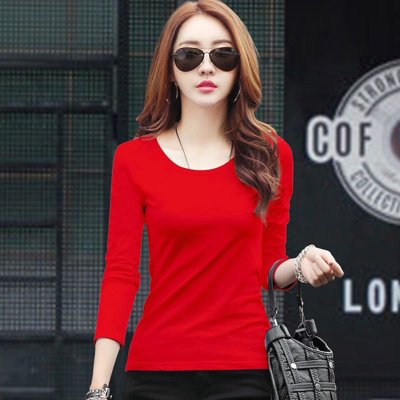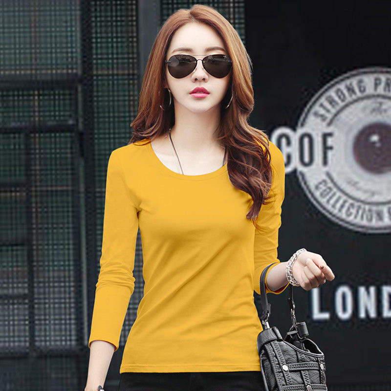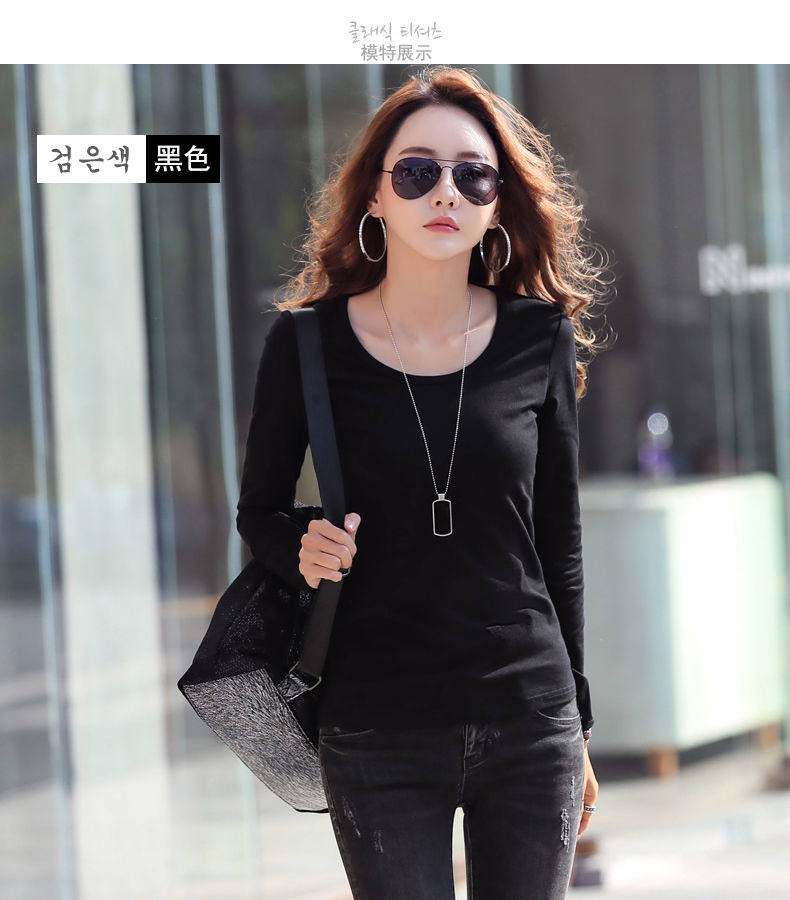 라운드 넥 긴팔 티셔츠 여성용 신축성 있는 새로운 여성용 슬림핏 모든 매치 탑 얇은 속옷 솔리드 컬러 베이스 셔츠 여성용스토어 가기