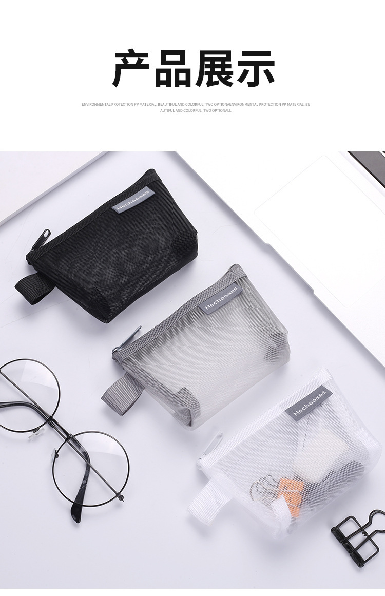 간단한 나일론 스테레오 삼각형 메쉬 동전 지갑 대용량 키 케이스 카드 가방 동전 가방 투명 보관 가방