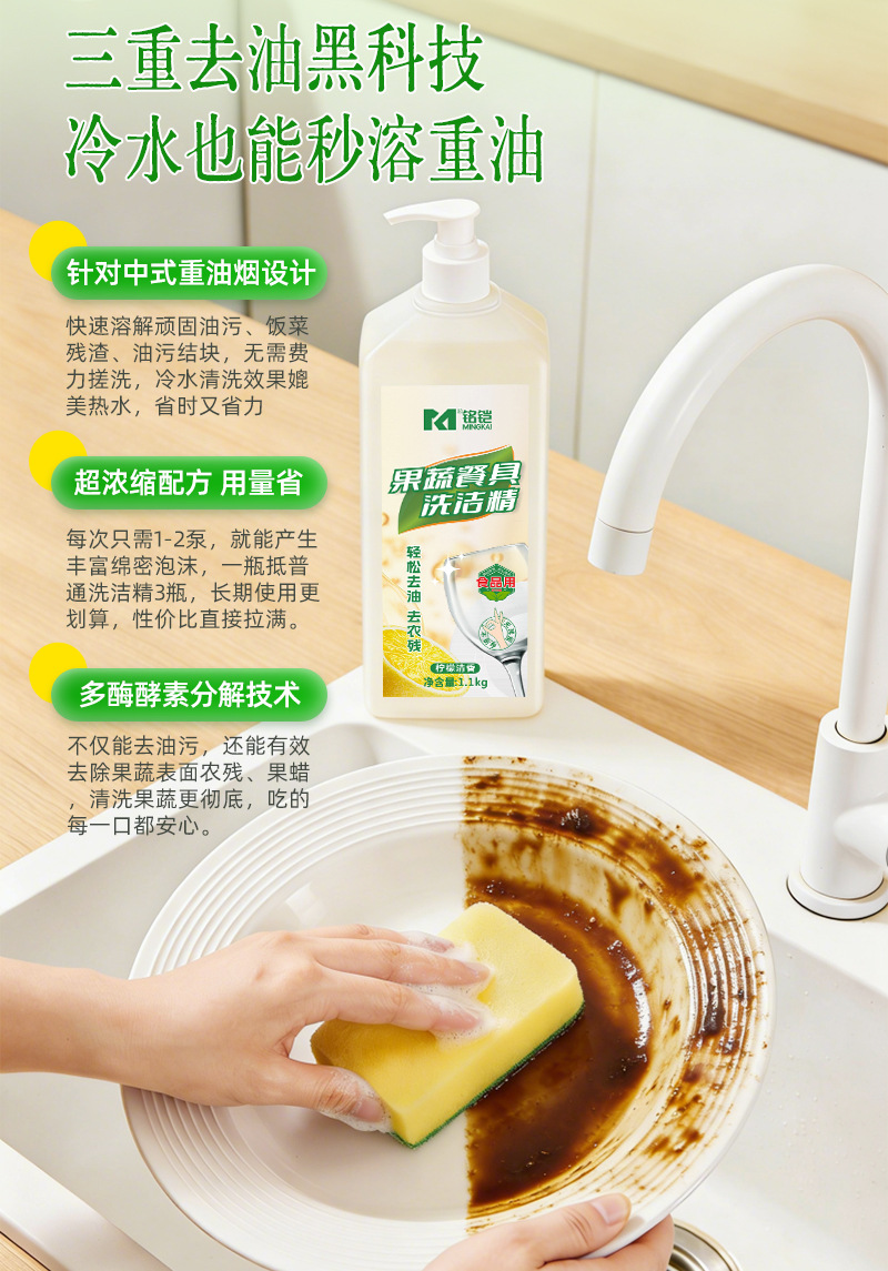 과일 및 야채 주방 세제 가정용 식품 등급 가정용 대형 배럴 배치 1kg 주방 식기 세척제 기름 제거 세제스토어 가기