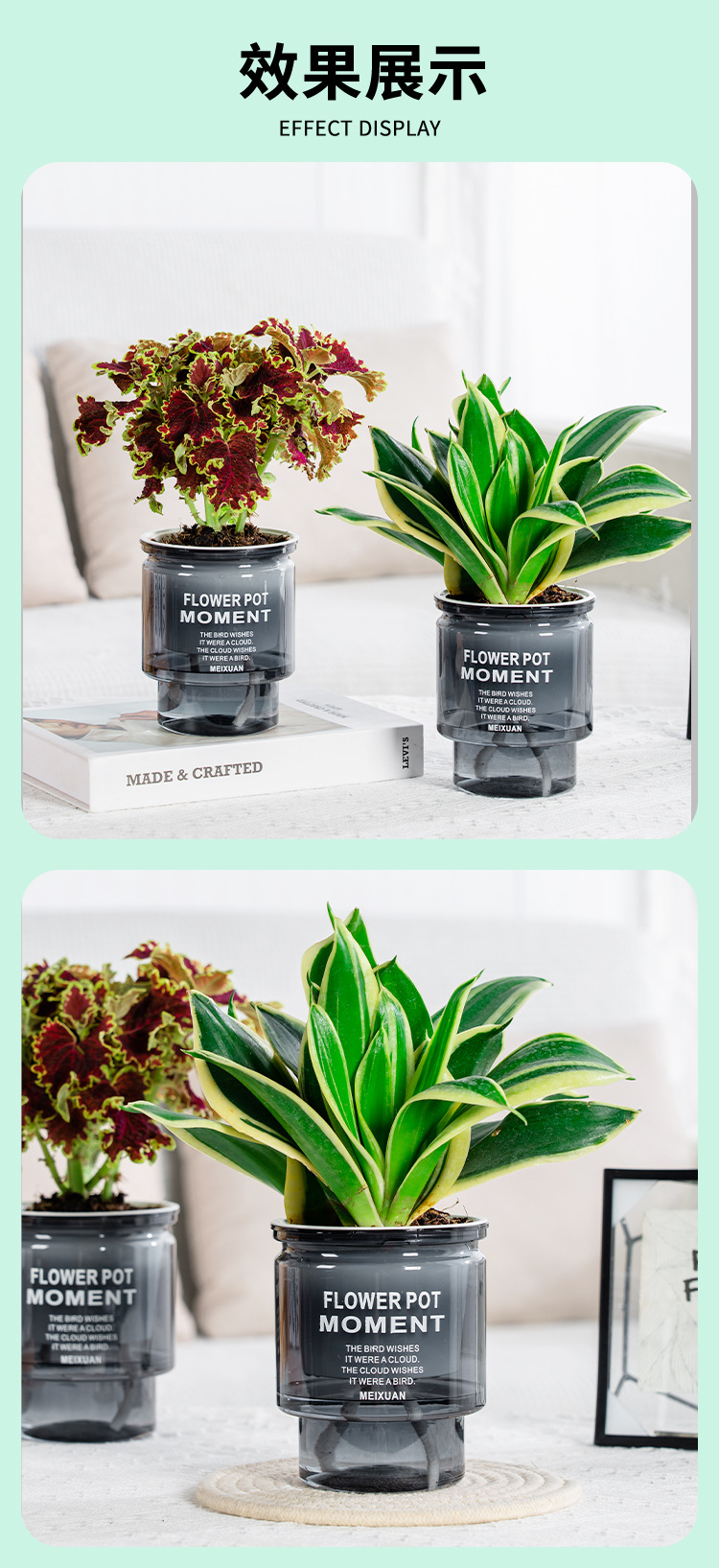 간단한 게으른 플라스틱 화분 자동 흡수 투명 원형 수경 화분 창조적 인 수지 다육 식물 용품