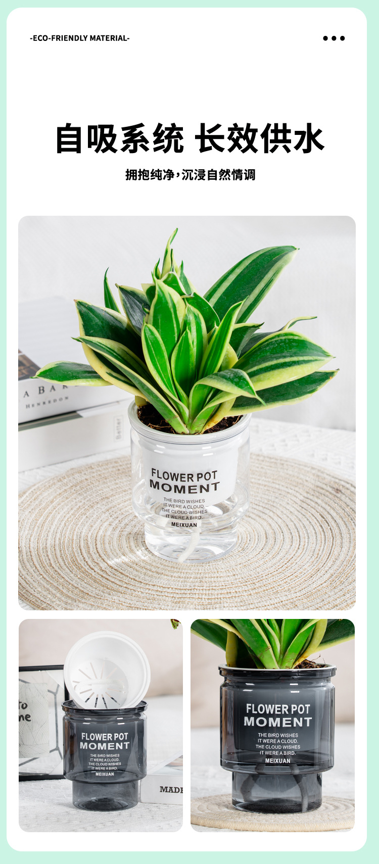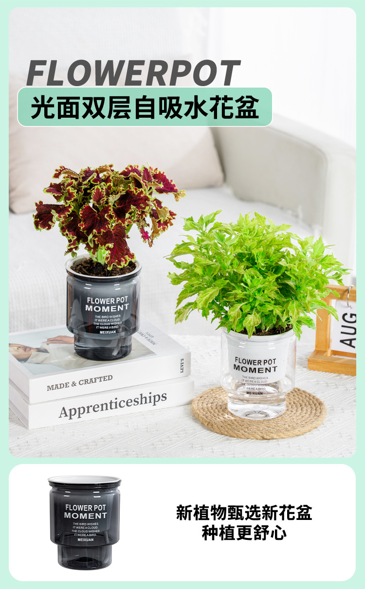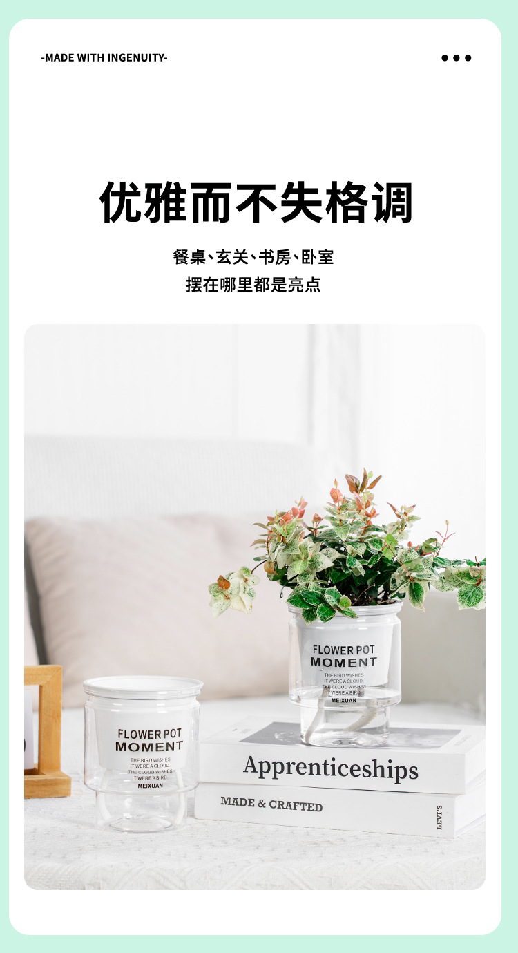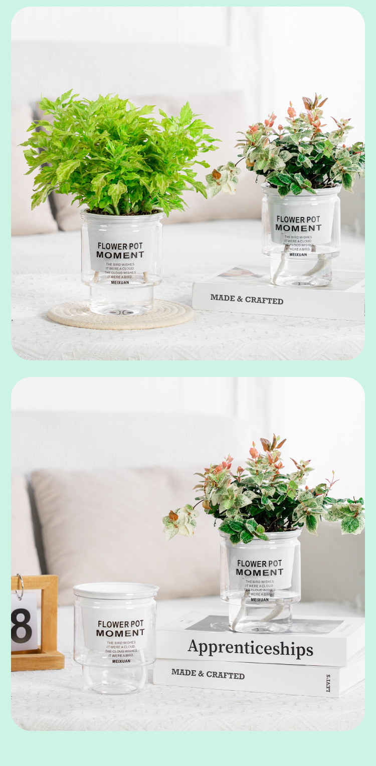 간단한 게으른 플라스틱 화분 자동 흡수 투명 원형 수경 화분 창조적 인 수지 다육 식물 용품스토어 가기