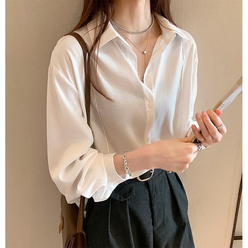 화이트 셔츠 여성용 2023 봄 가을 새로운 모든 매치 디자인 센스 탑 라이트 성숙한 긴팔 베이스 스택 셔츠 재킷