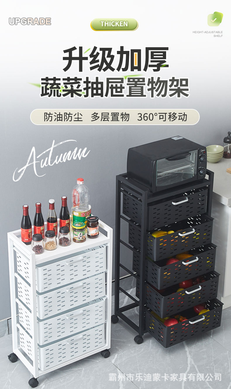 주방수납선반 야채바구니 과일 및 야채수납선반 서랍형 반밀폐형 대용량 수납장 다기능스토어 가기
