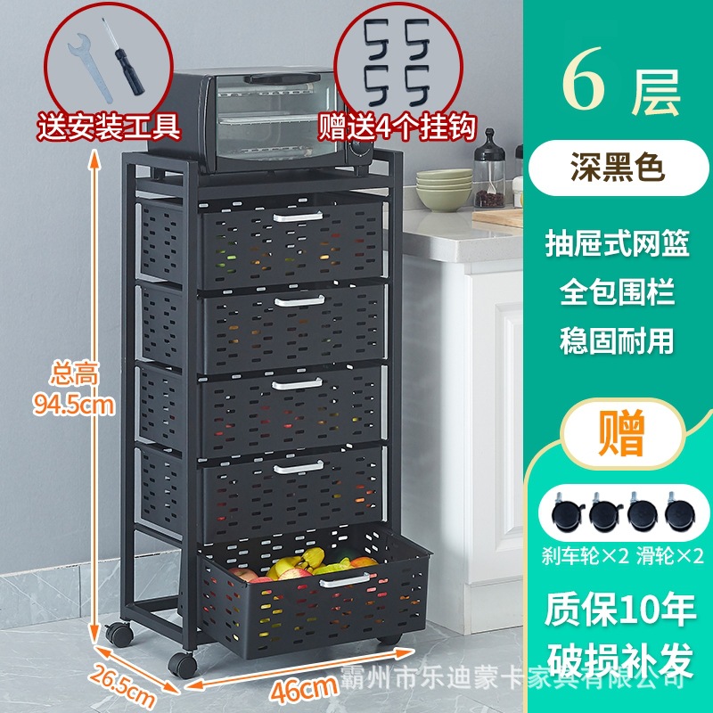 • 슬릿 롱 홀 서랍형 스토리지 랙 6 층 5-드로우 블랙