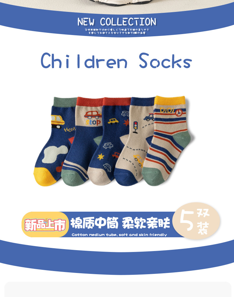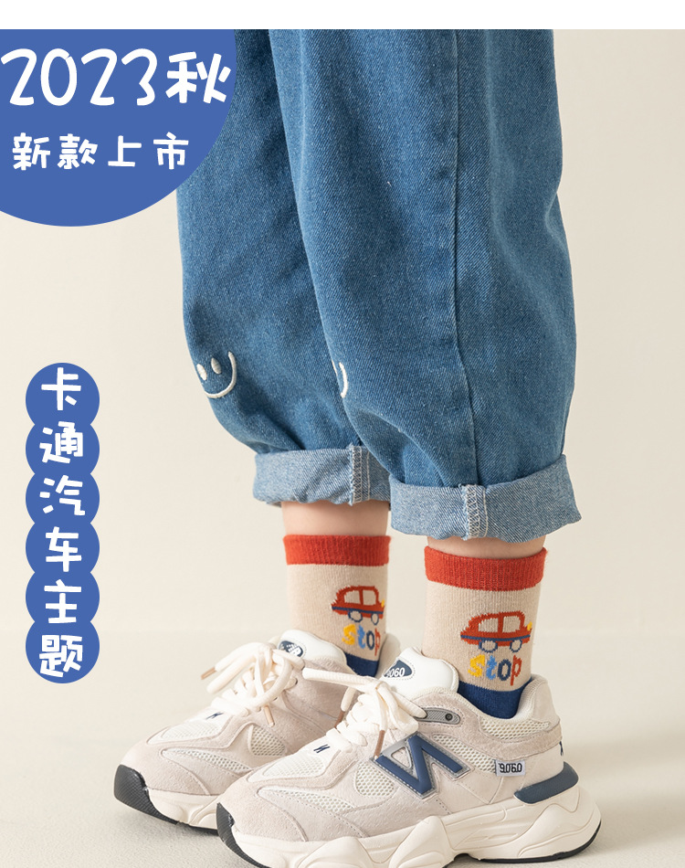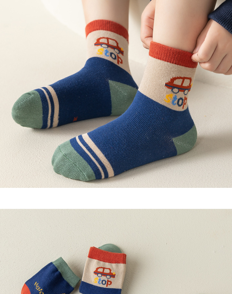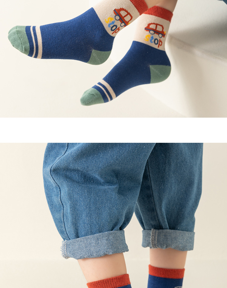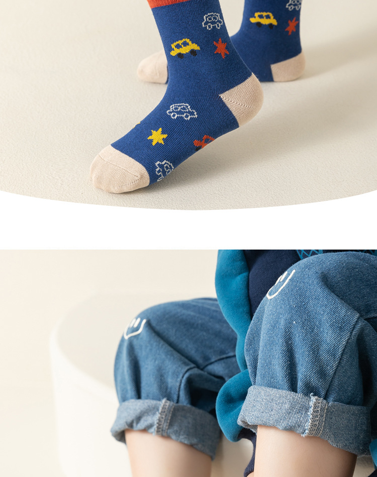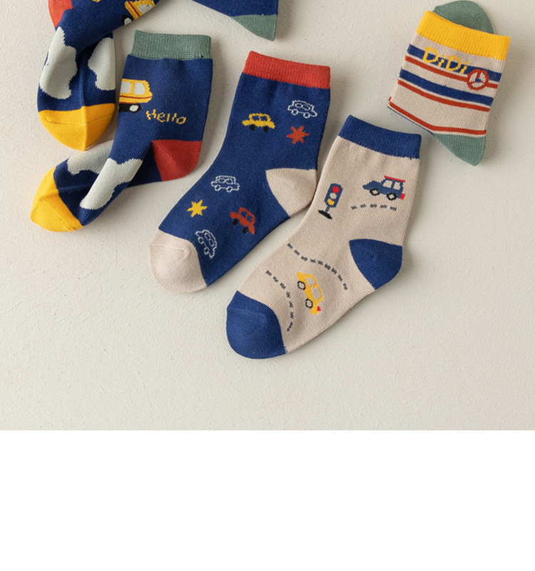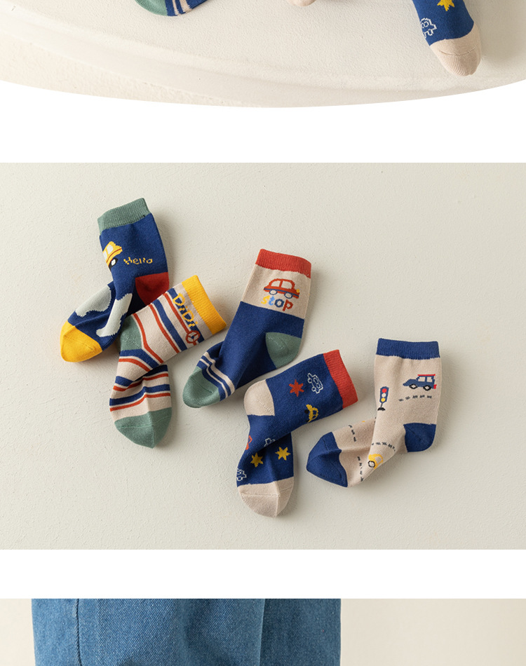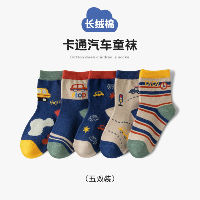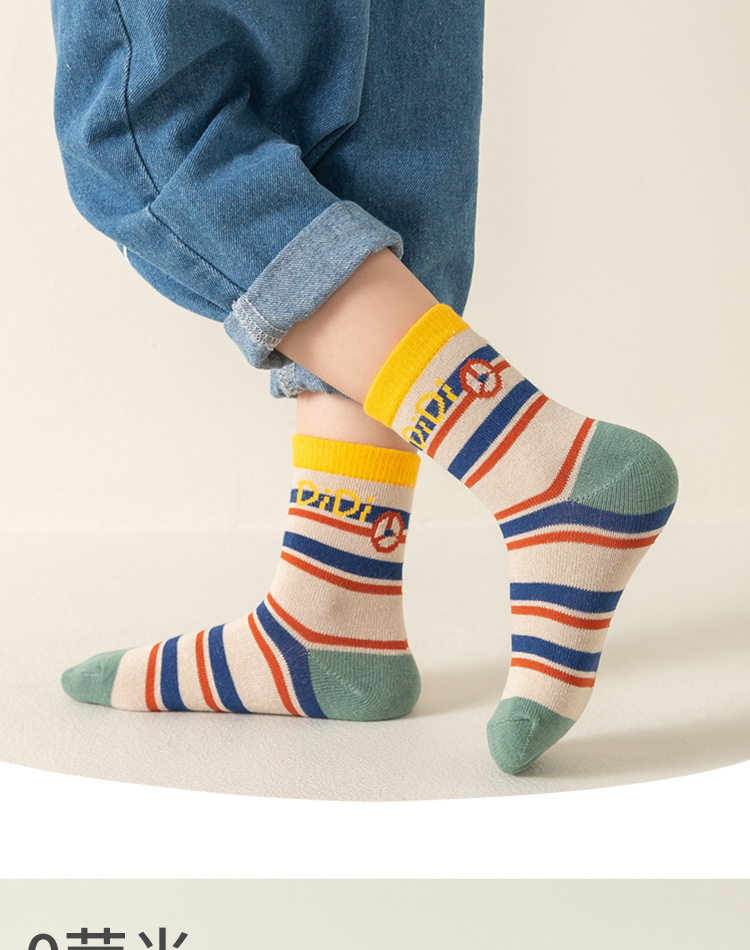 남아용 양말 면 소재 가을 겨울 만화 줄무늬 중간 길이 양말 어린이용 트렌디하고 다용도로 활용 가능한 무봉제 긴 양말