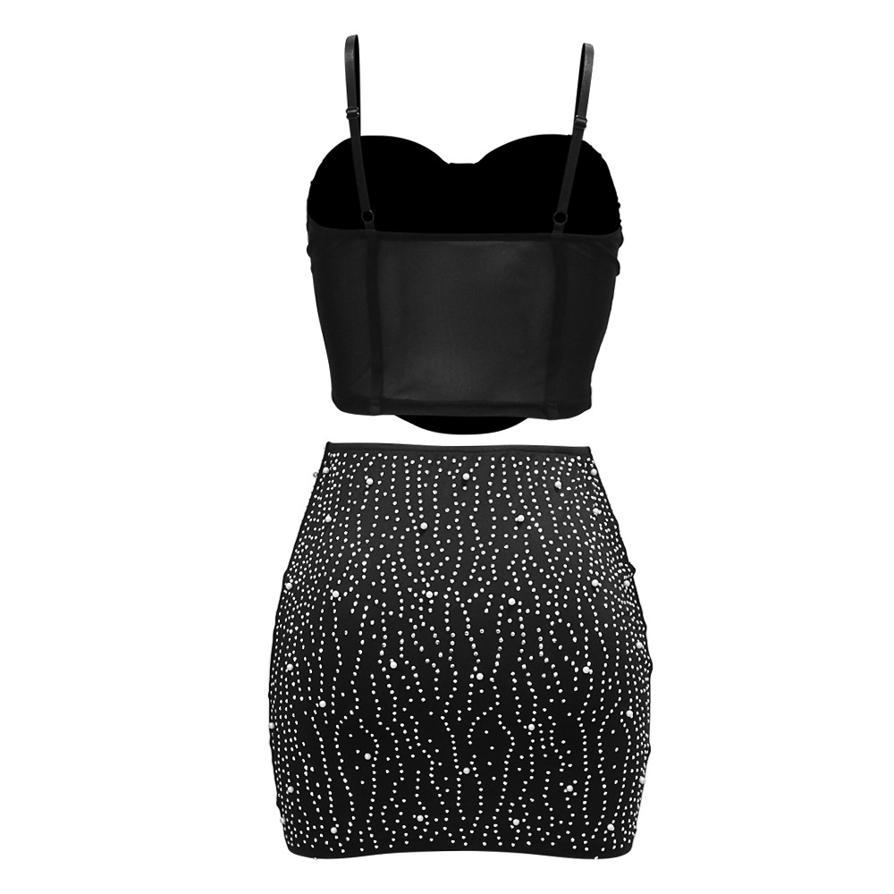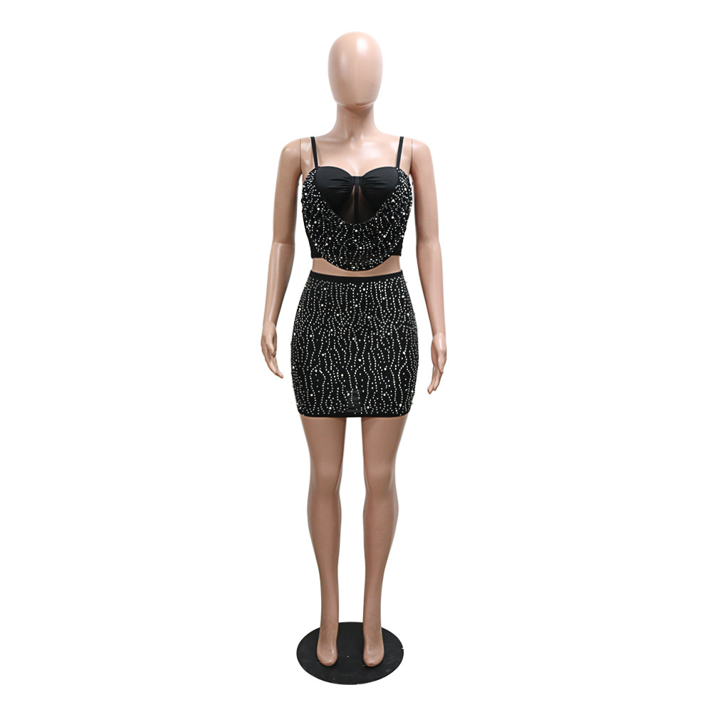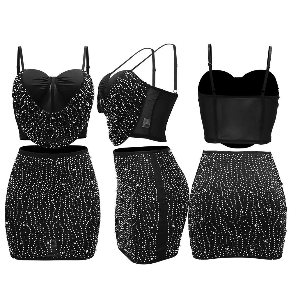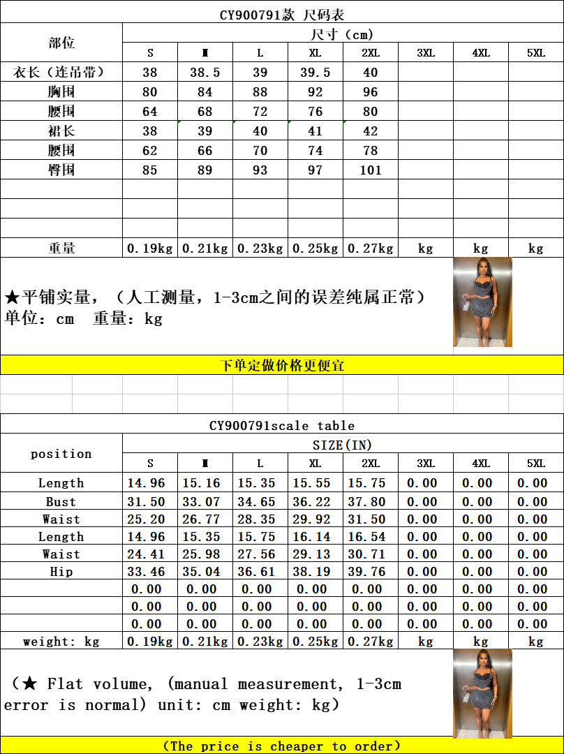 CY900791 유럽과 미국 대외 무역 패션 스트랩 쇼트 탑 힙 스커트 핫 드릴링 여성용 투피스 세트스토어 가기
