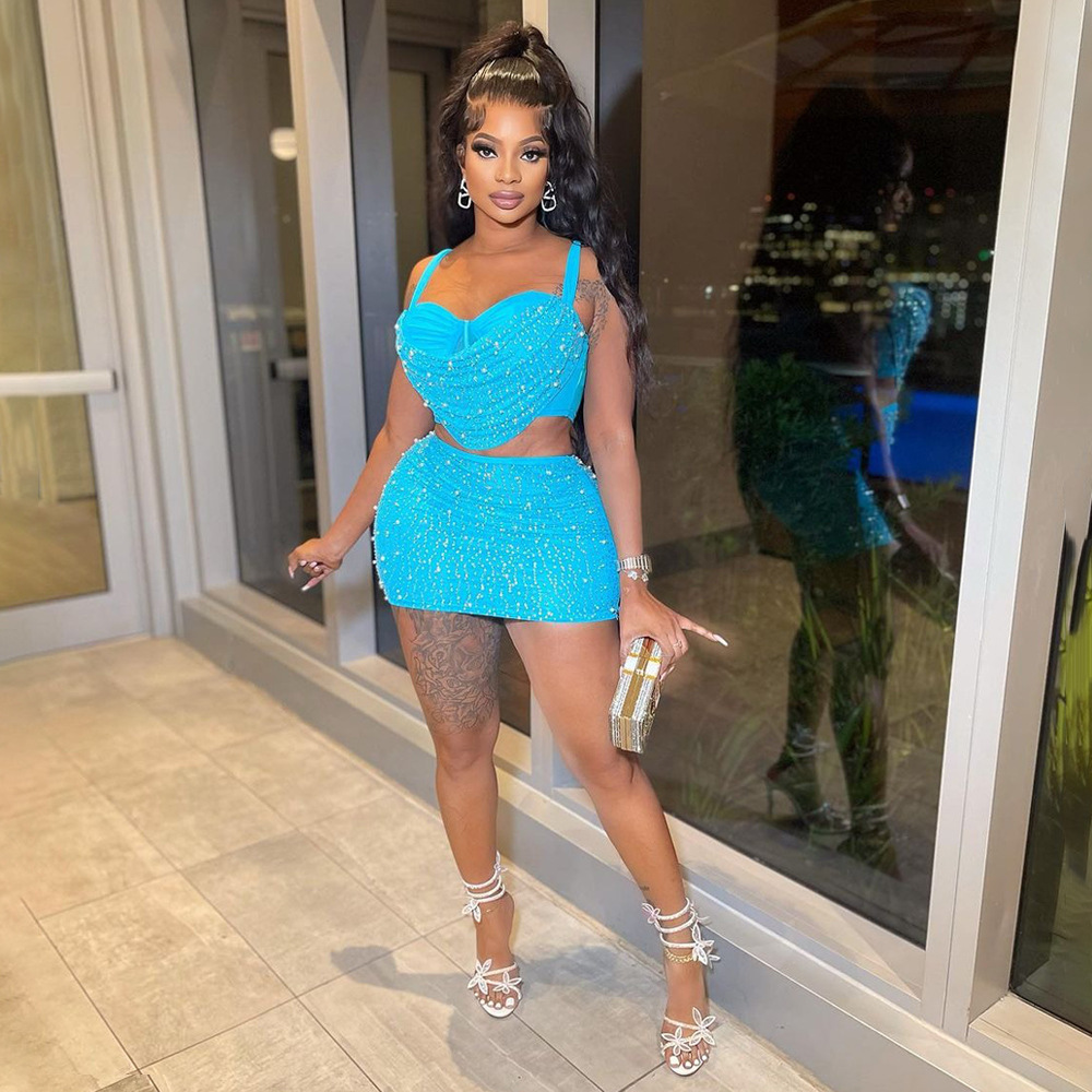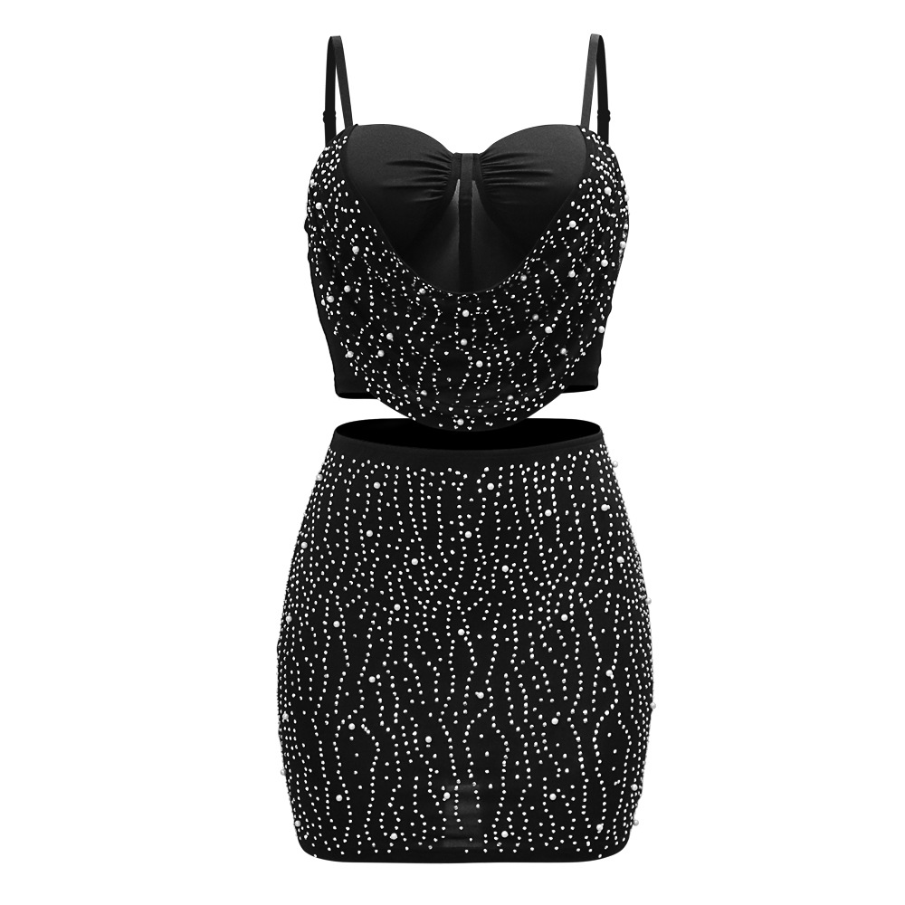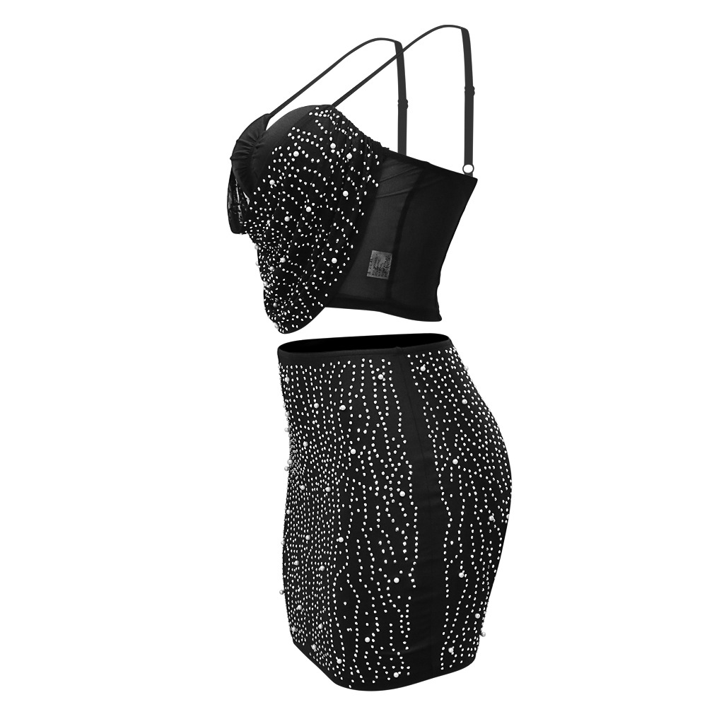 CY900791 유럽과 미국 대외 무역 패션 스트랩 쇼트 탑 힙 스커트 핫 드릴링 여성용 투피스 세트스토어 가기